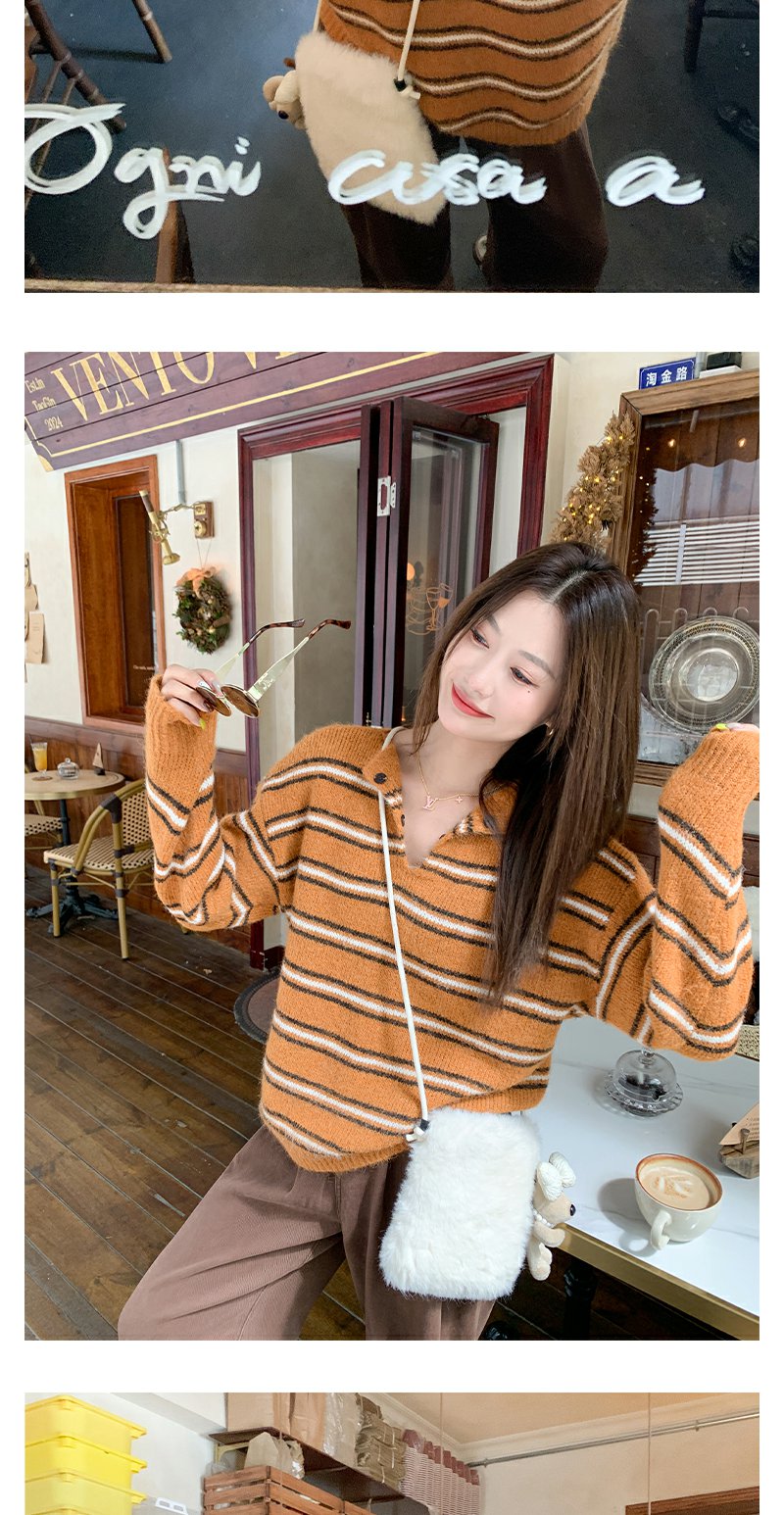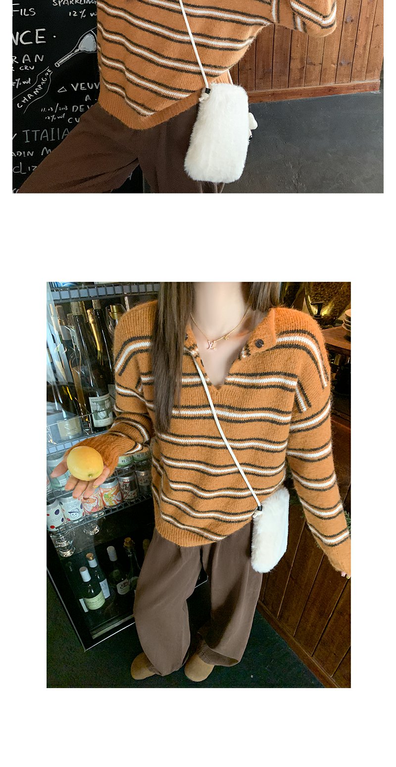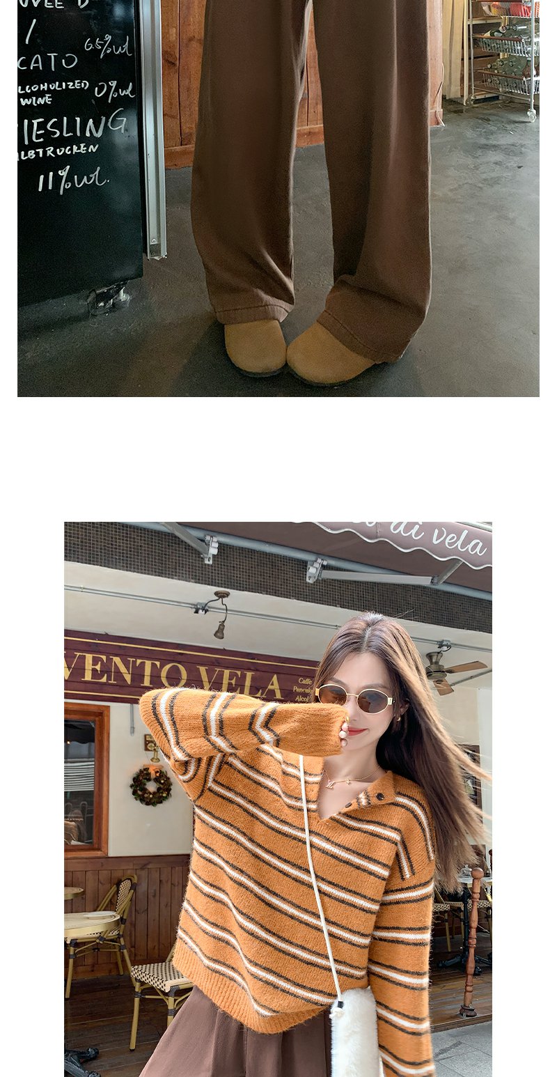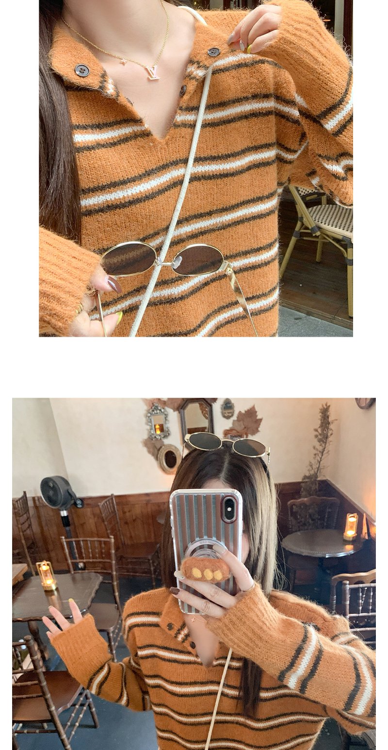 <曾小咸推荐> 现货秒杀!微信超特价!橘色条纹v领毛针织衫 日常179.99 立减100 秒杀79.99!