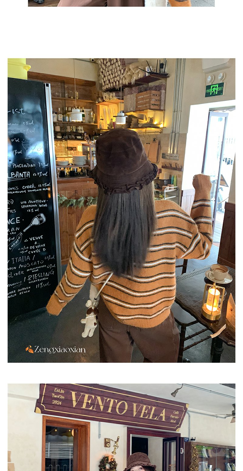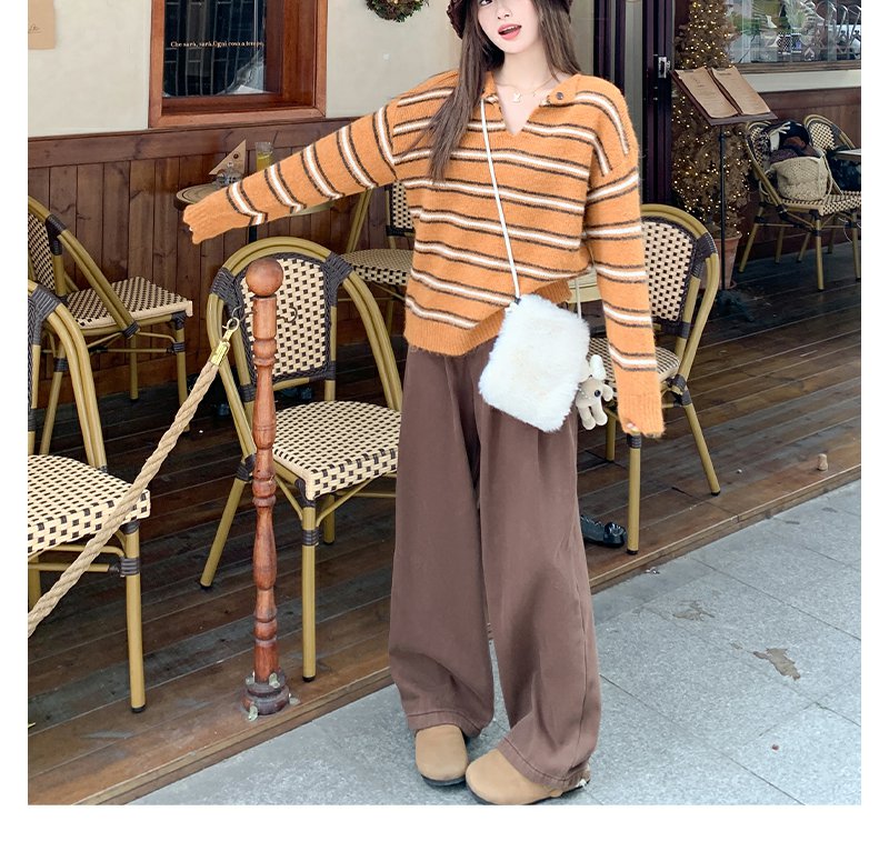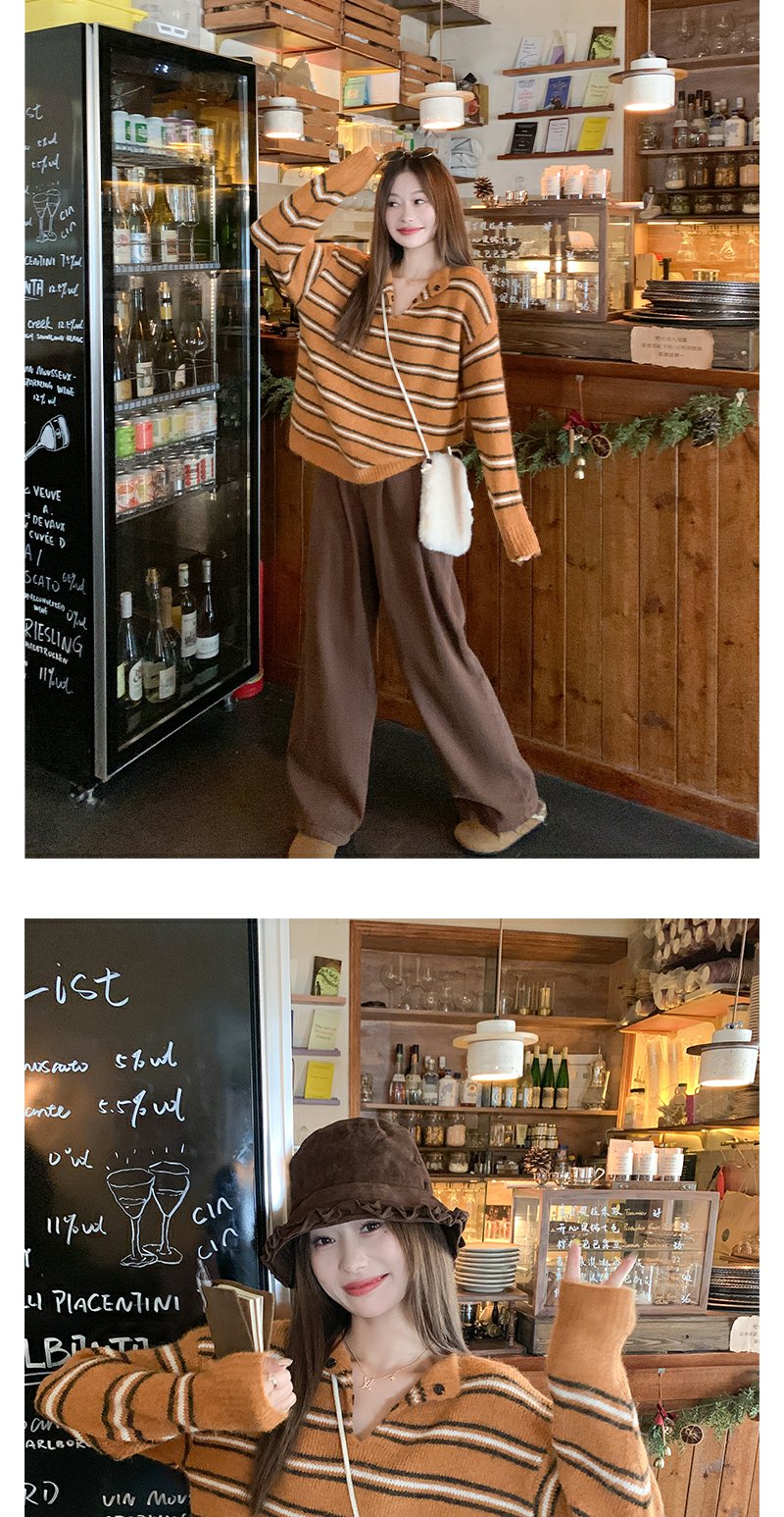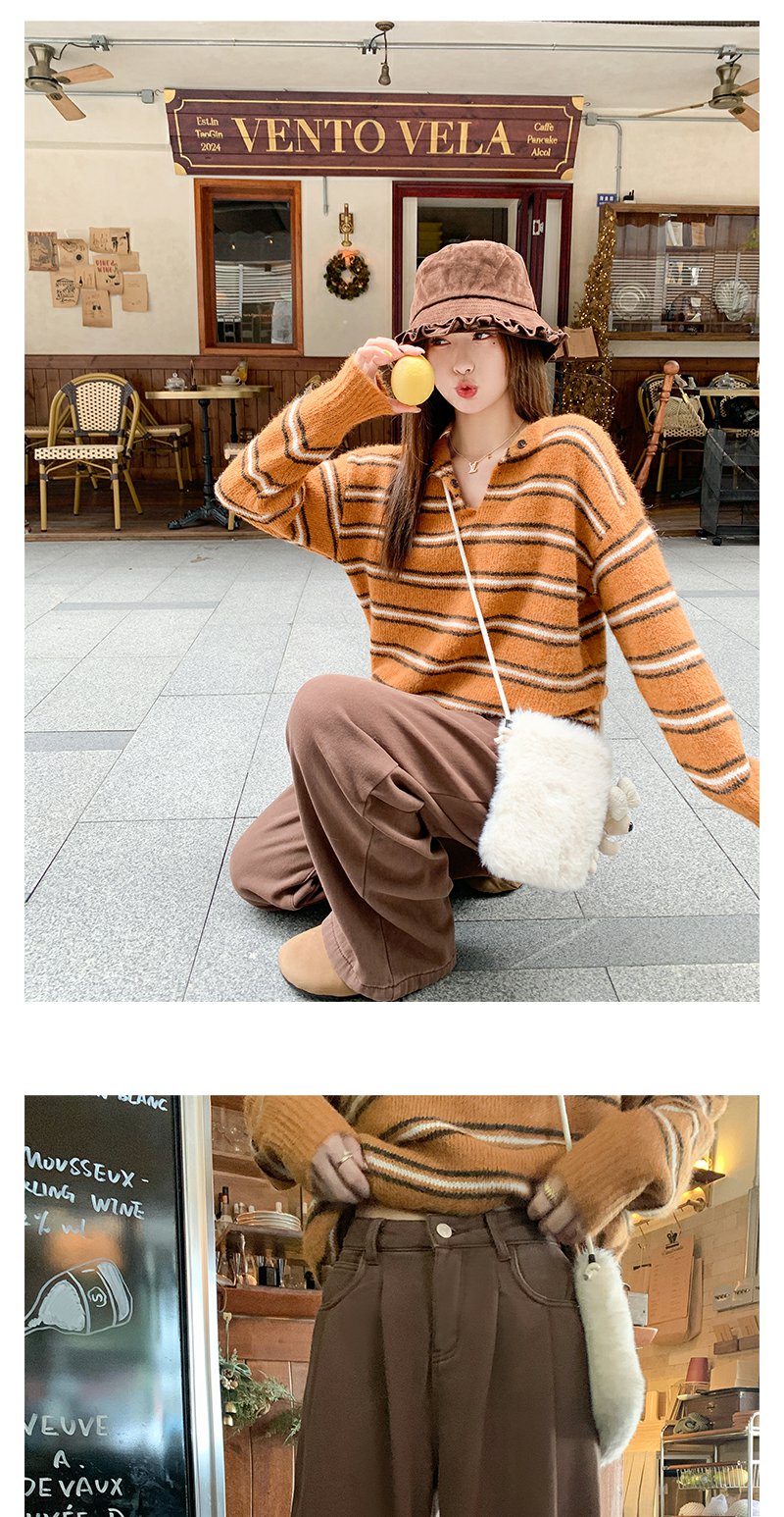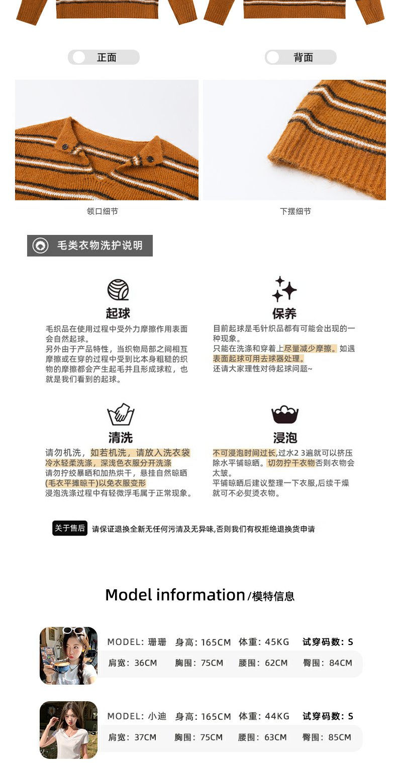 <曾小咸推荐> 现货秒杀!微信超特价!橘色条纹v领毛针织衫 日常179.99 立减100 秒杀79.99!