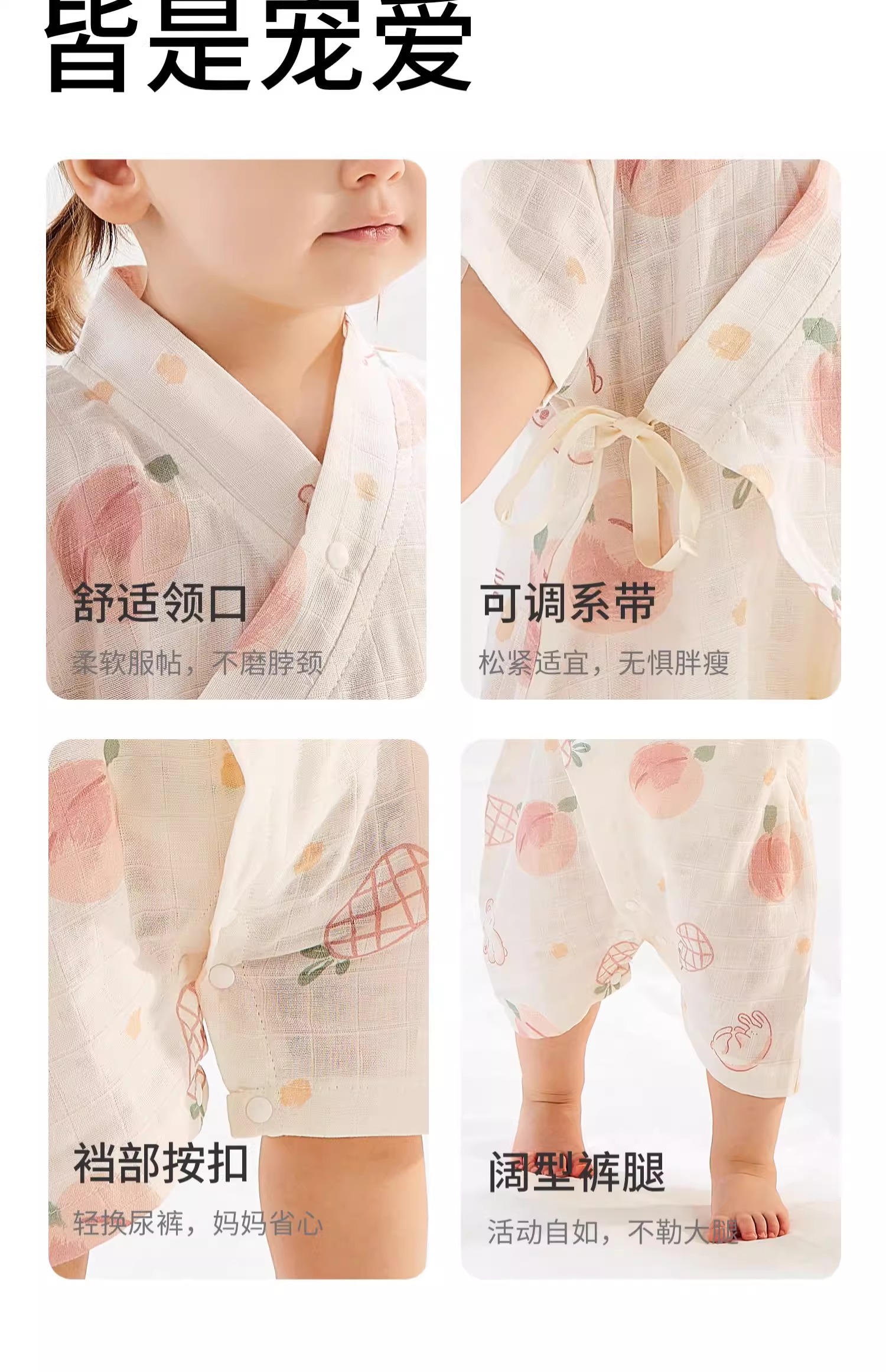 科巢夏季婴儿衣服男女宝宝竹棉纱布短袖连体衣夏天装薄款哈衣爬服