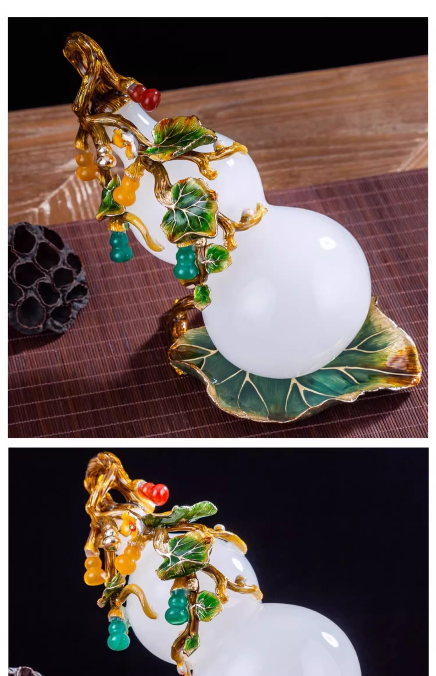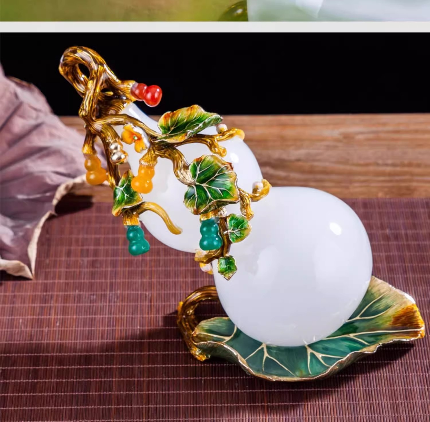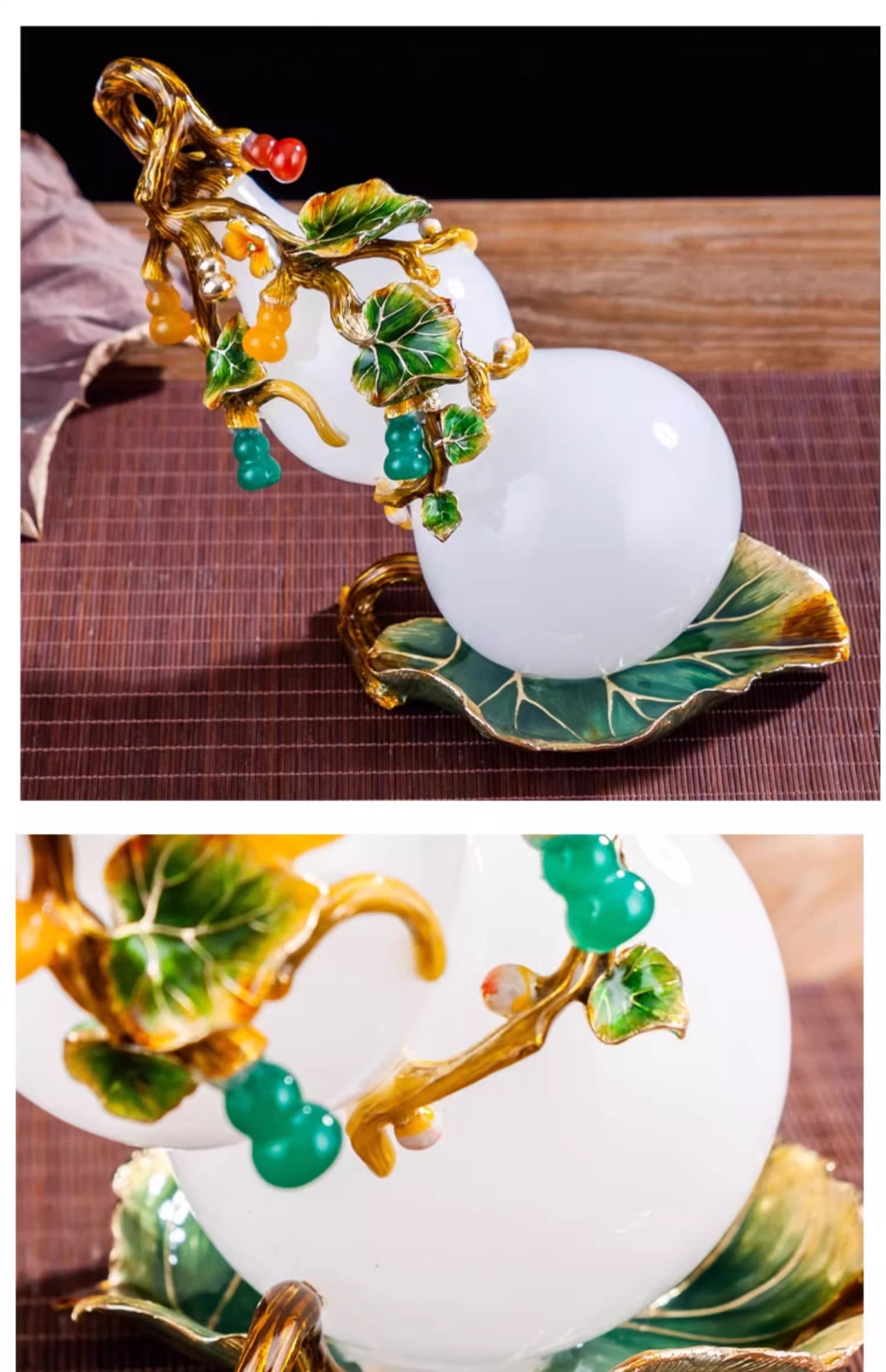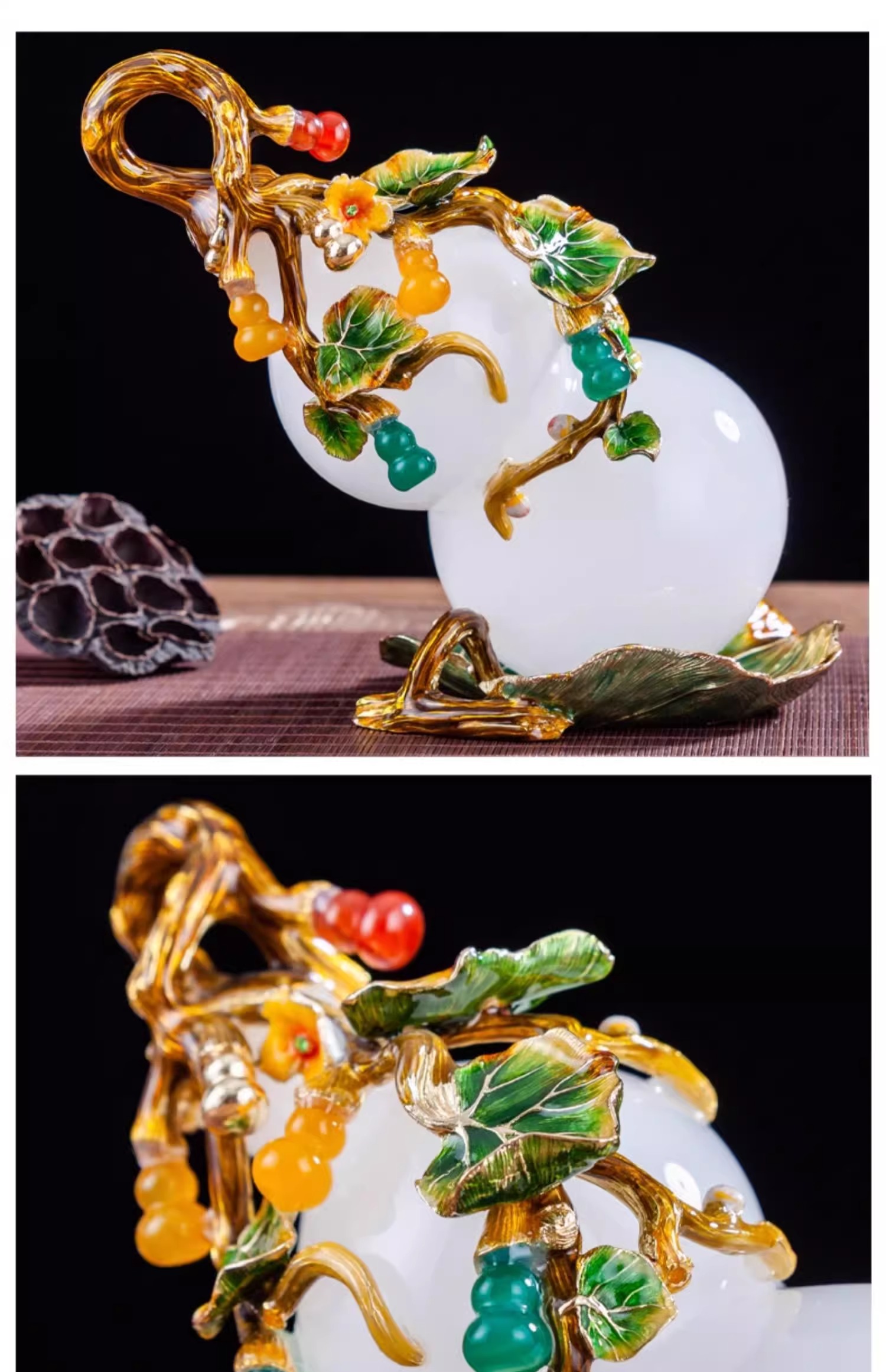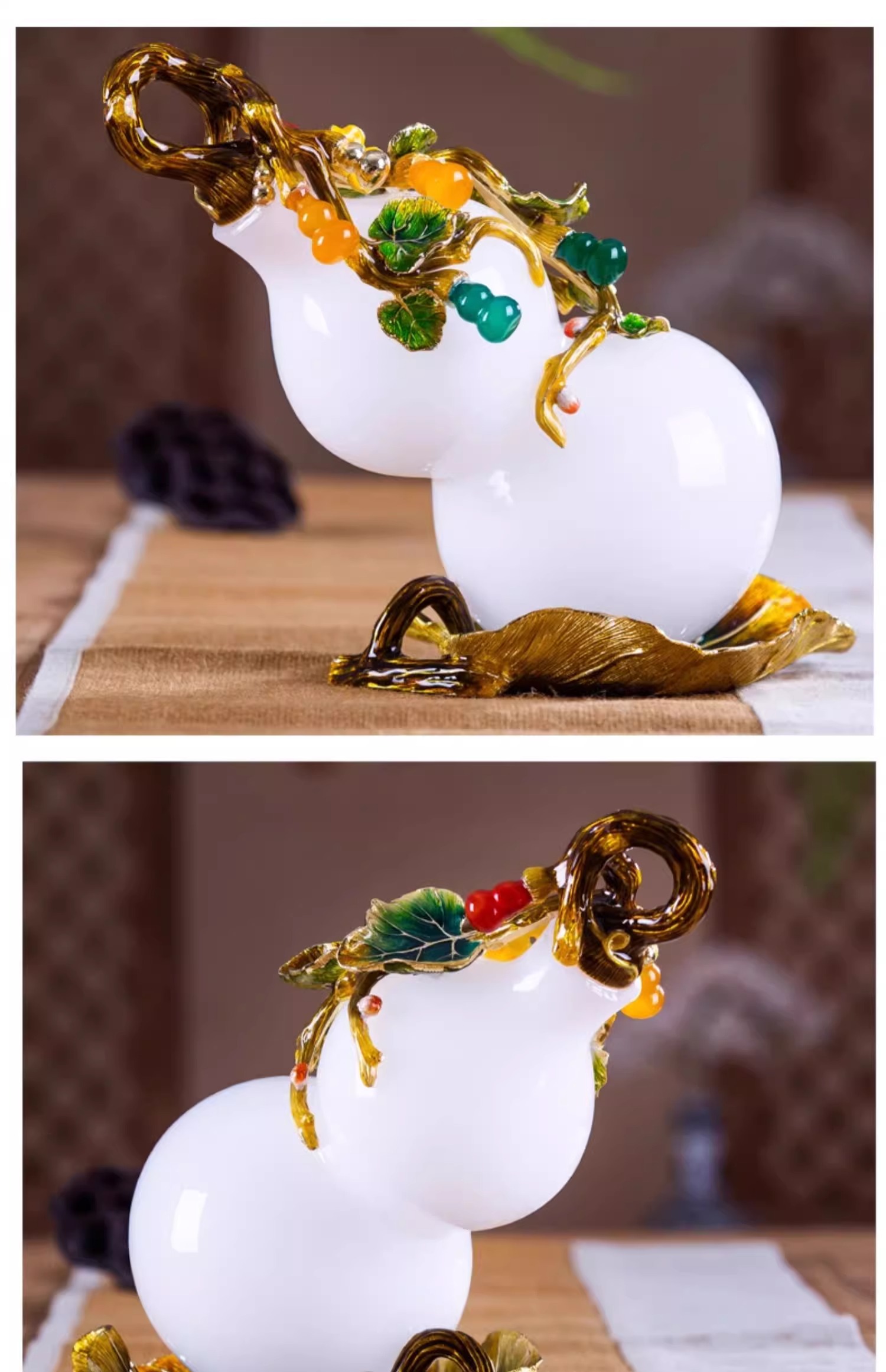 珐琅彩琉璃玉葫芦摆件新中式玄关创意福禄家居客厅电视柜饰品轻奢佛罗端斯五福临门摆件-小号
