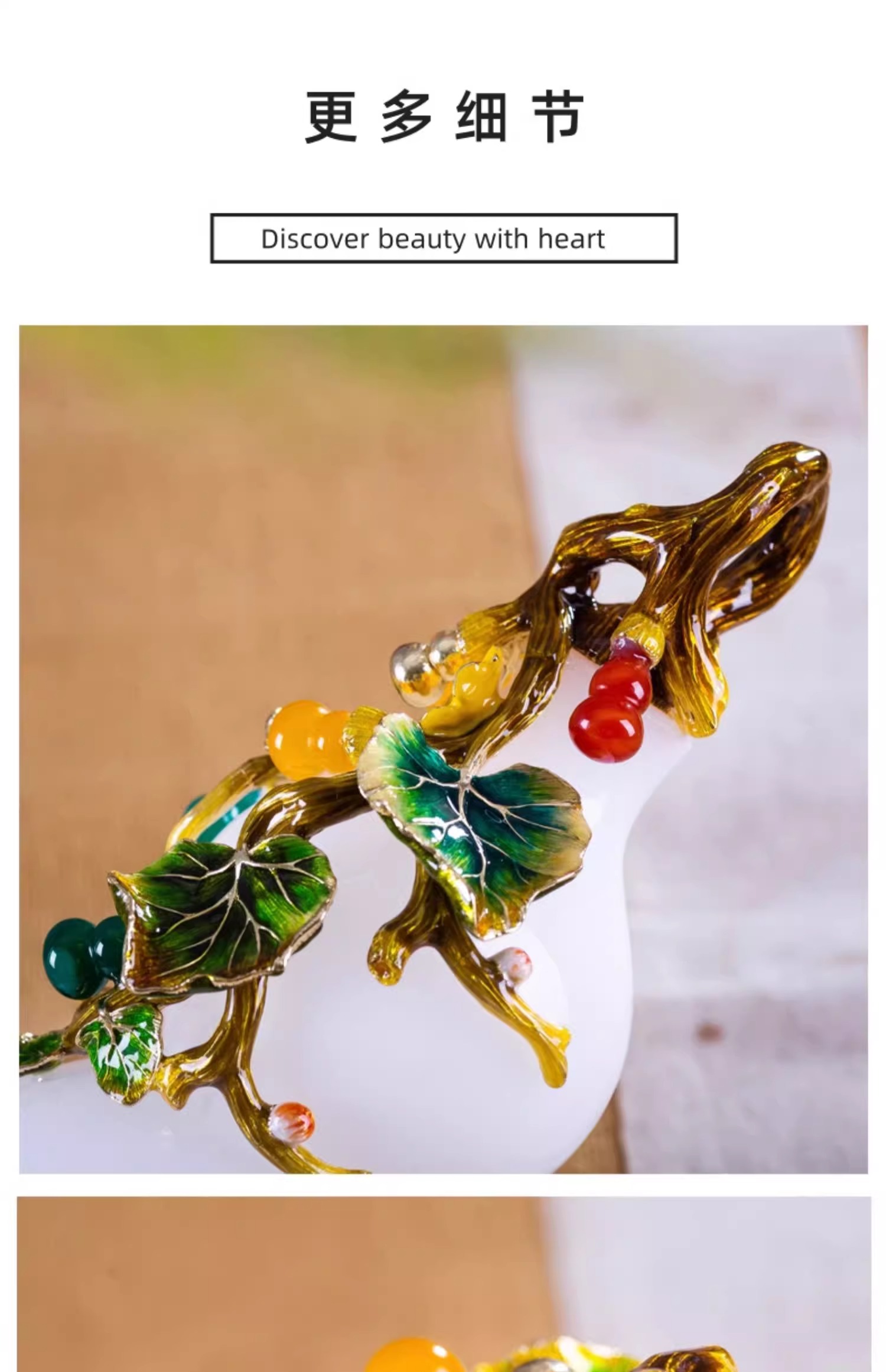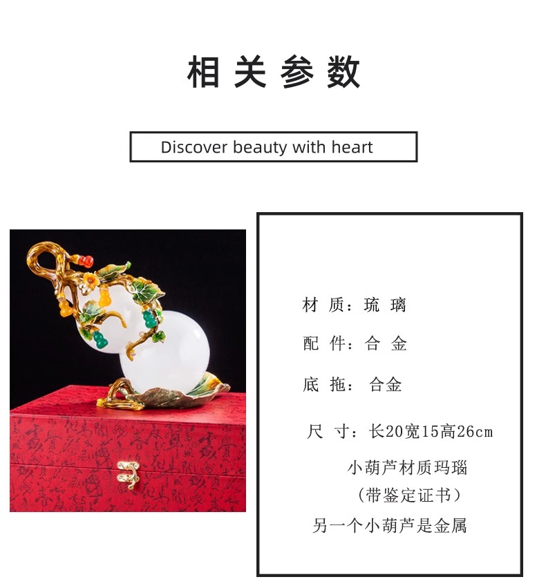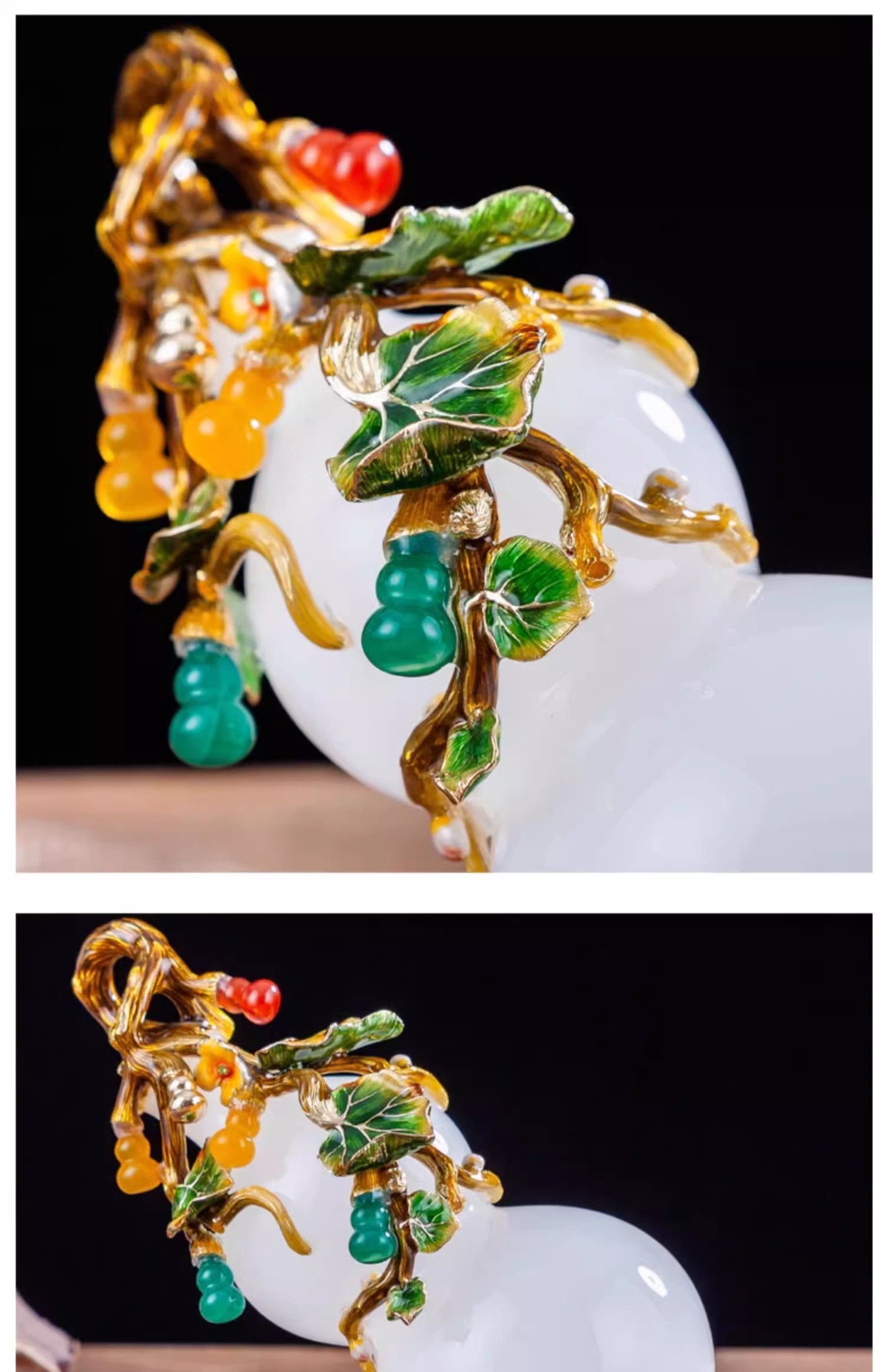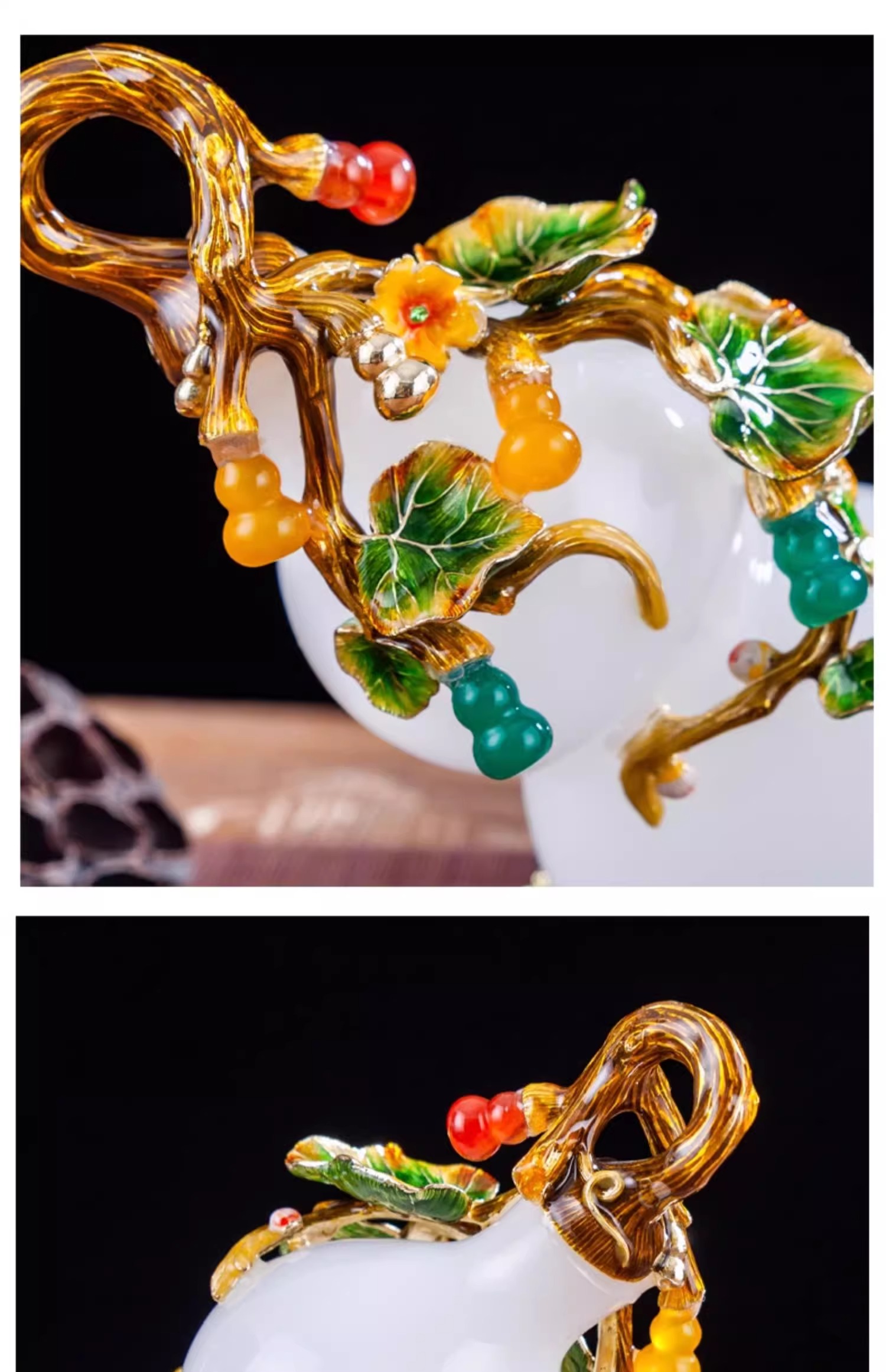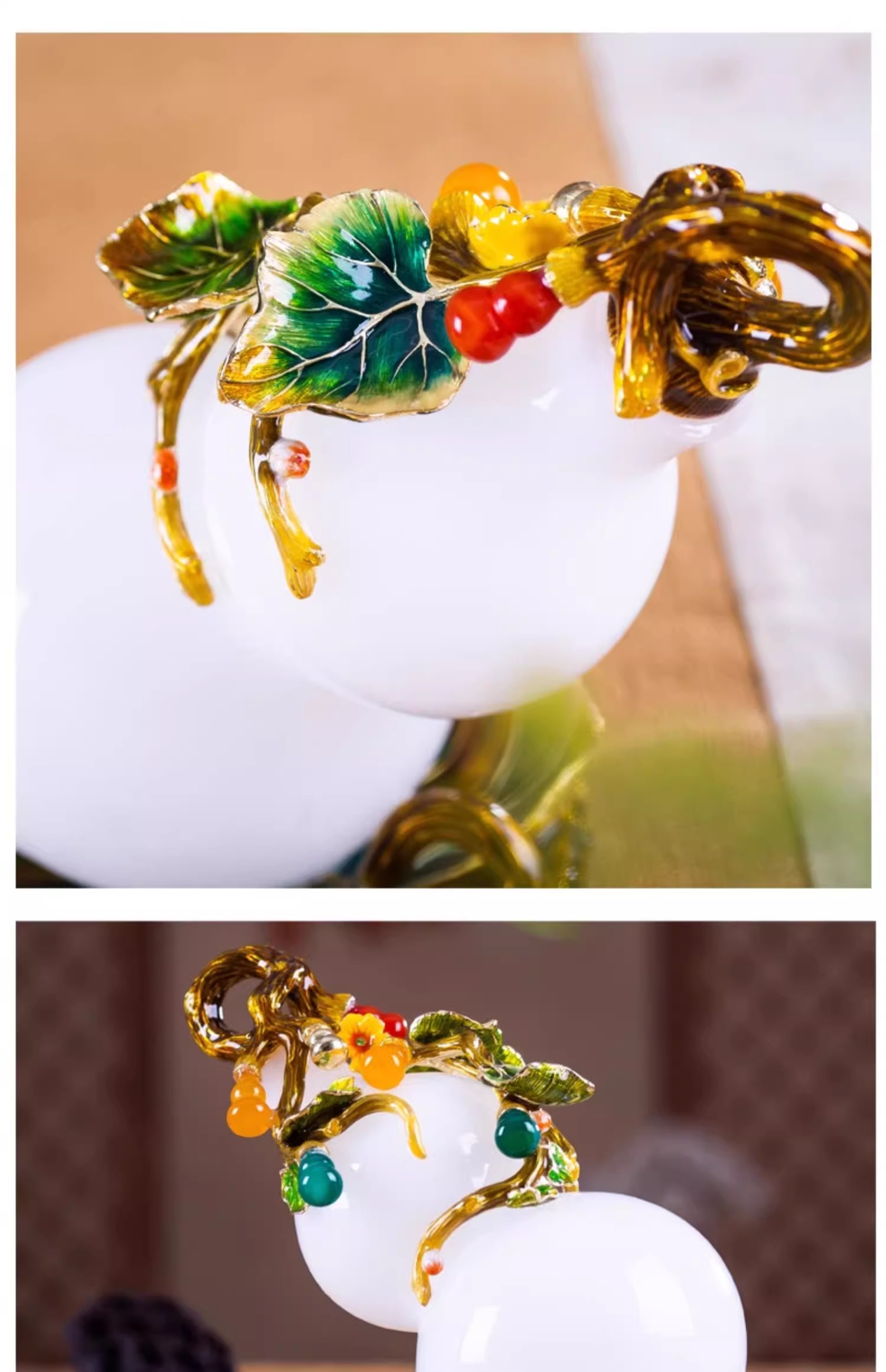 珐琅彩琉璃玉葫芦摆件新中式玄关创意福禄家居客厅电视柜饰品轻奢佛罗端斯五福临门摆件-小号