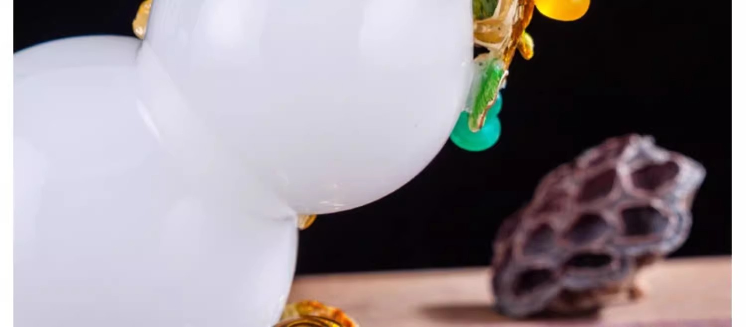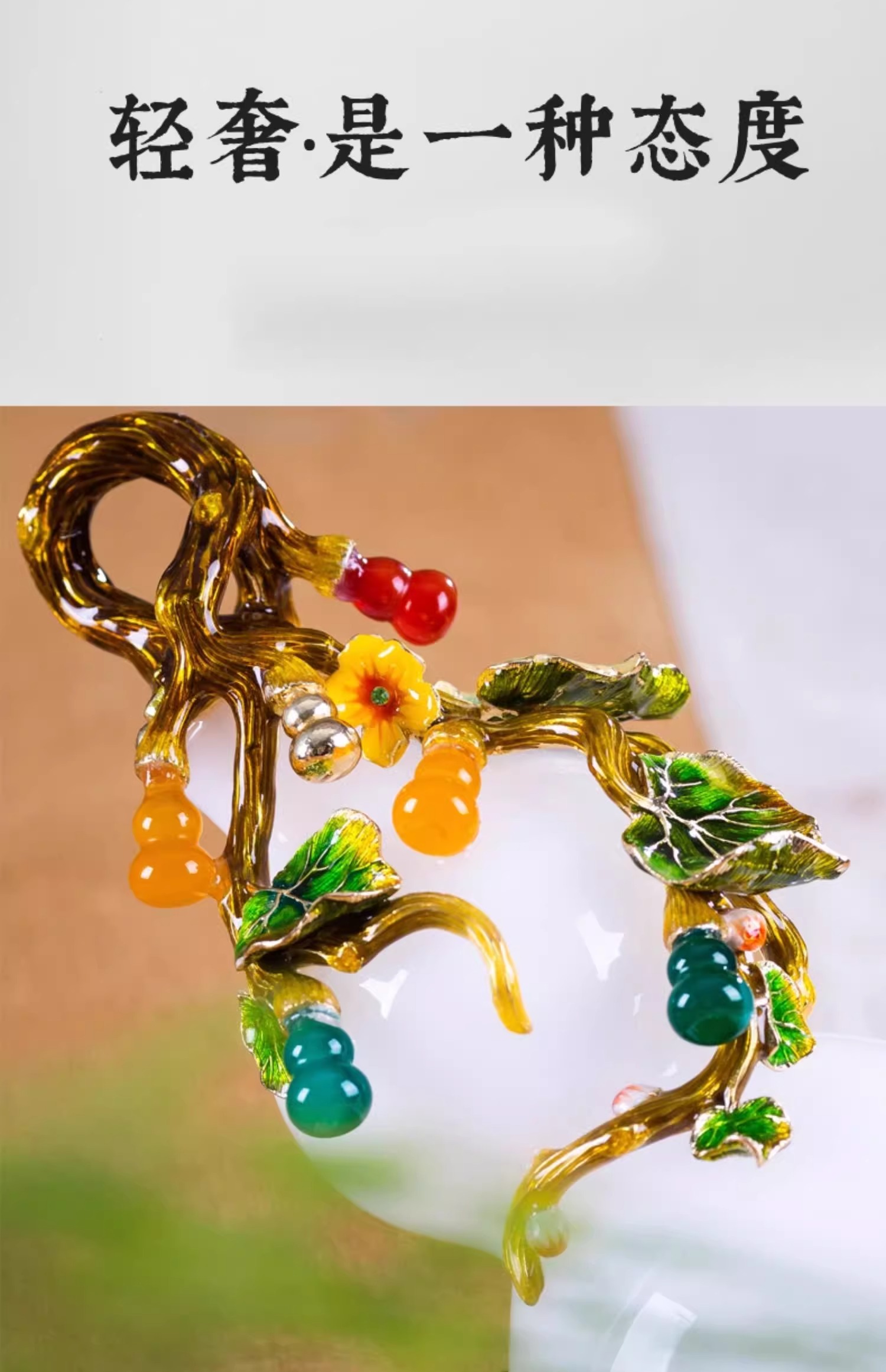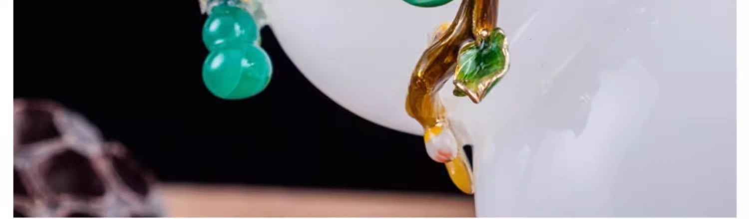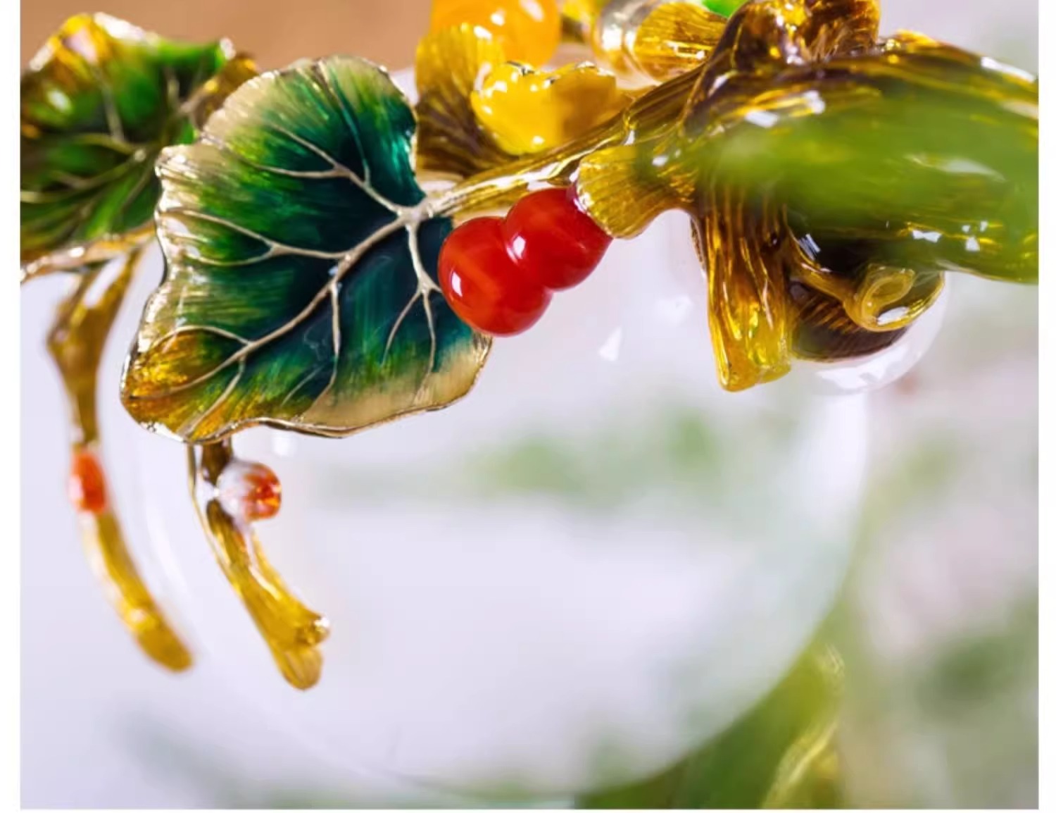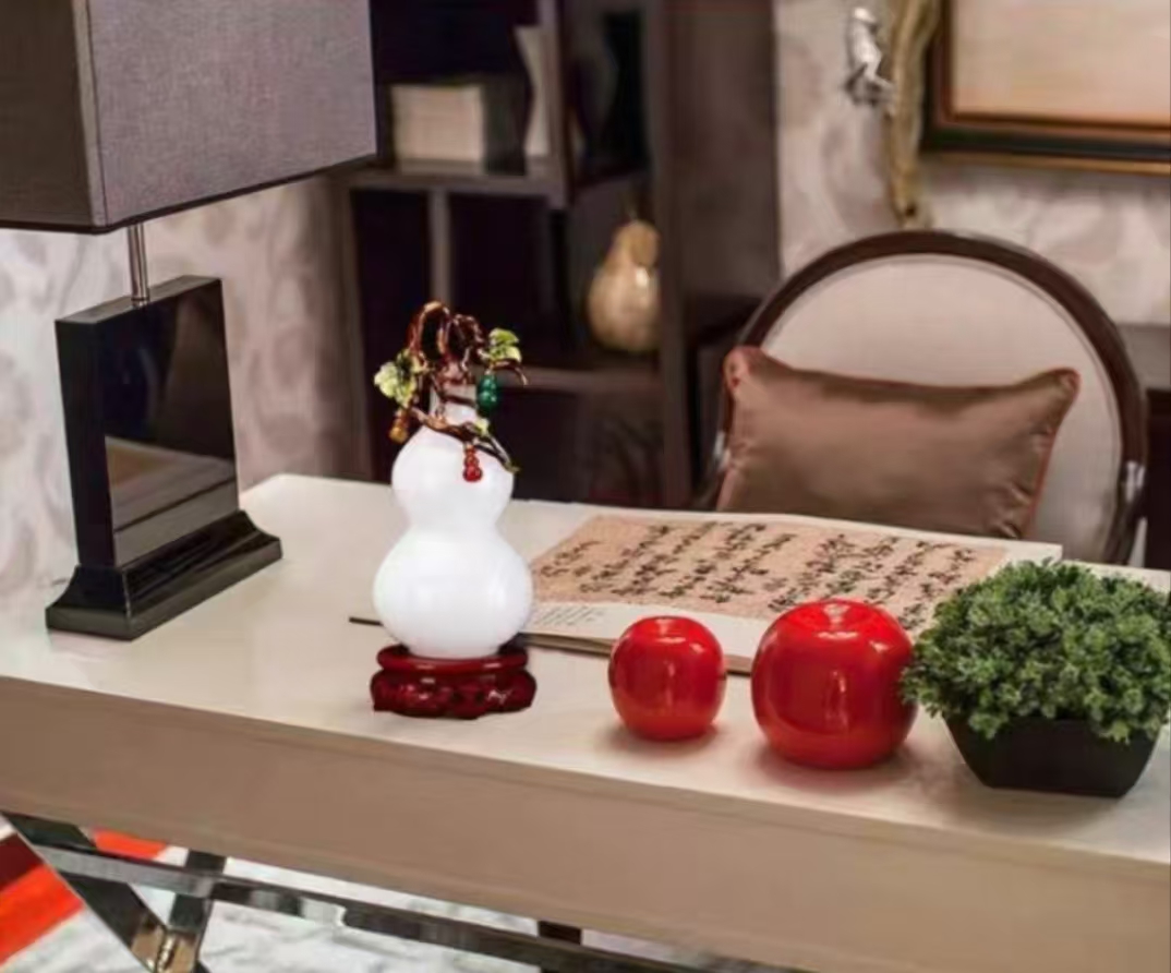 珐琅彩琉璃玉葫芦摆件新中式玄关创意福禄家居客厅电视柜饰品轻奢佛罗端斯五福临门摆件-小号