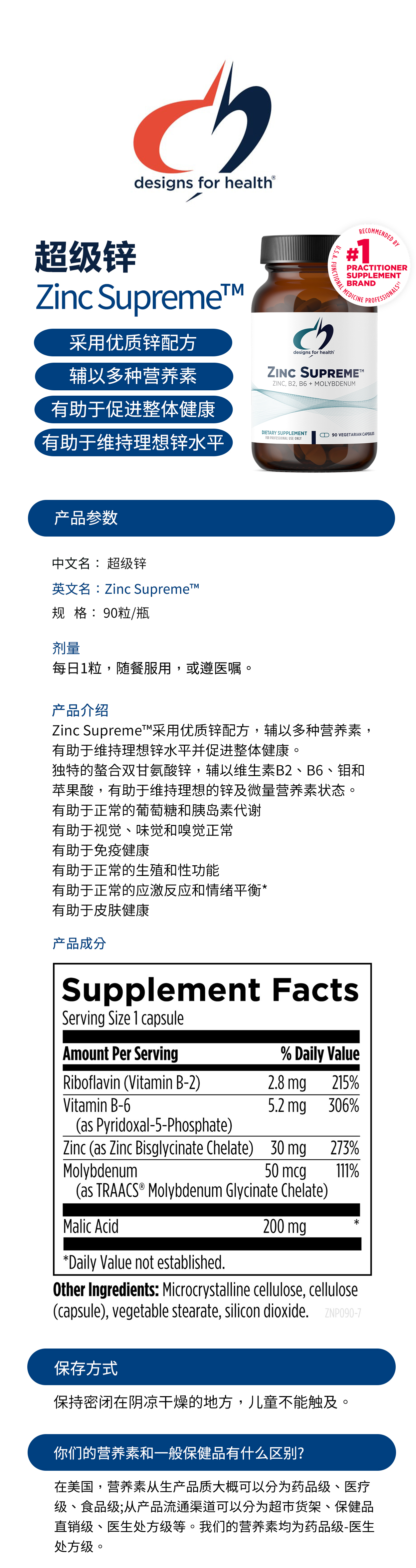 美国DFH Zinc Supreme™ 超级锌 甘氨酸锌#维生素b 90粒