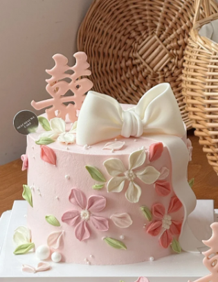 微加高蝴蝶结结婚订婚裱花蛋糕-低糖处理无添加
