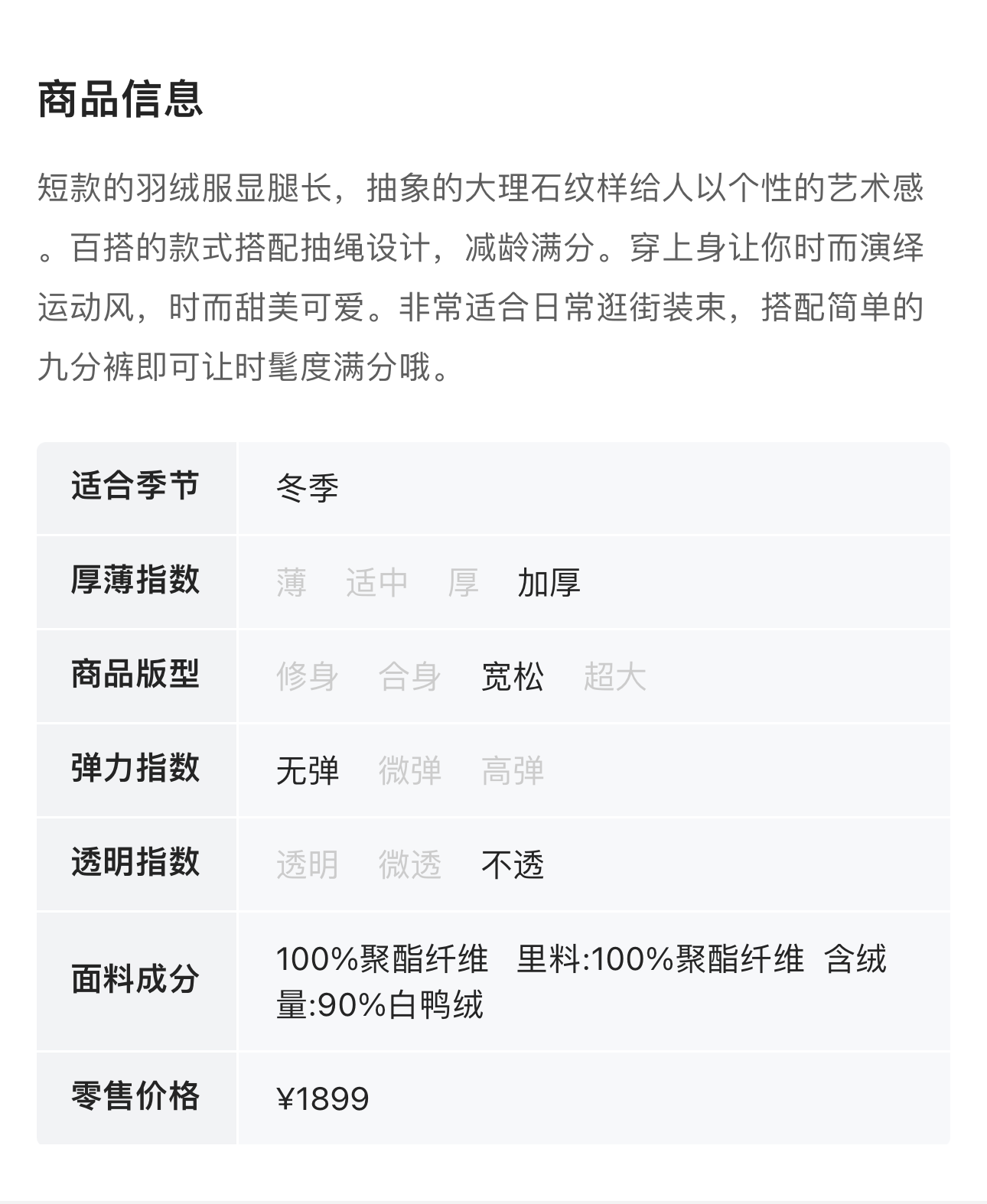 ELLA JADE 大理石纹理短款羽绒服 4423