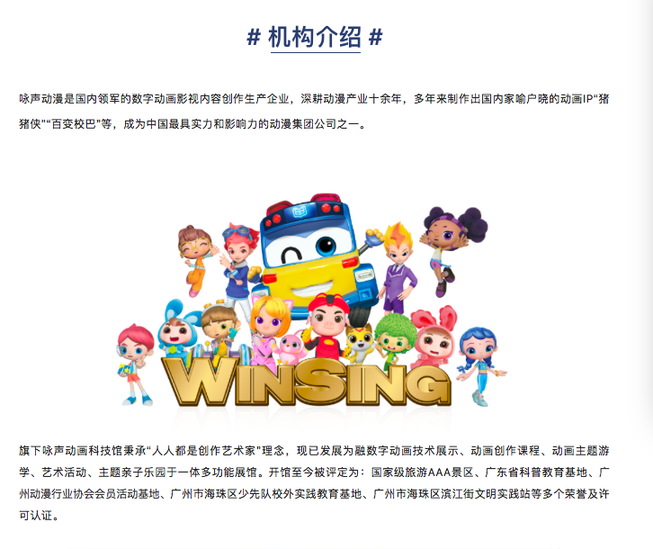 基地地址:广州市海珠区南华东路草芳围2号咏声动画科技馆