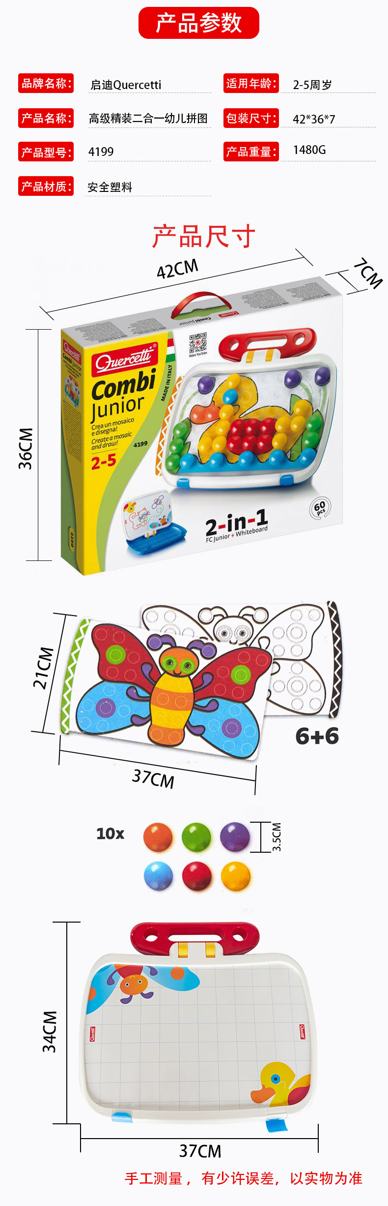 Quercetti启迪 早教系列 高级精装二合一幼儿拼图 Q4199 2+岁 意大利