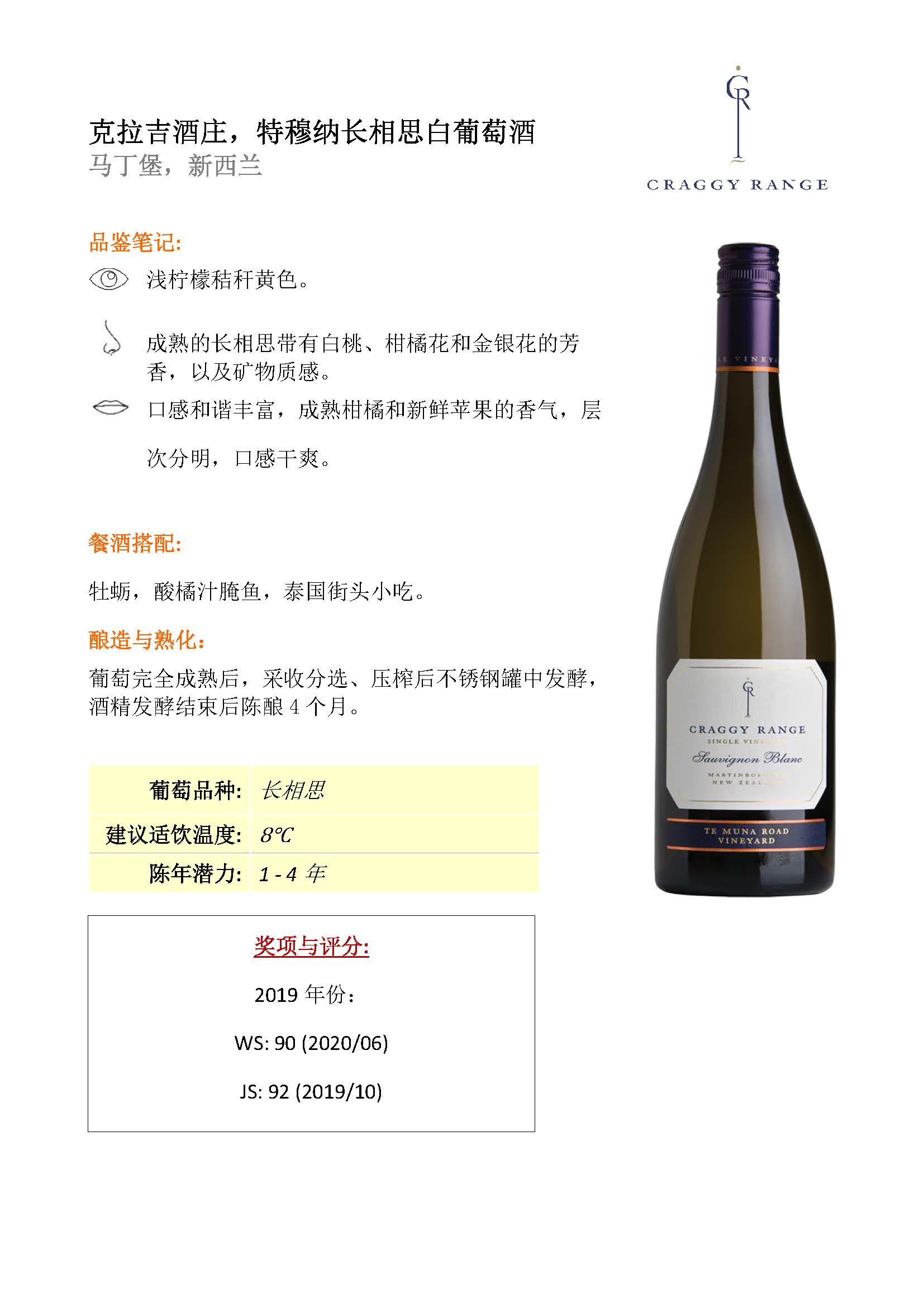 克拉吉酒庄特穆纳长相思白葡萄酒