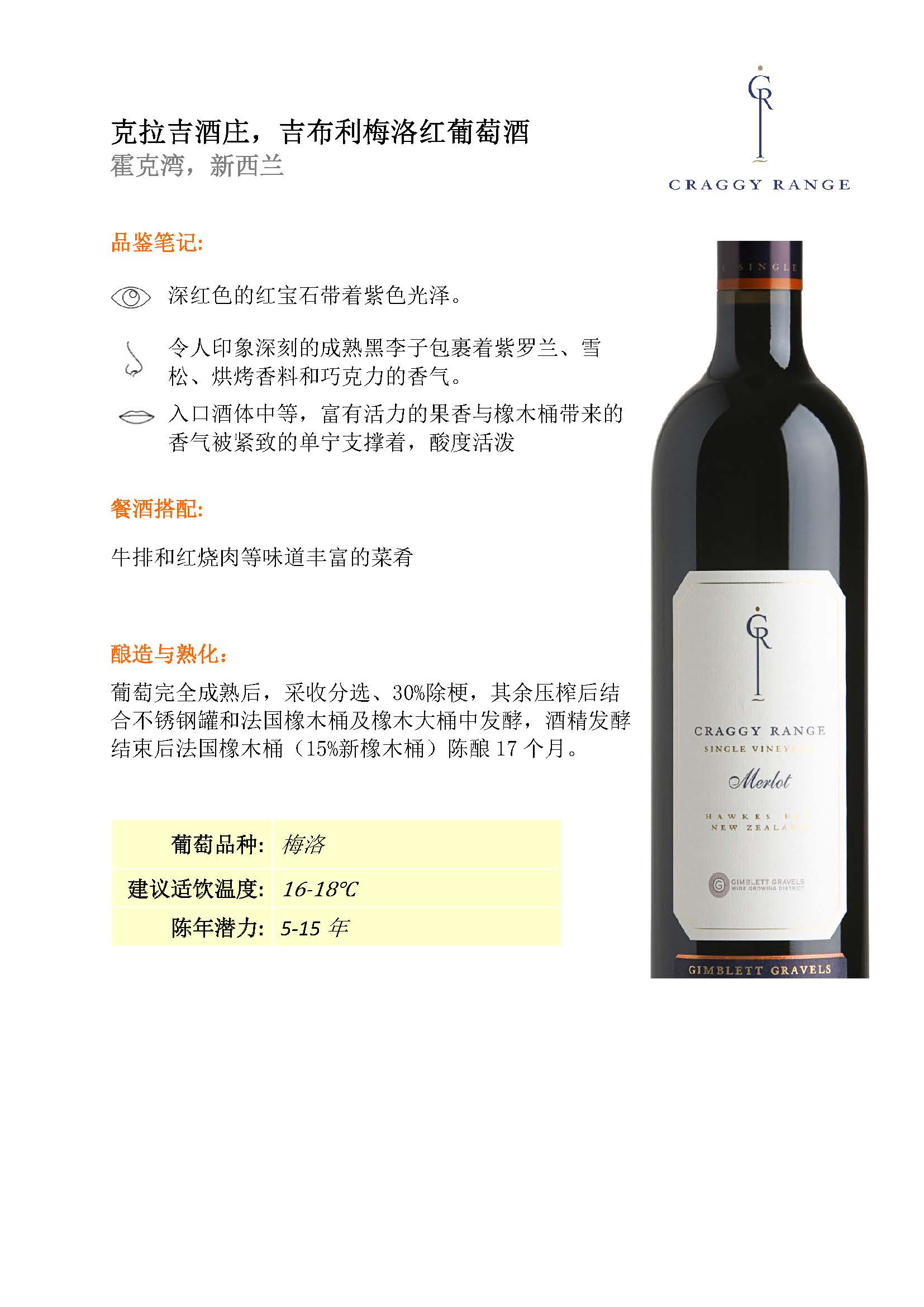 克拉吉酒庄吉布利梅洛红葡萄酒