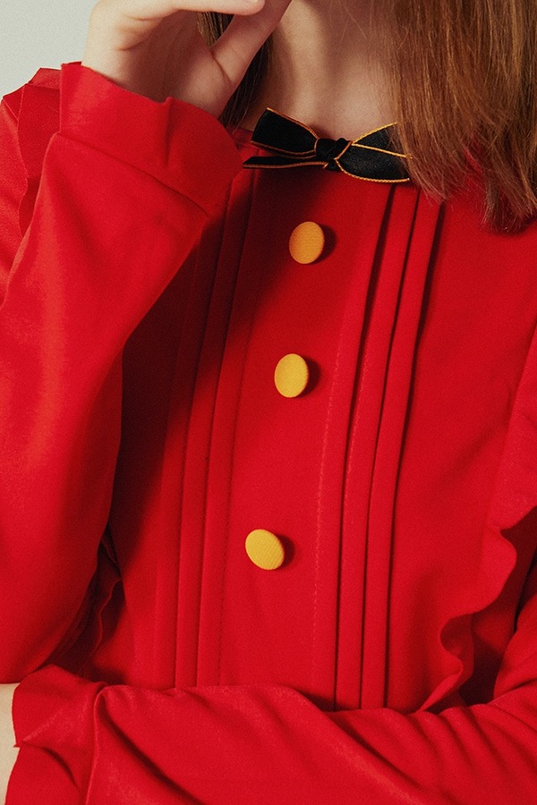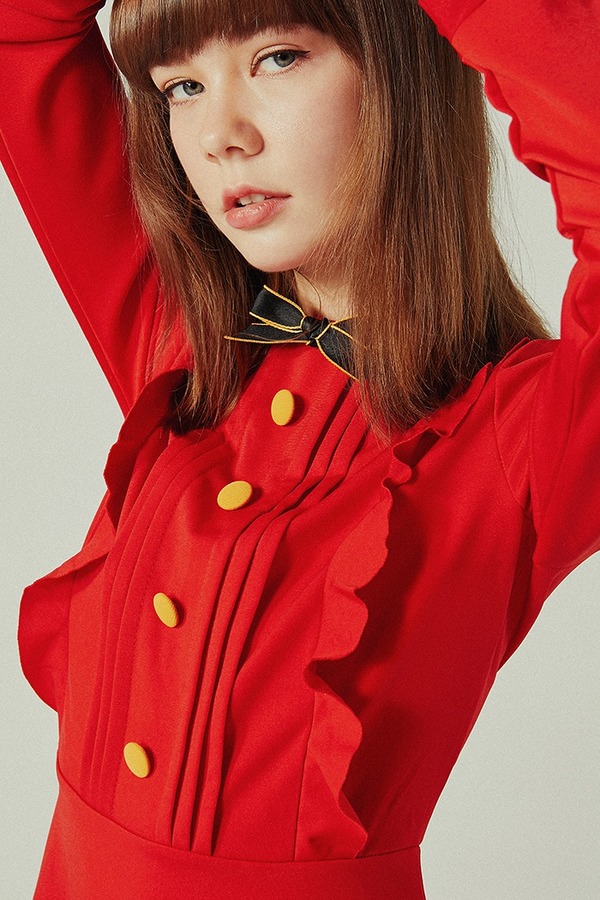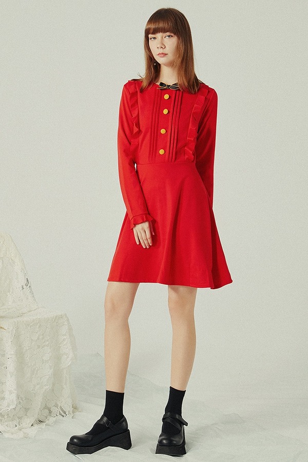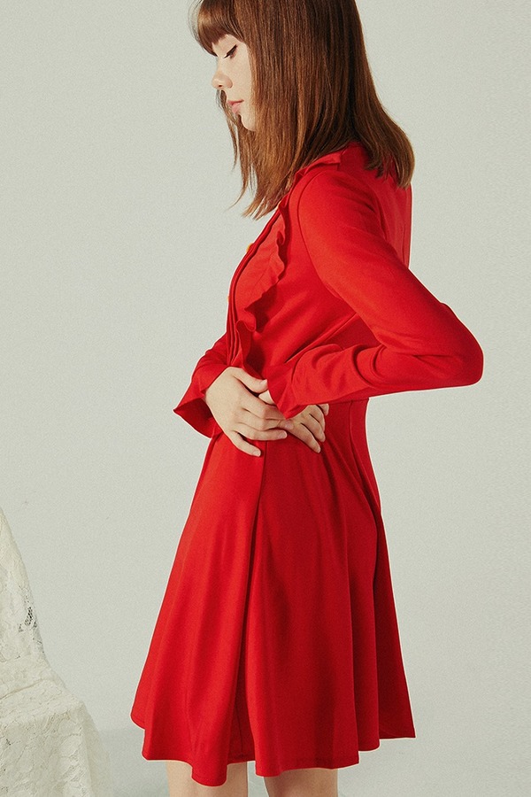 komello 红色木耳边连衣裙 14566