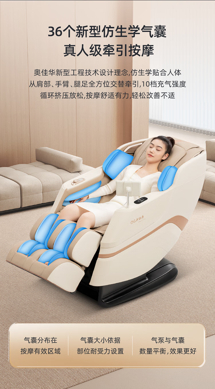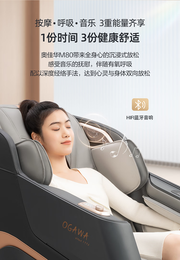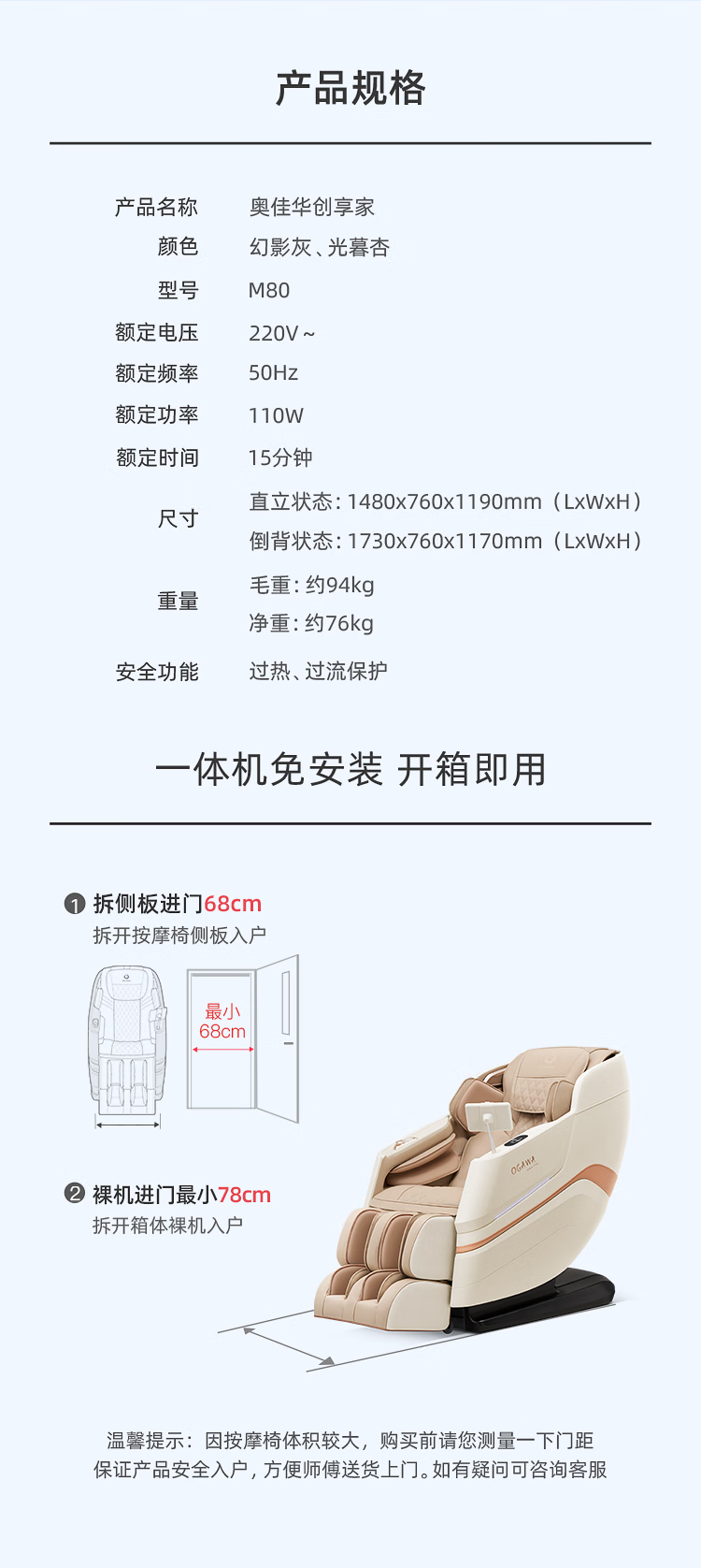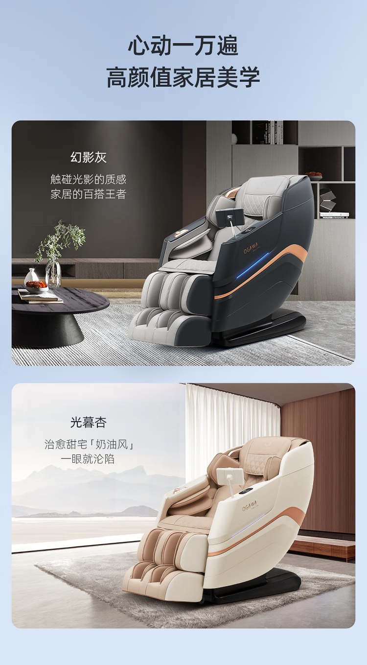 奥佳华按摩椅十大品牌家用全自动按摩沙发零重力全身3D机芯电动太空舱按摩椅父母老人生日礼物M80光暮杏