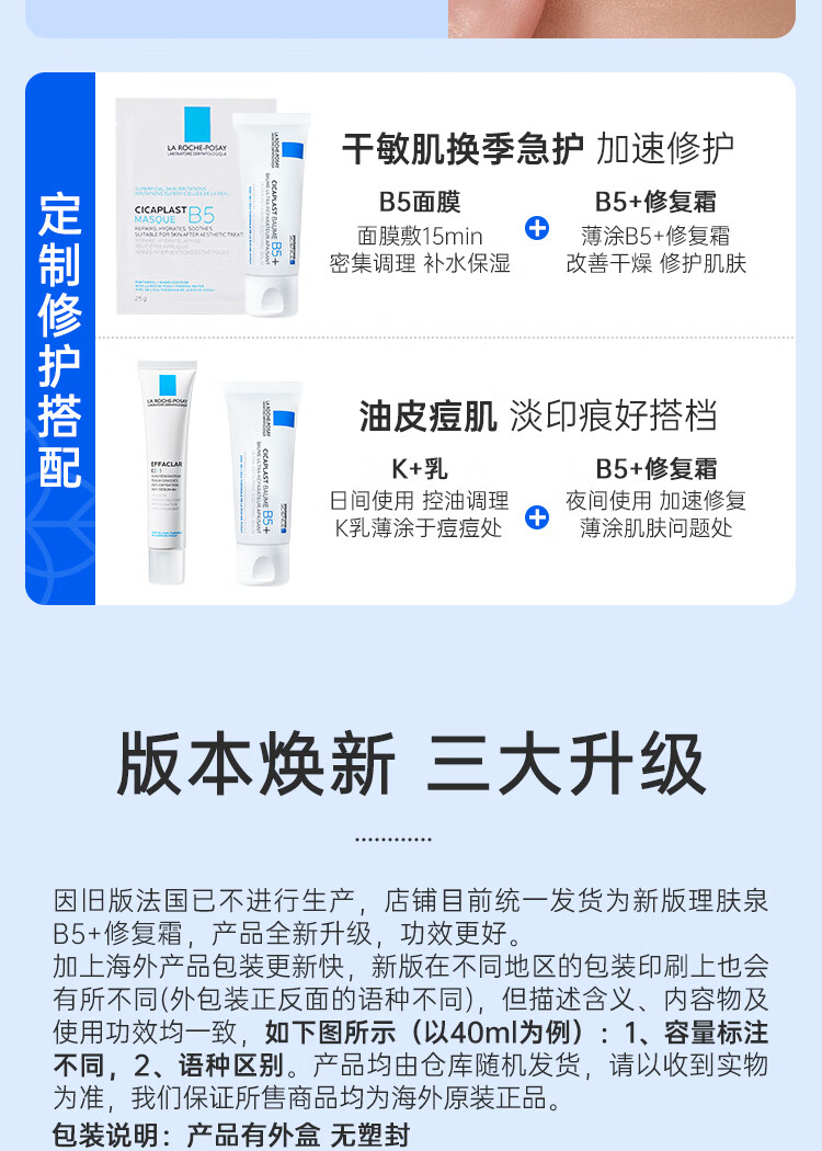 LAROCHE POSAY理肤泉B5多效修复面霜40ml100ML