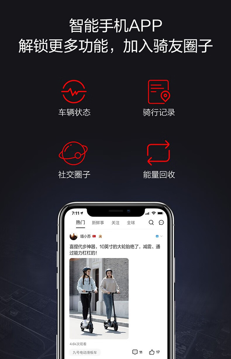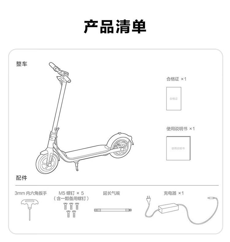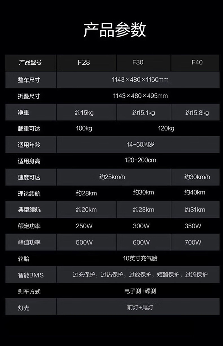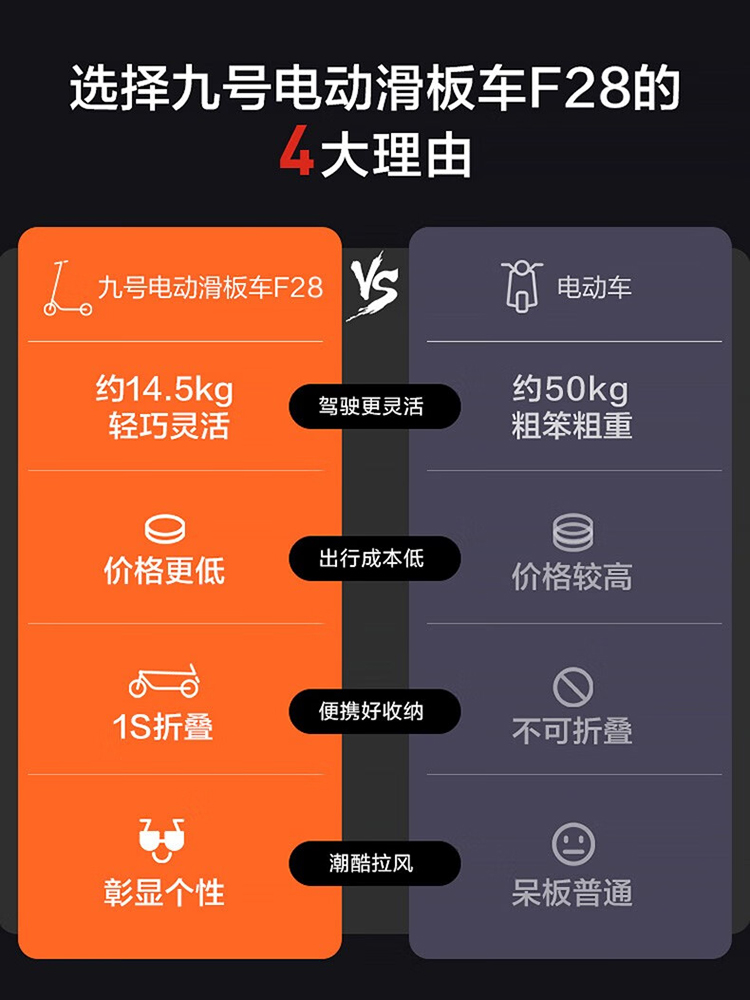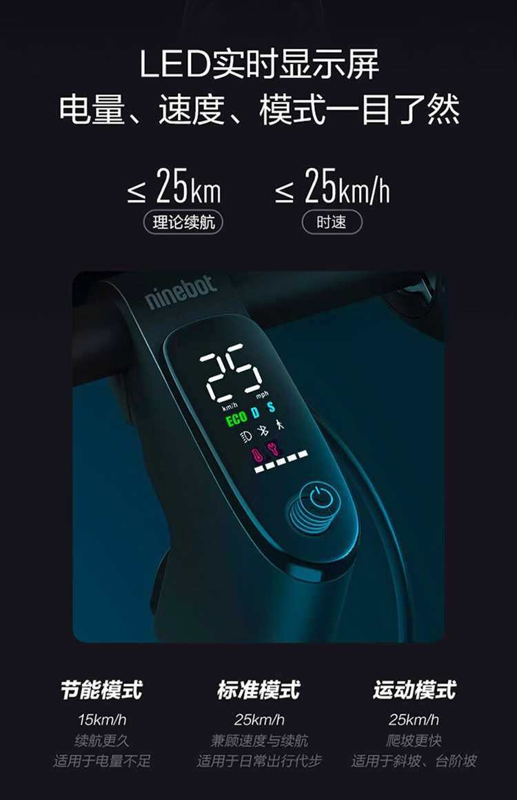 九号10英寸轮胎电动滑板车F28 续航20km 可折叠