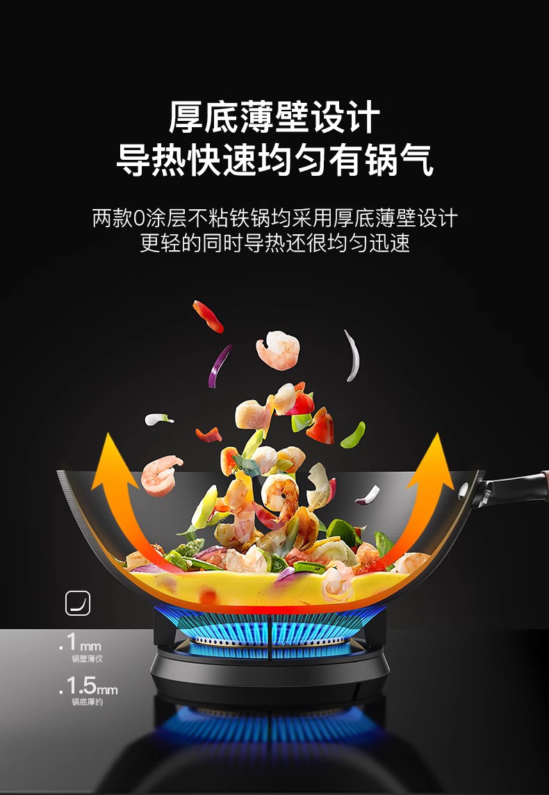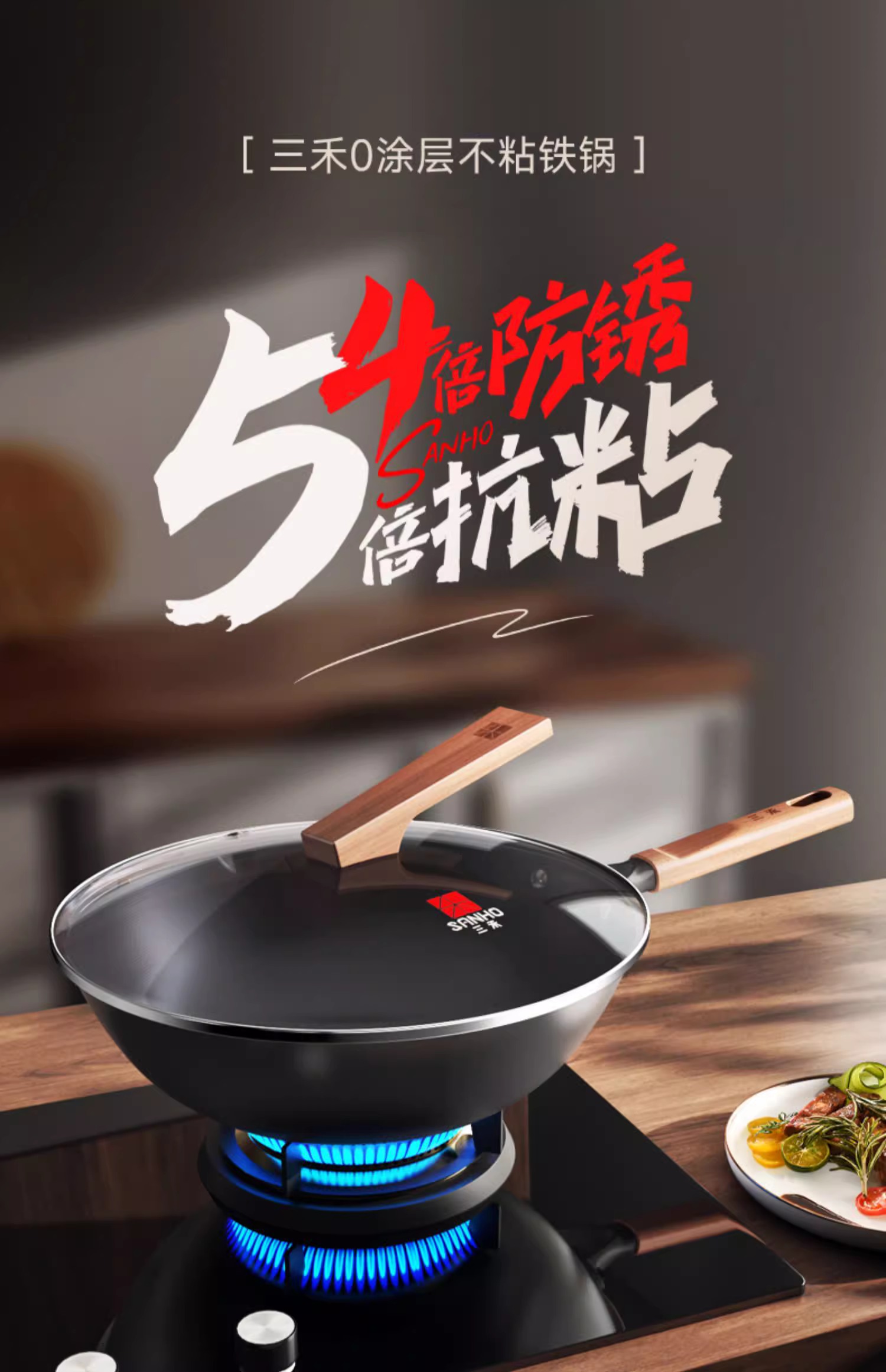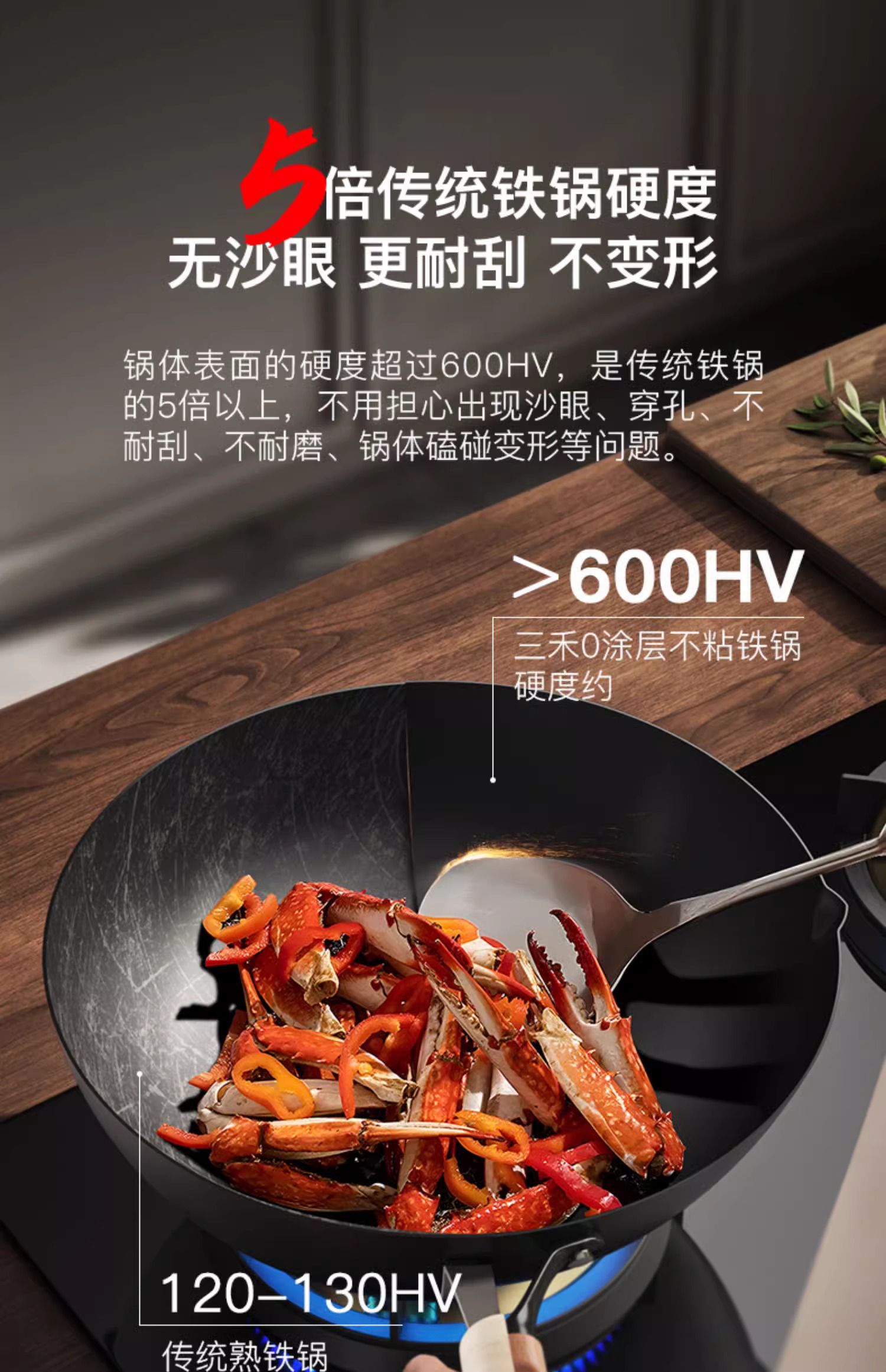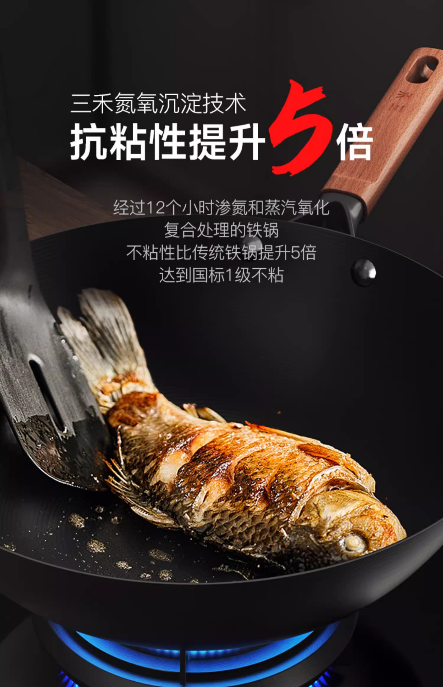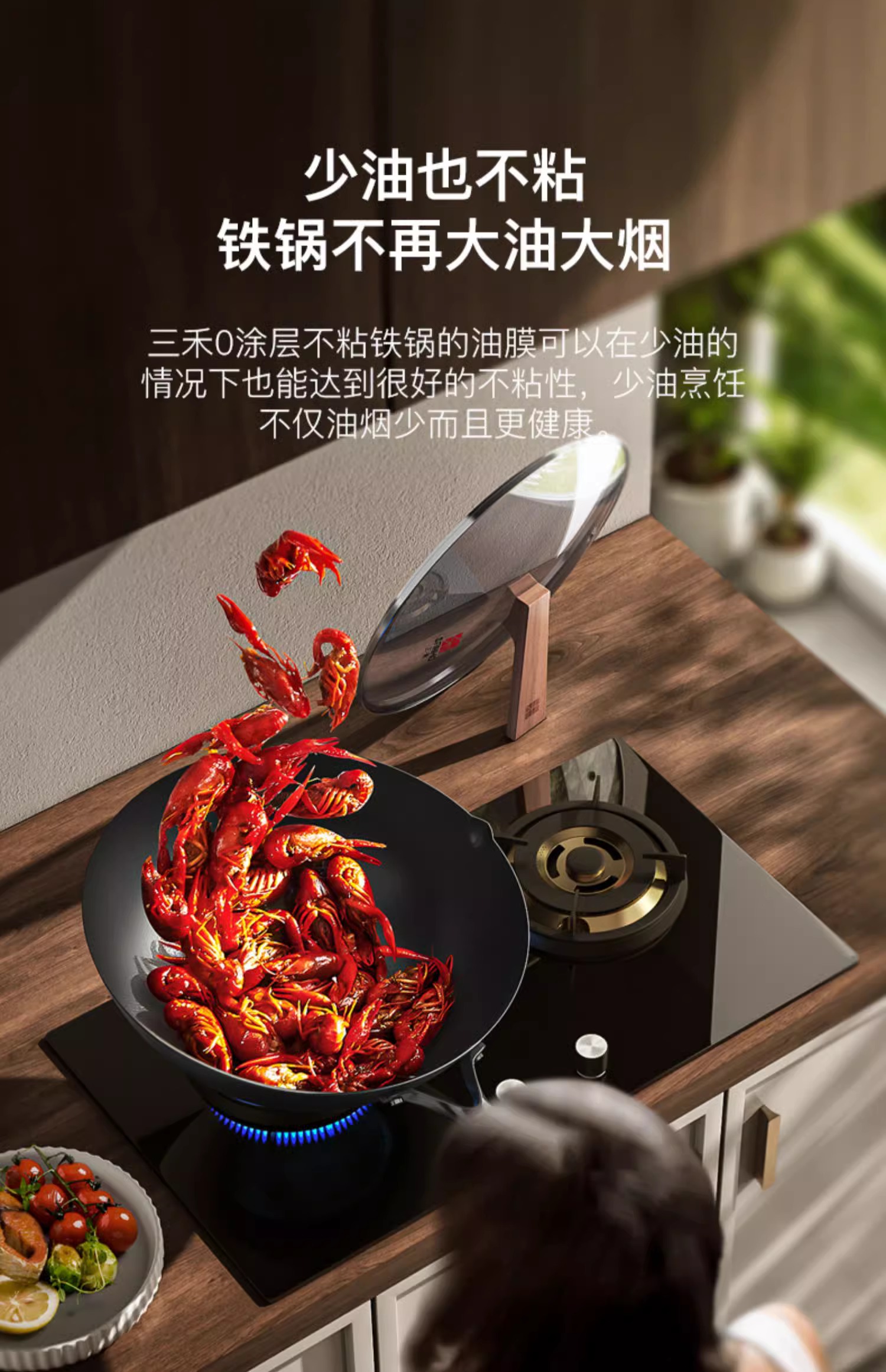 【8折清货,仅1件,无货退款】三禾家用0涂层防锈炒菜燃气灶专用无涂层铁锅炒锅