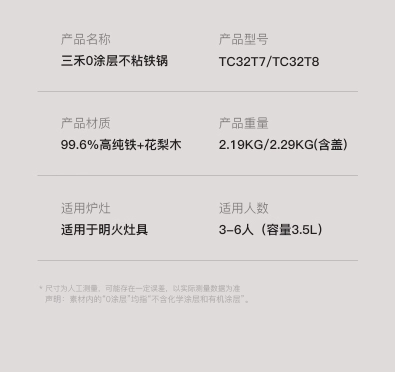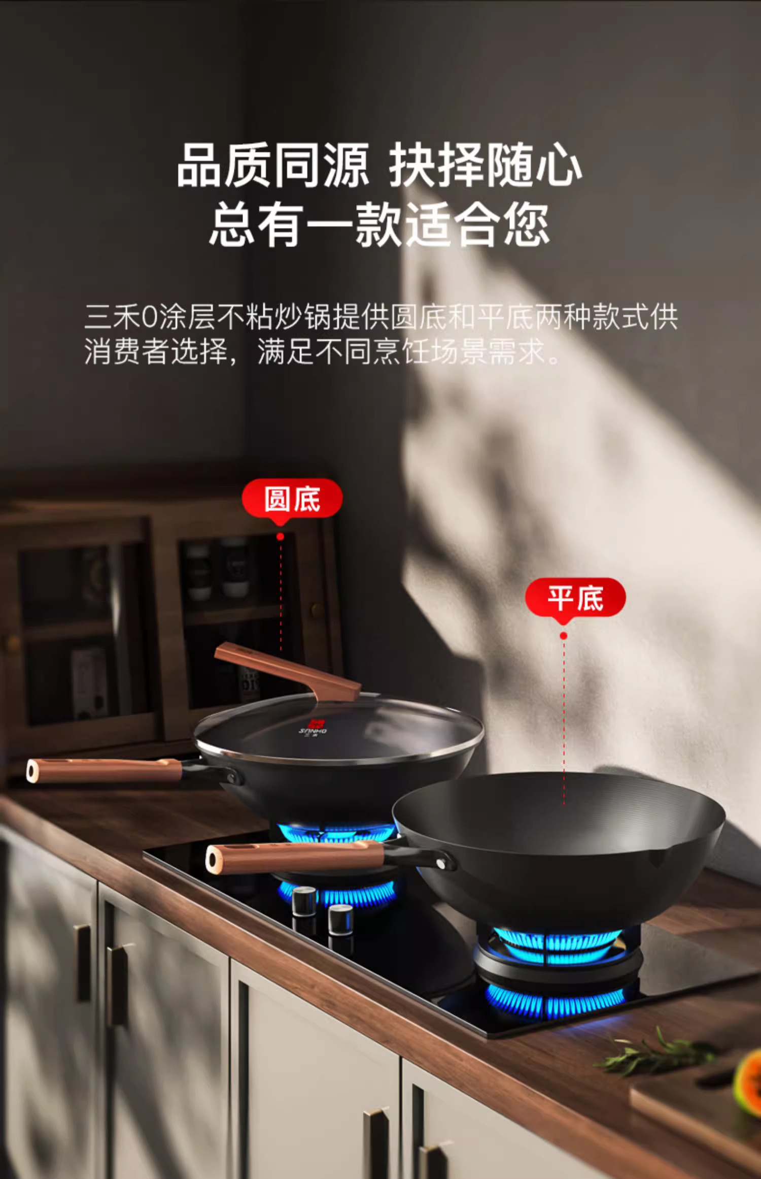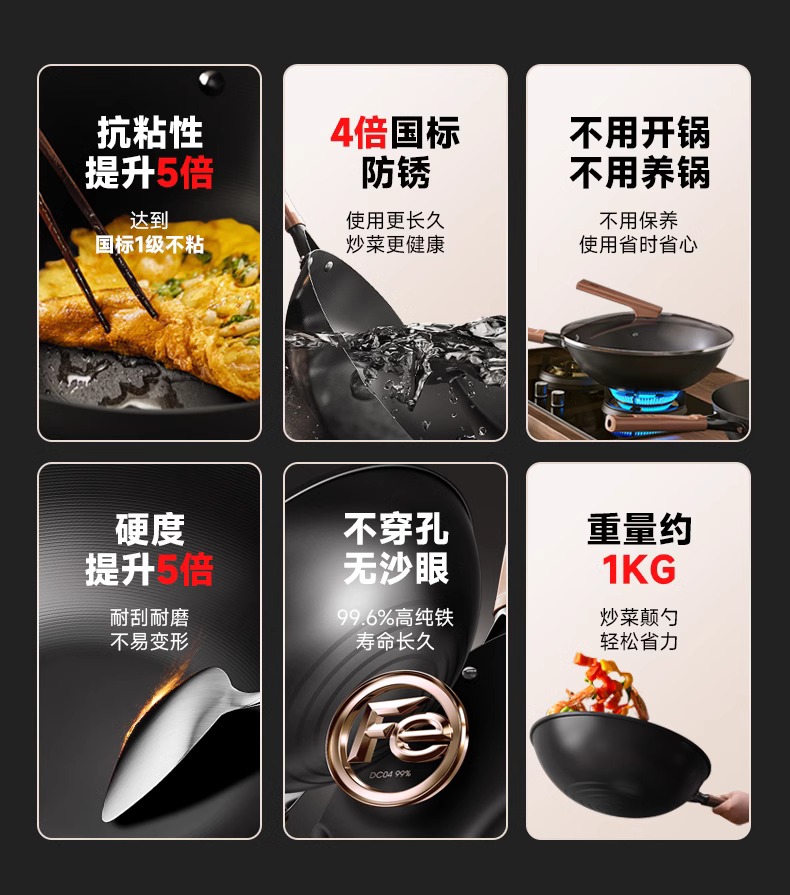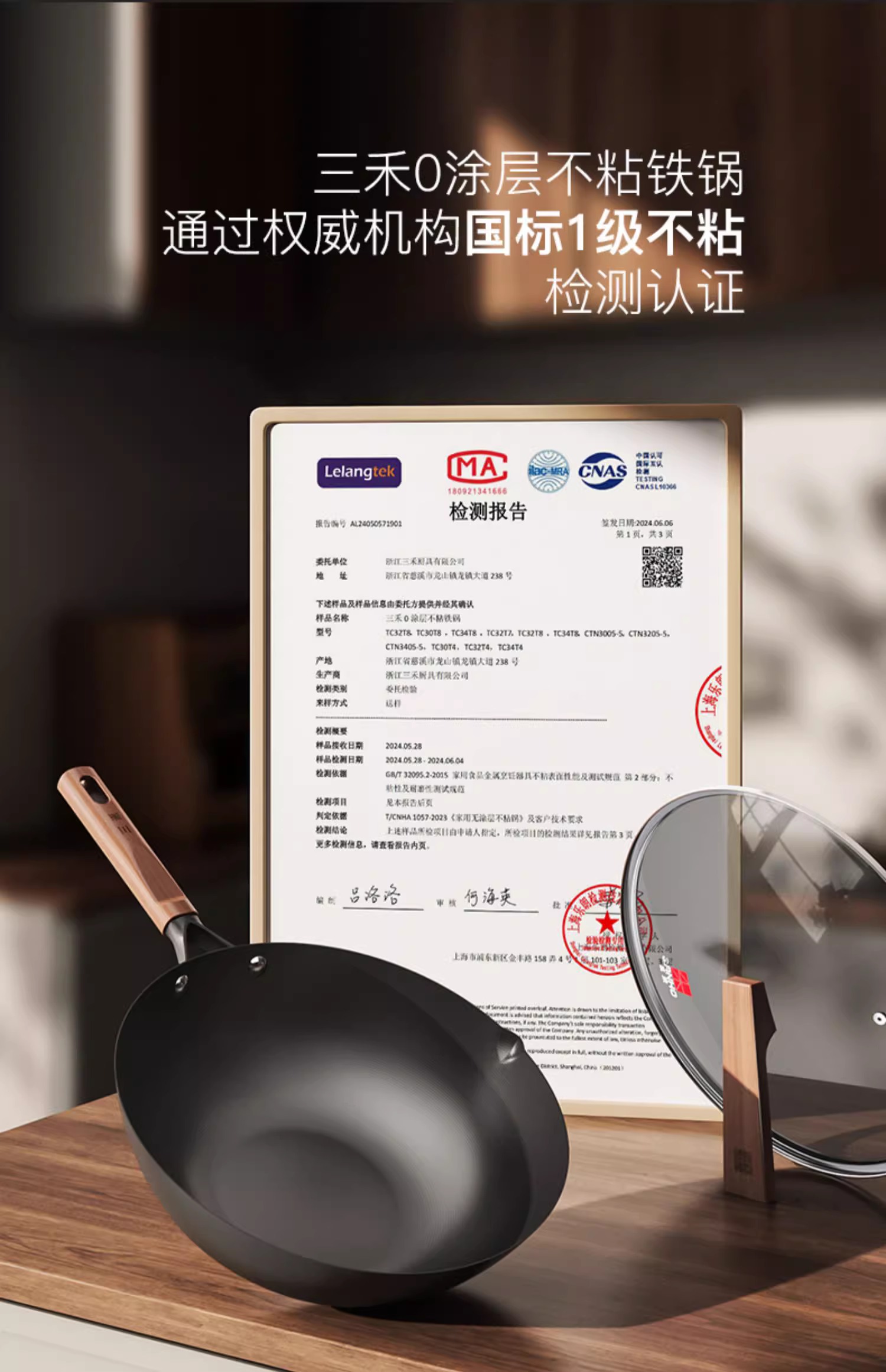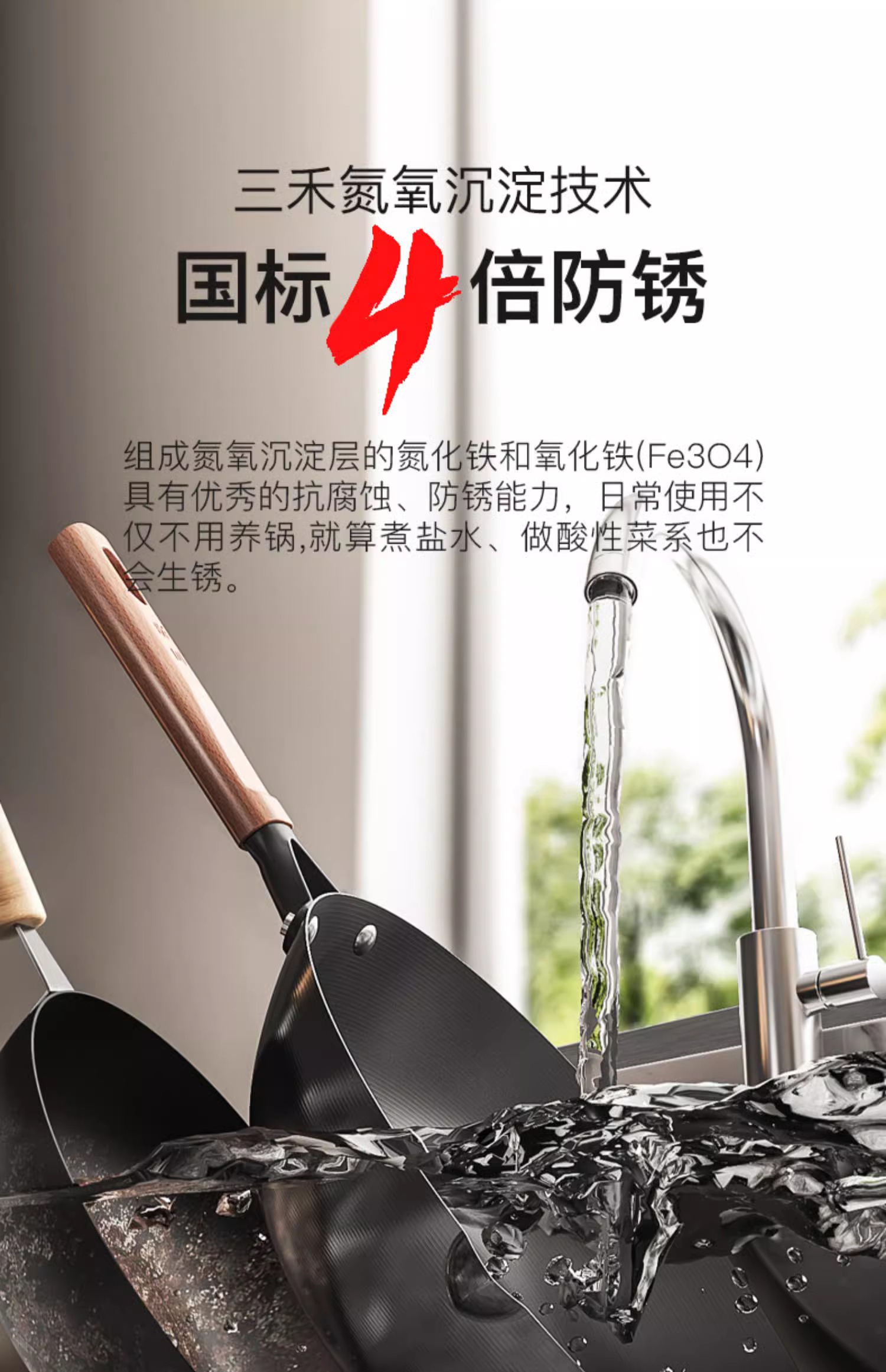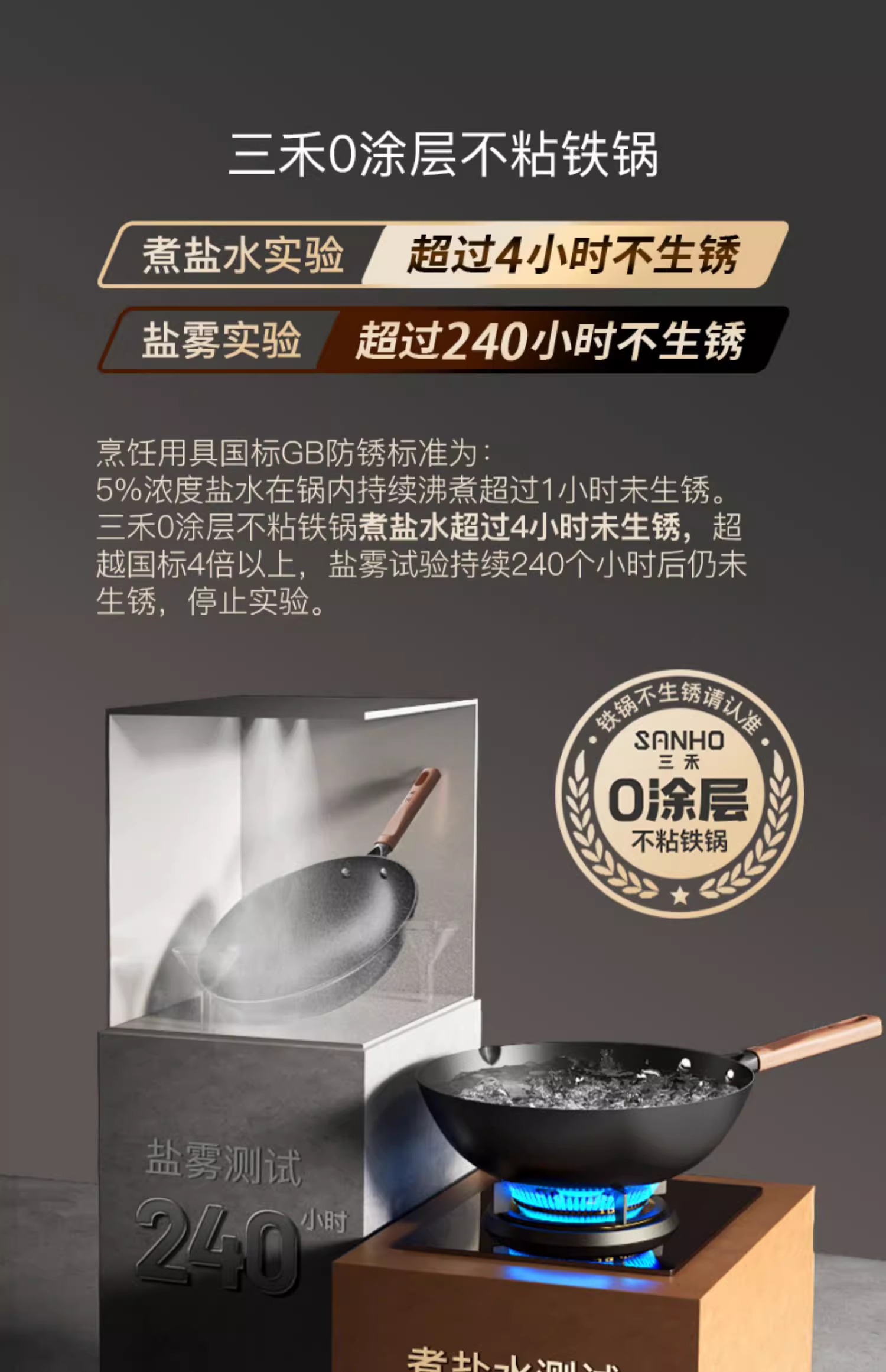 【8折清货,仅1件,无货退款】三禾家用0涂层防锈炒菜燃气灶专用无涂层铁锅炒锅