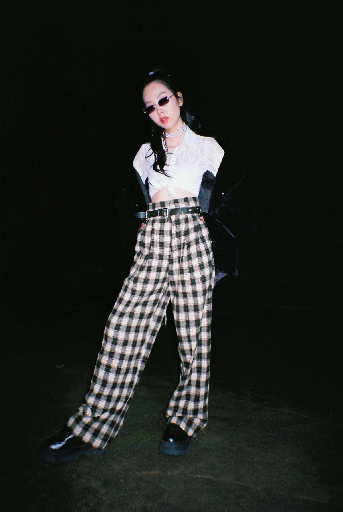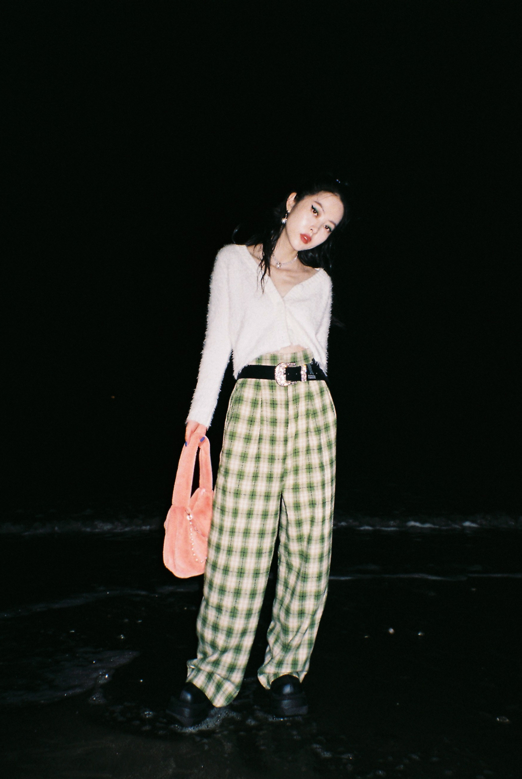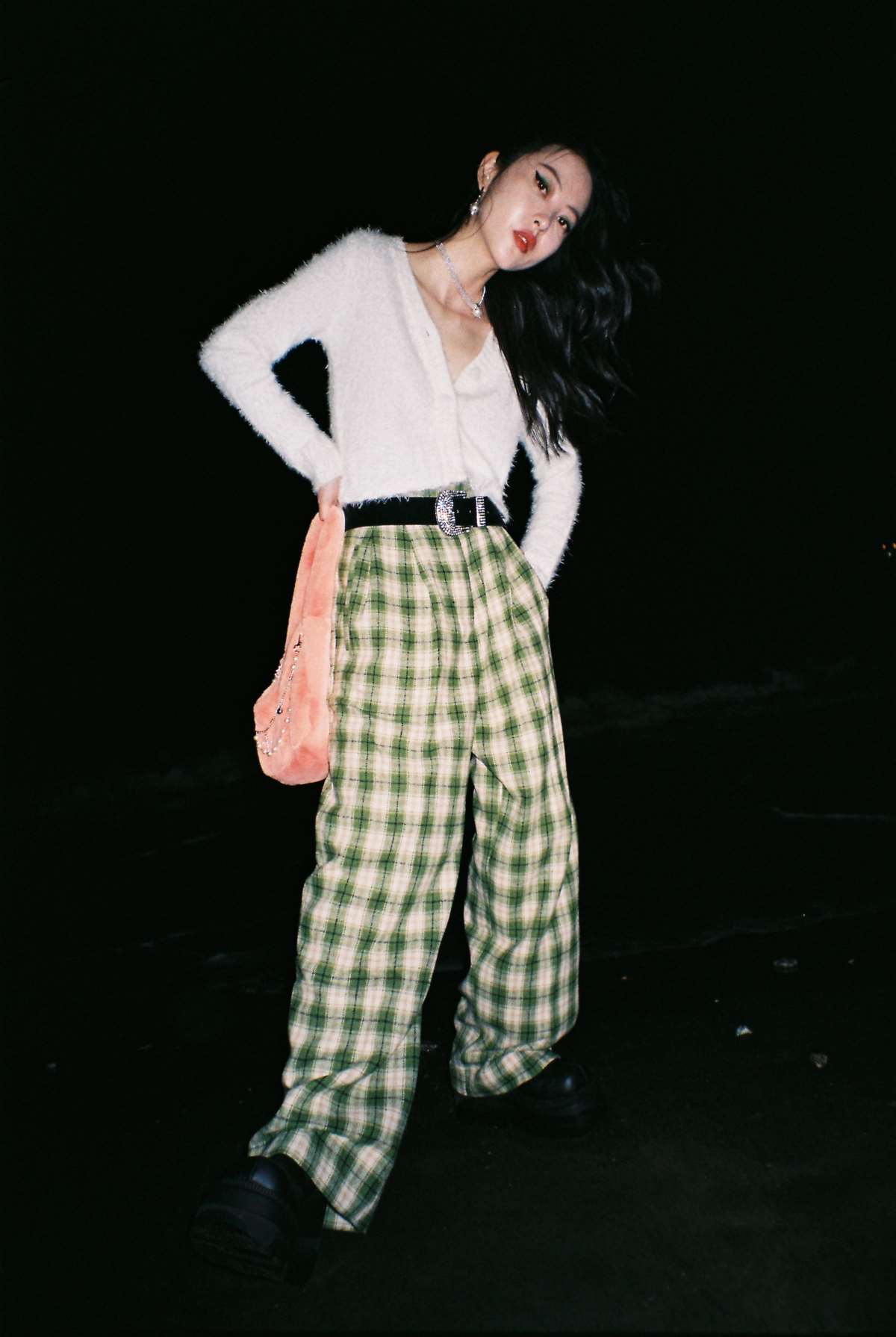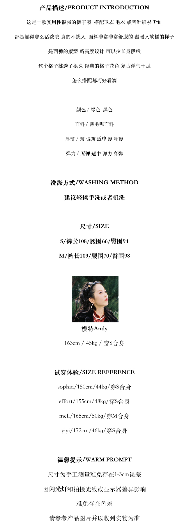 EhK 秋冬 复古双色格子 宽松百搭休闲长裤