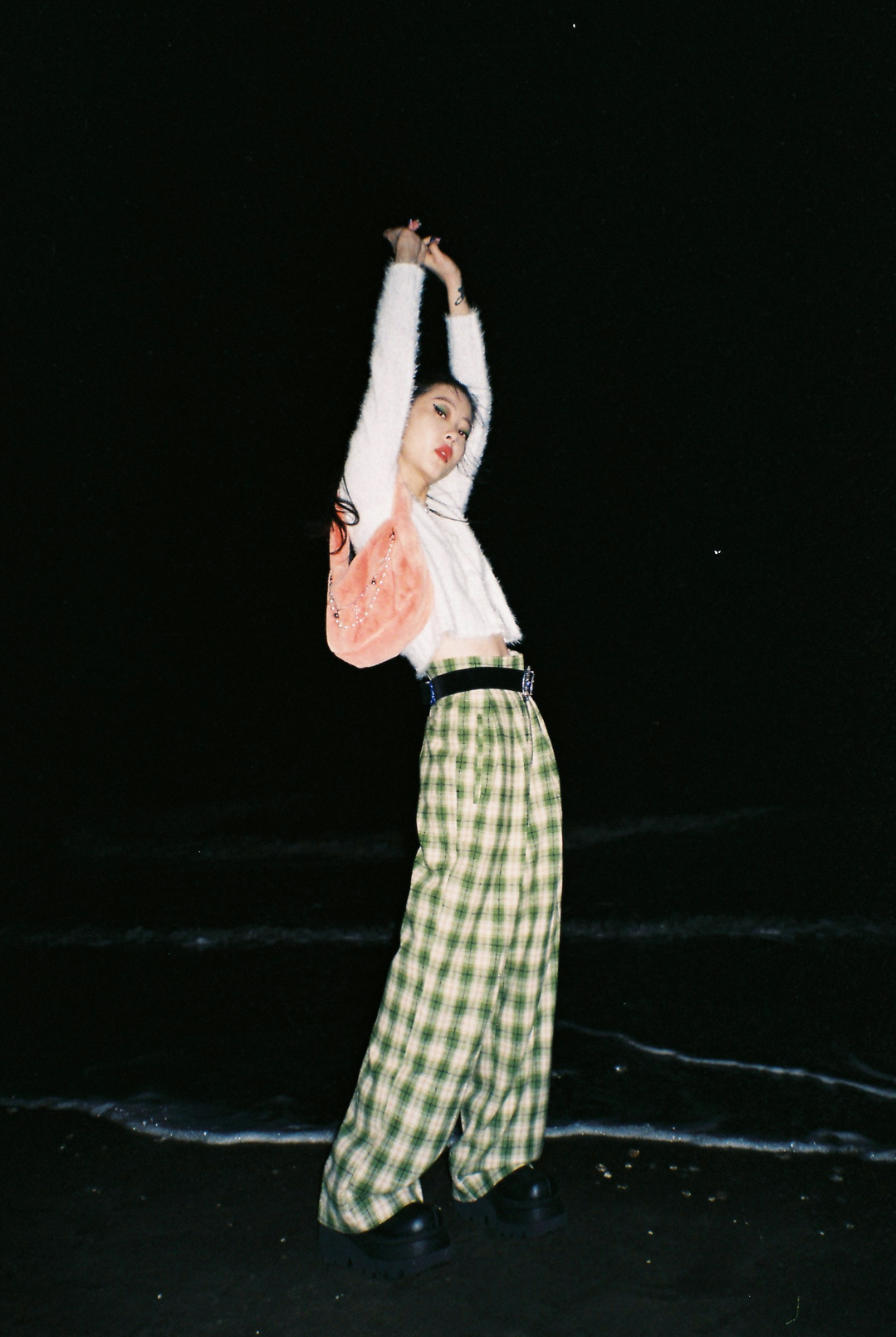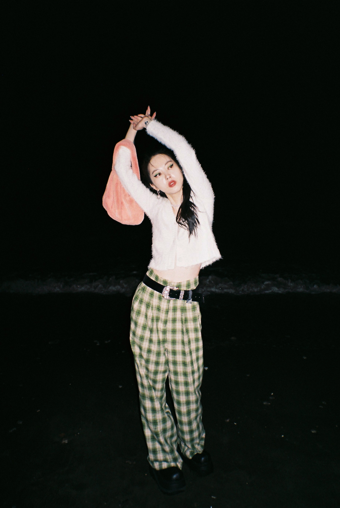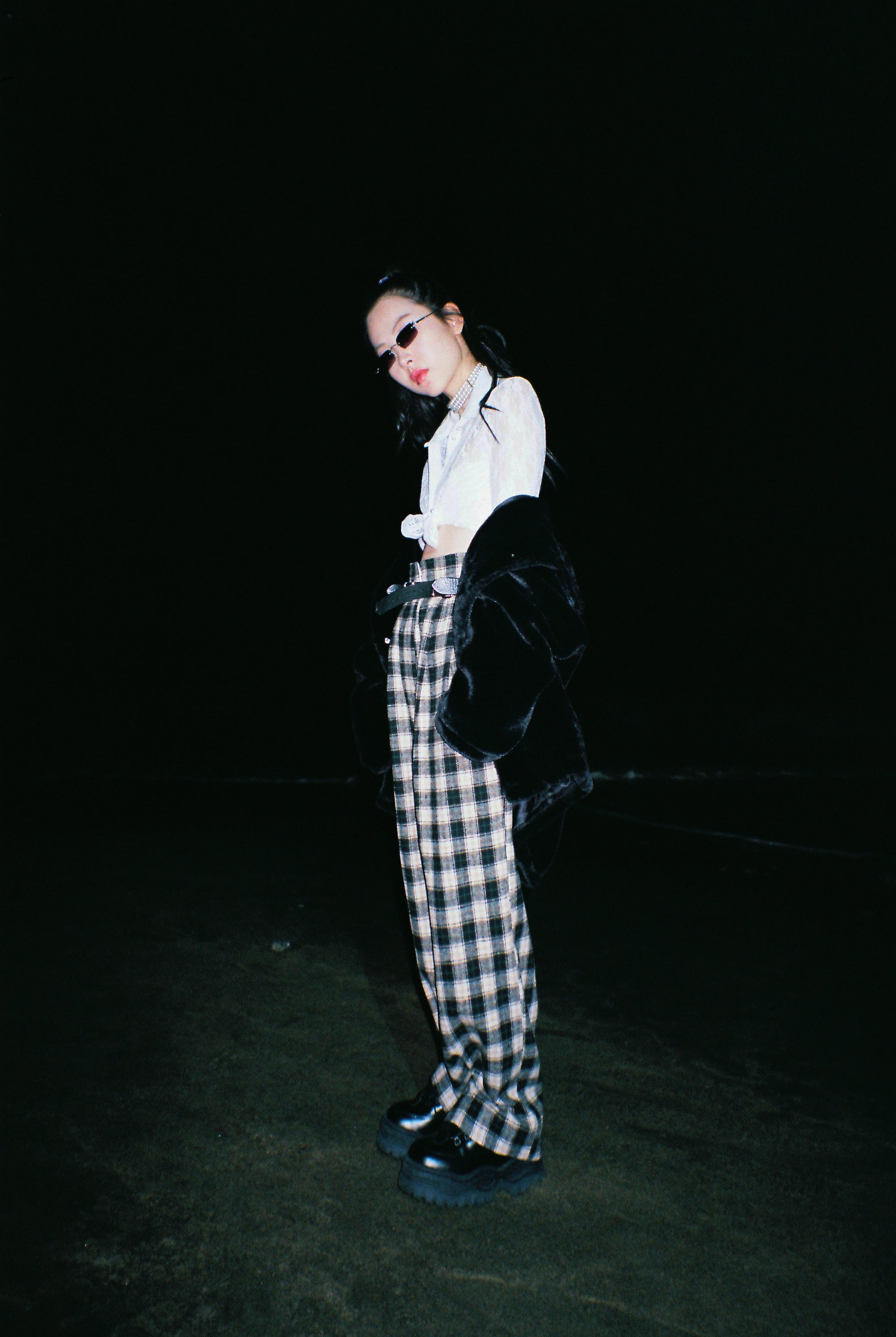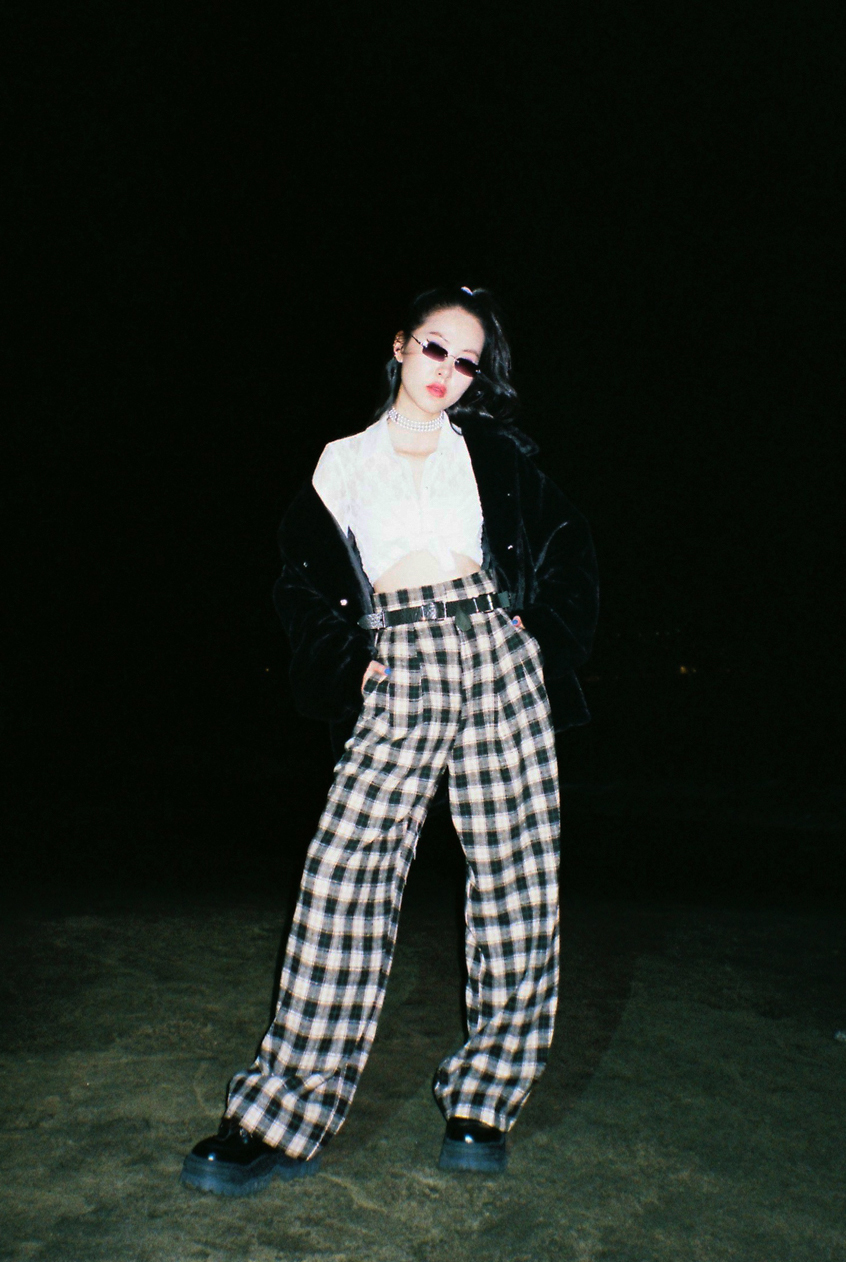 EhK 秋冬 复古双色格子 宽松百搭休闲长裤