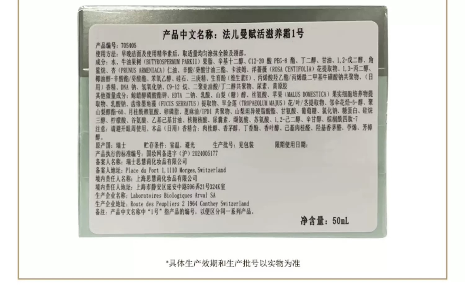 Valmont 赋活滋养霜1号面霜 50ml