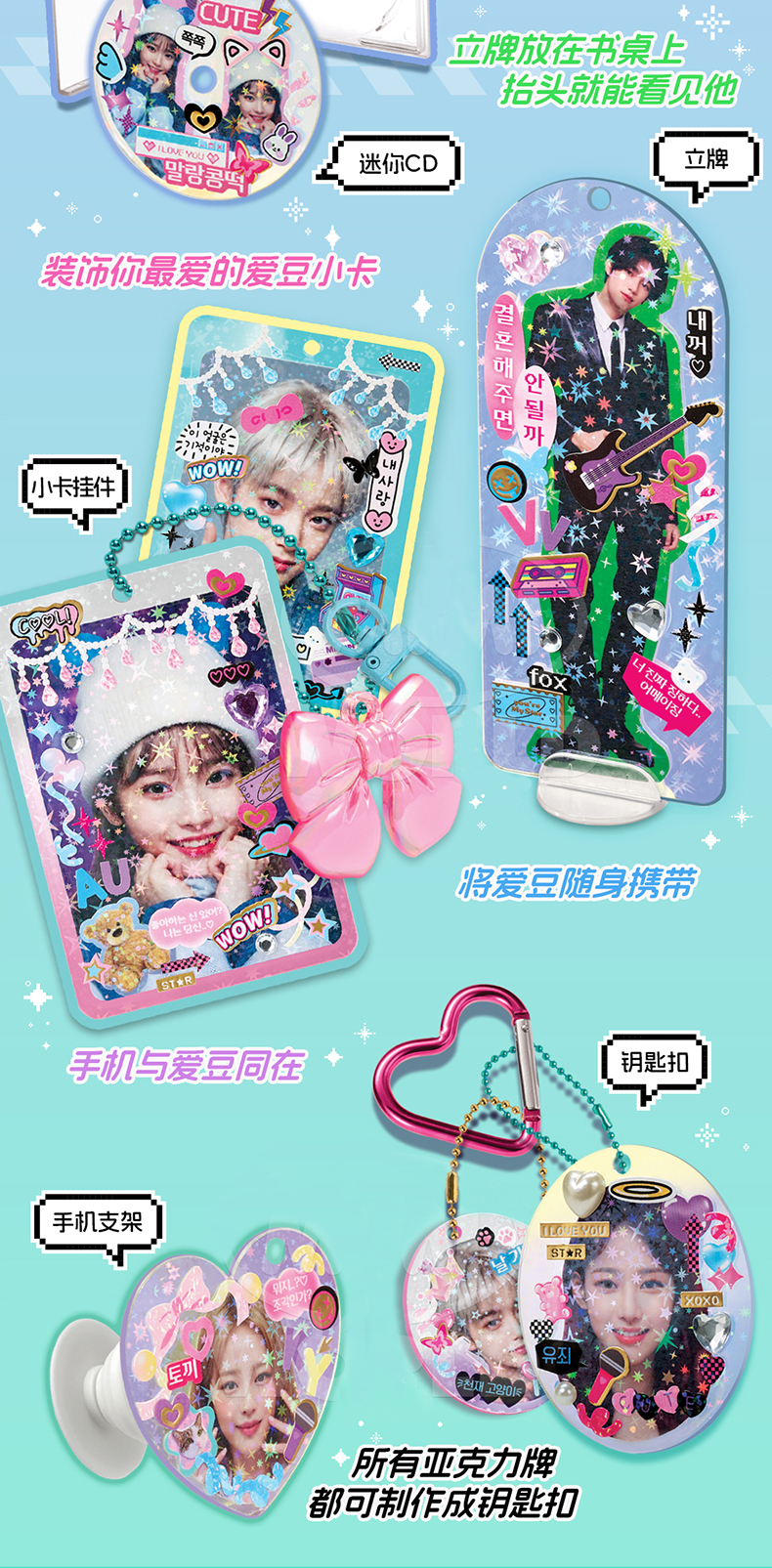 韩国正品mimiworld diy手工制作爱豆小卡照片摆件装饰贴纸机女孩过家家玩具