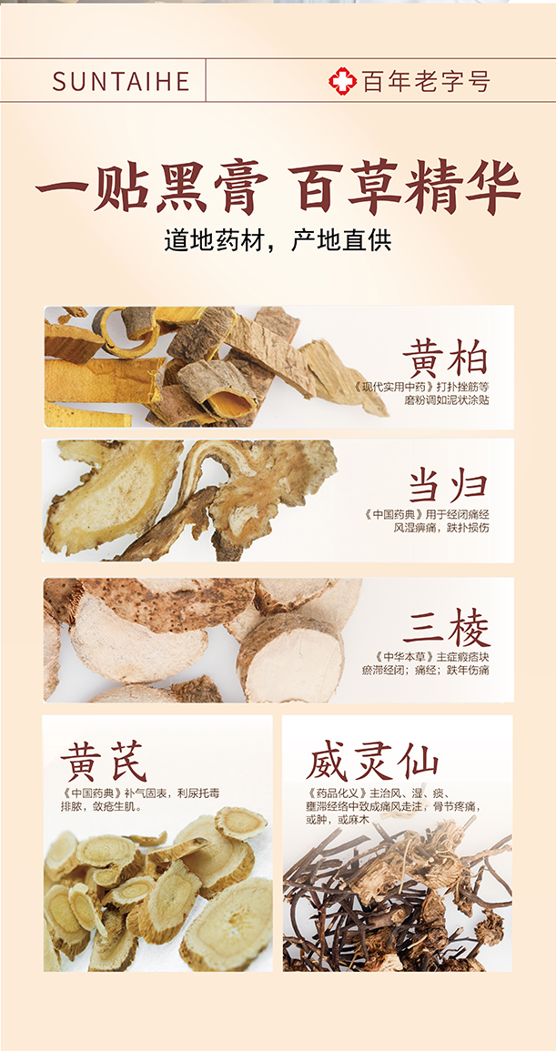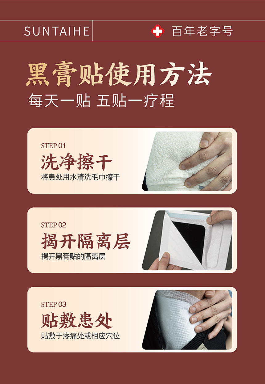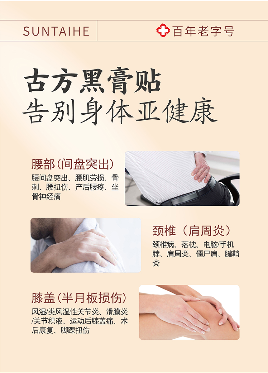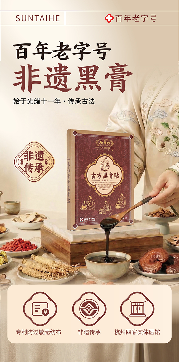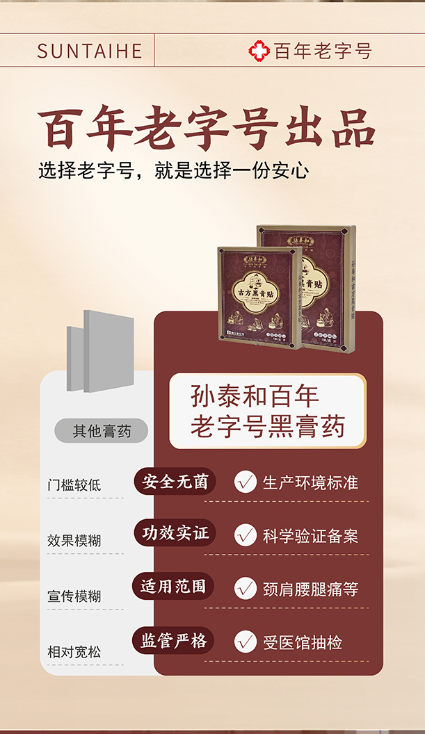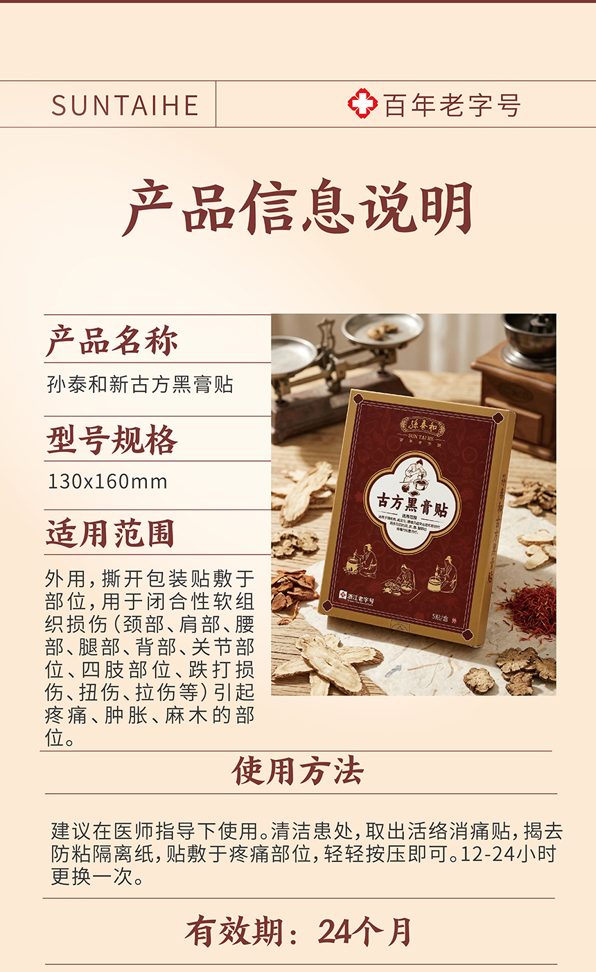 “源自光绪11年 140年中华老字号 官方认证非遗配方”孙泰和古方黑膏贴 加厚膏体量足持续时间长 5贴/盒