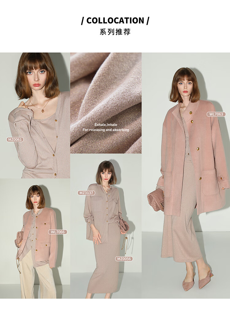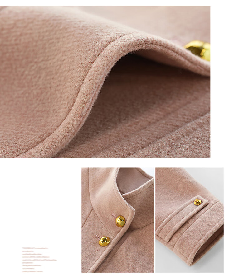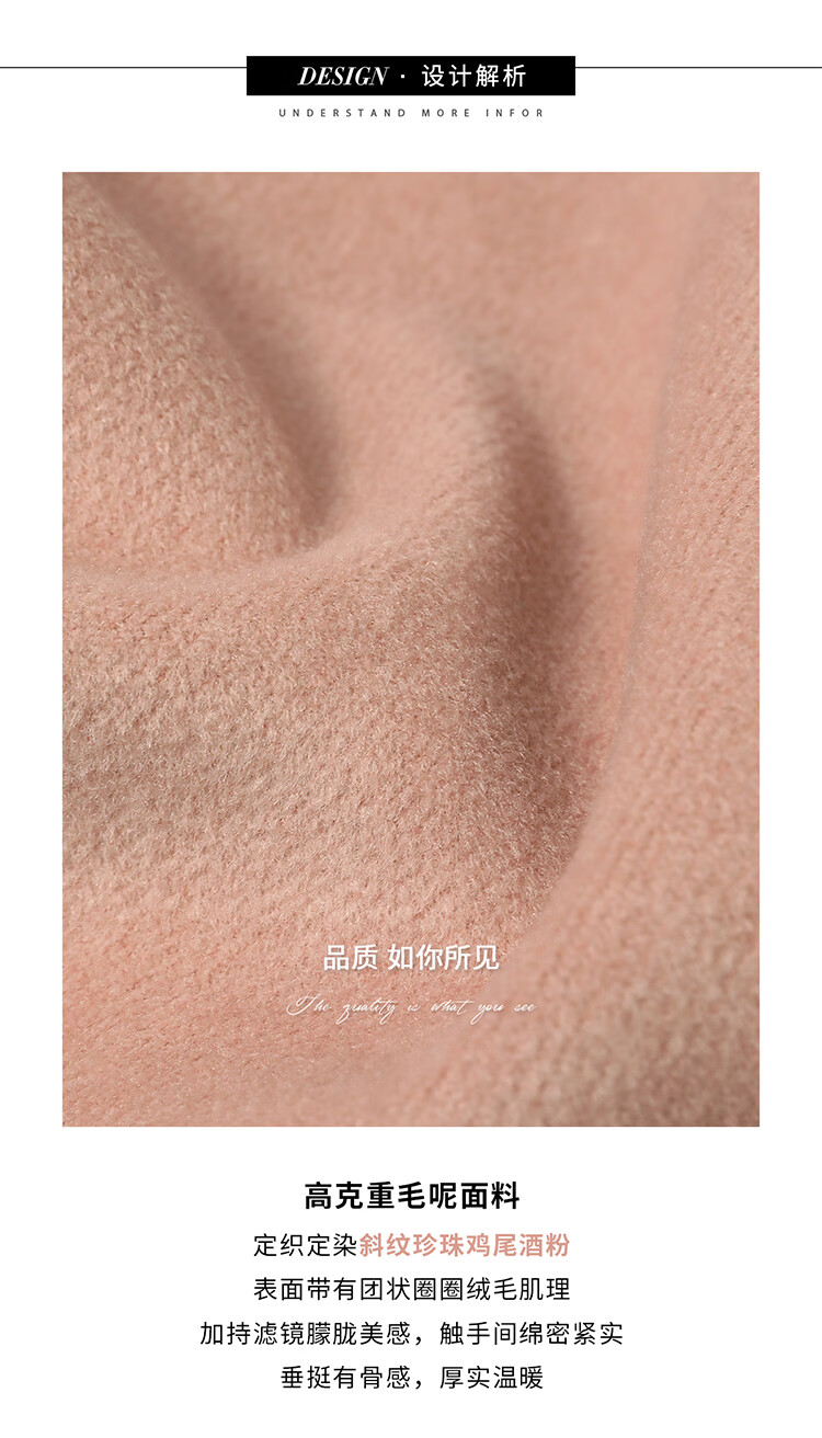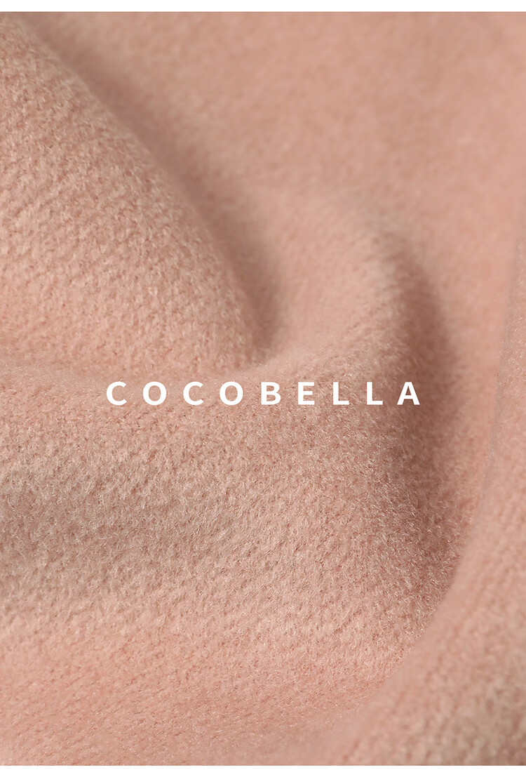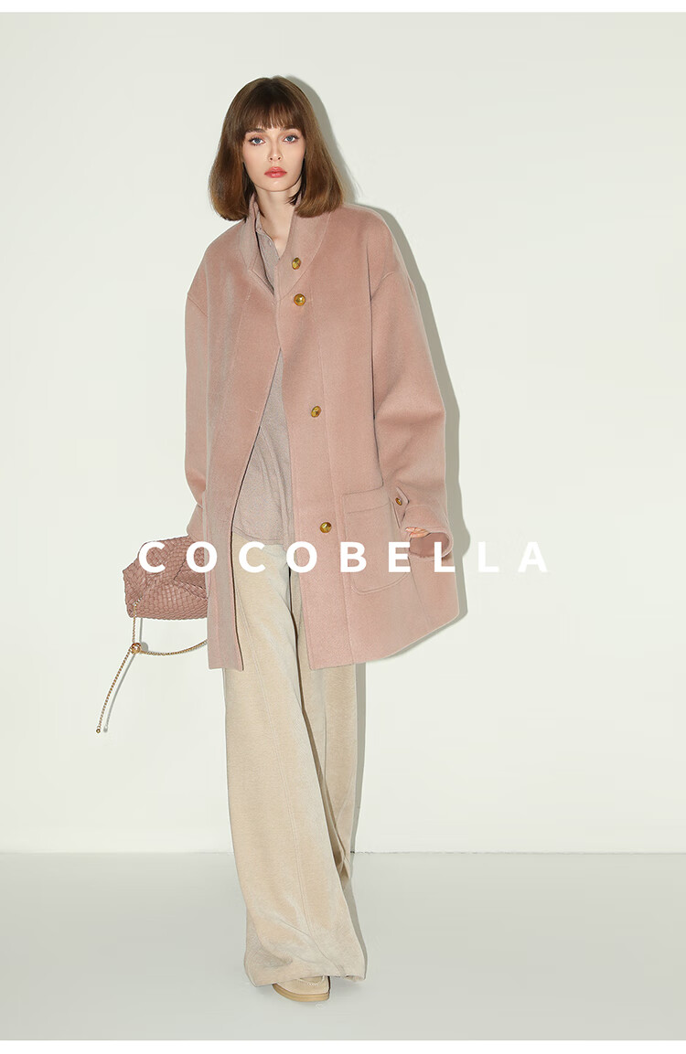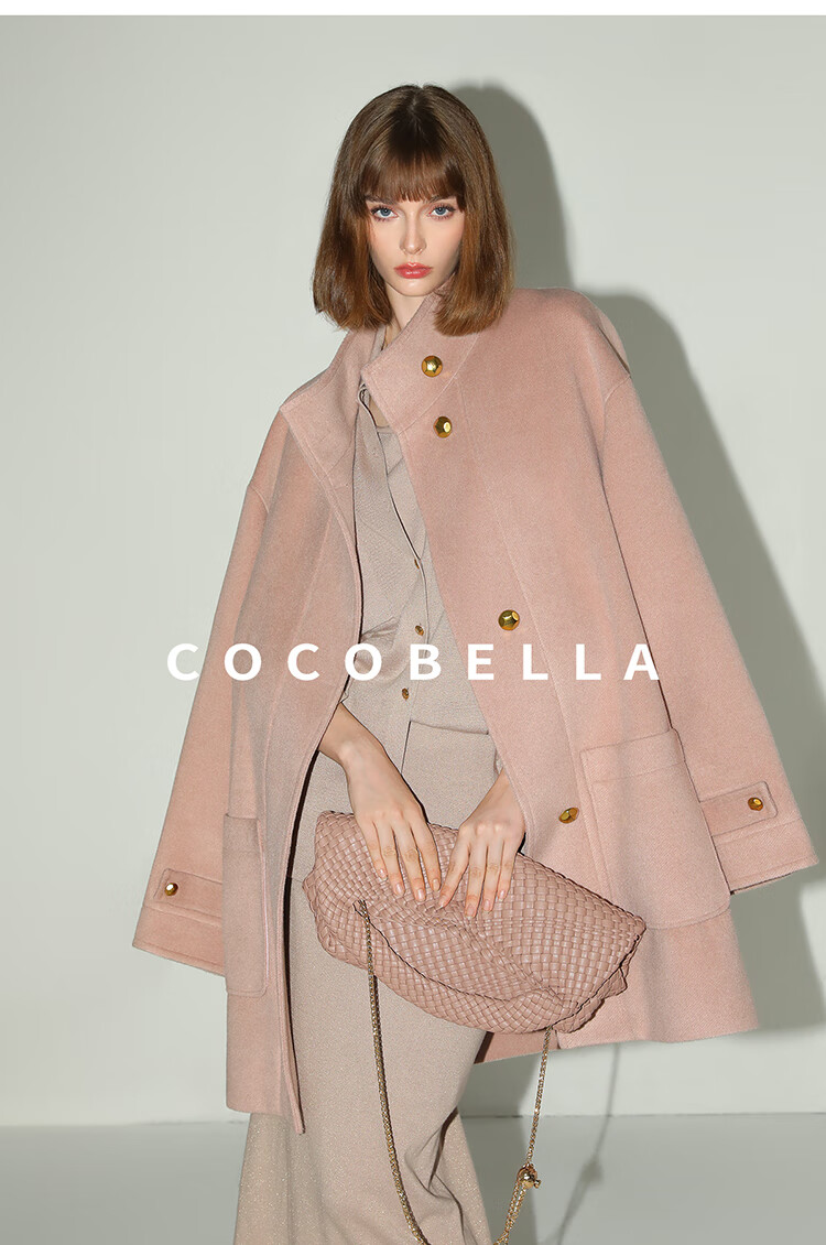 COCOBELLA气质粉温柔风毛呢外套质感金属扣中长款大衣WL7063