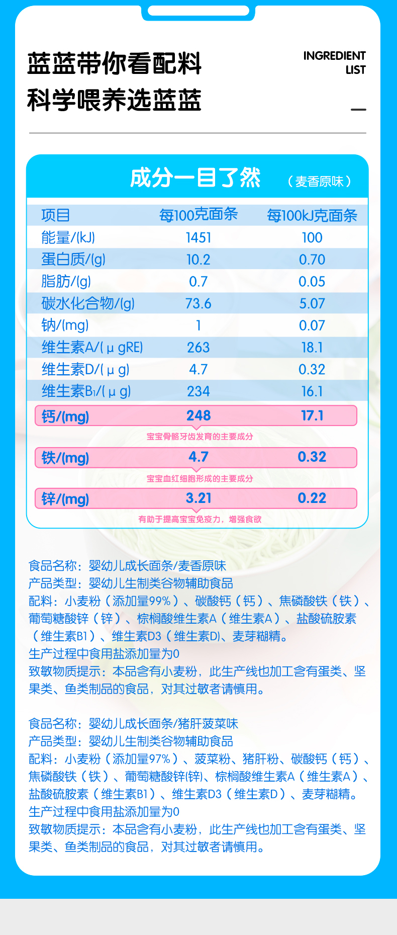 网店专用小鹿蓝蓝婴儿面条 宝宝儿童零食辅食无添加营养面婴儿6个月