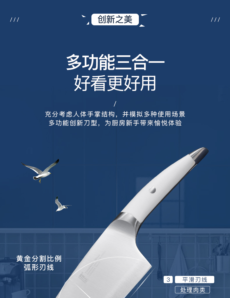 拓 海鸥菜刀家用厨师专用刀锋利切菜刀切片刀切肉刀套装厨房刀具