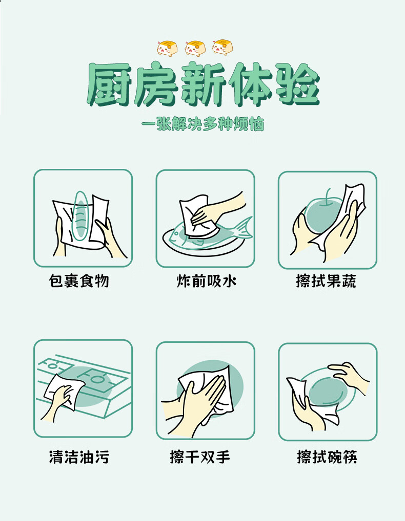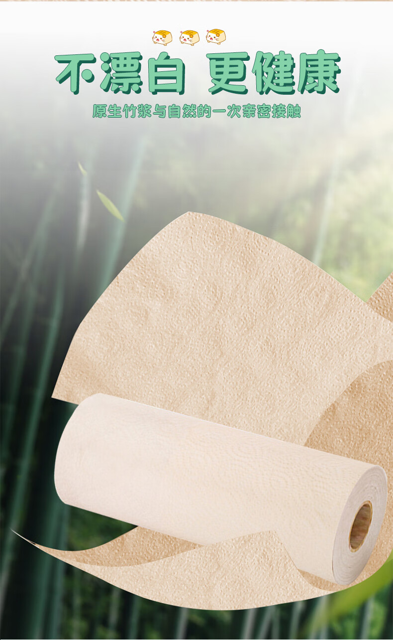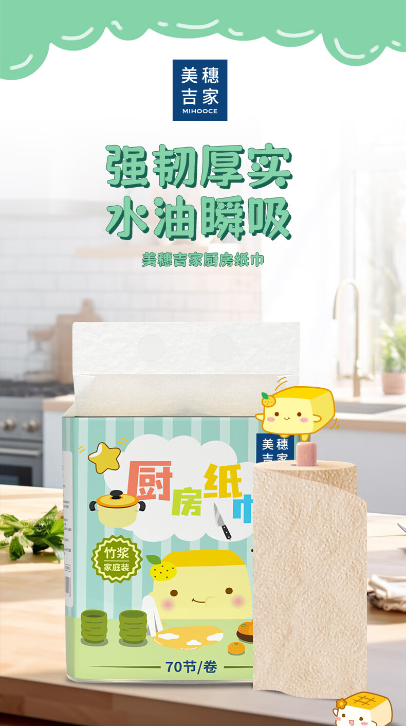 美穗吉家 厨房纸巾 原生竹浆70节/卷*2卷*1提