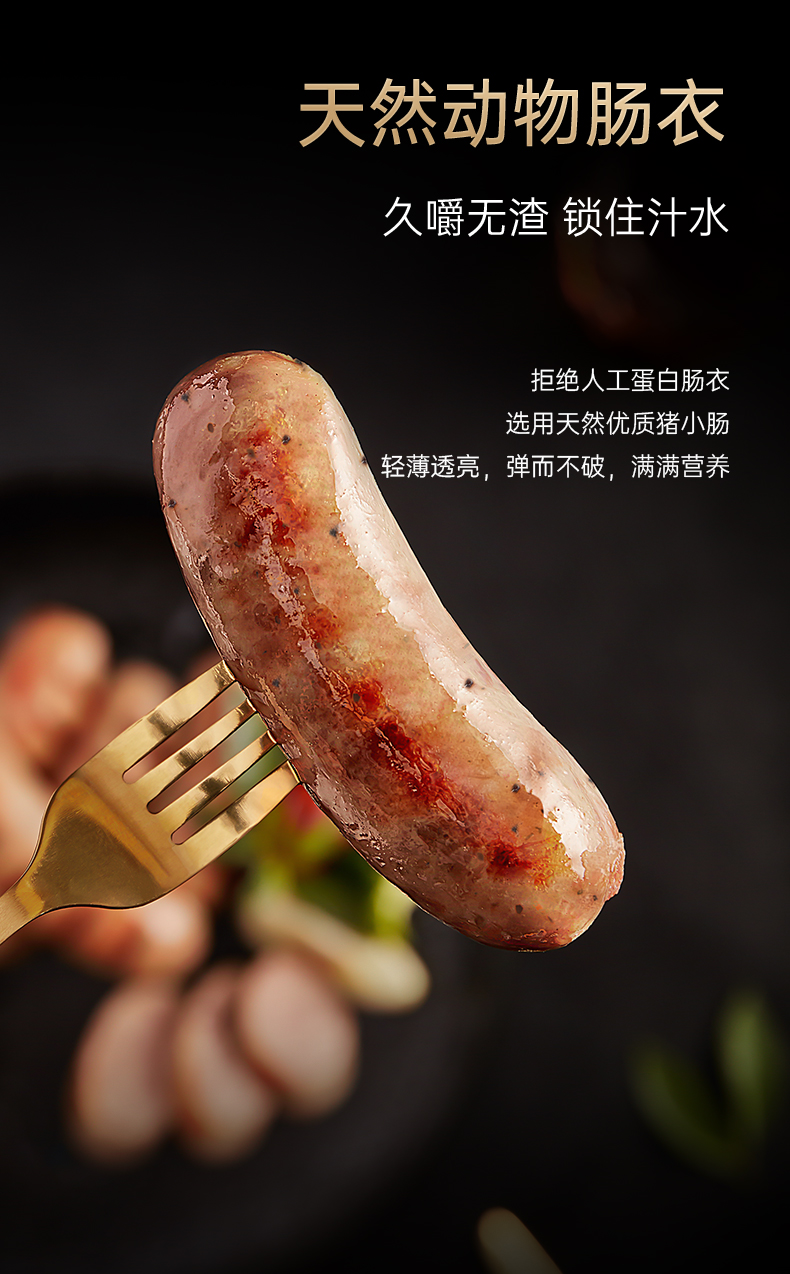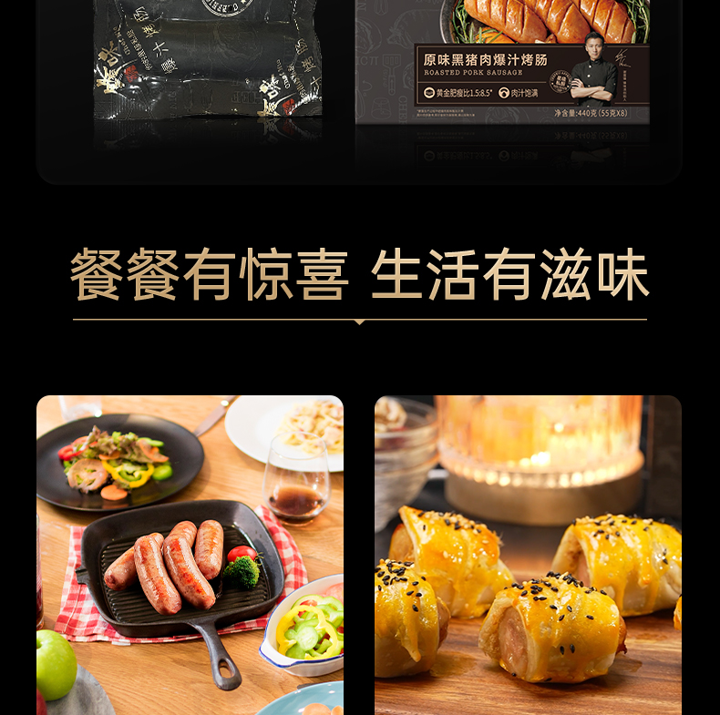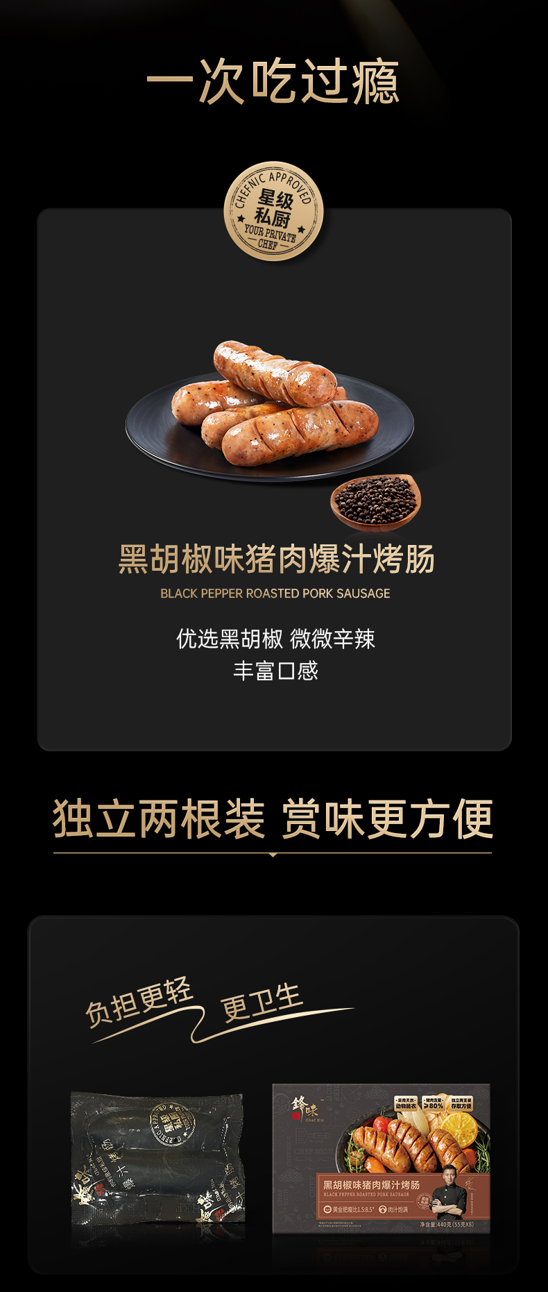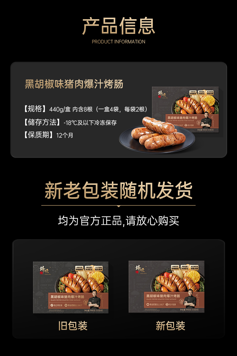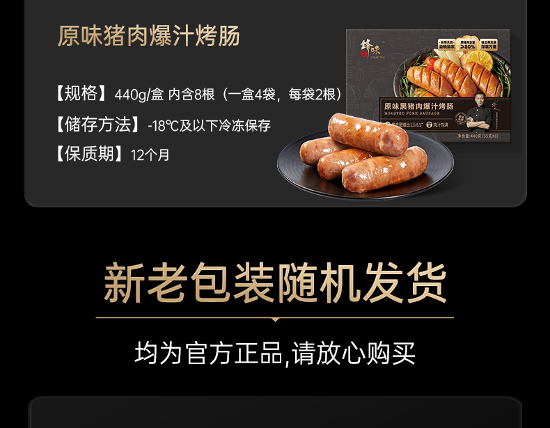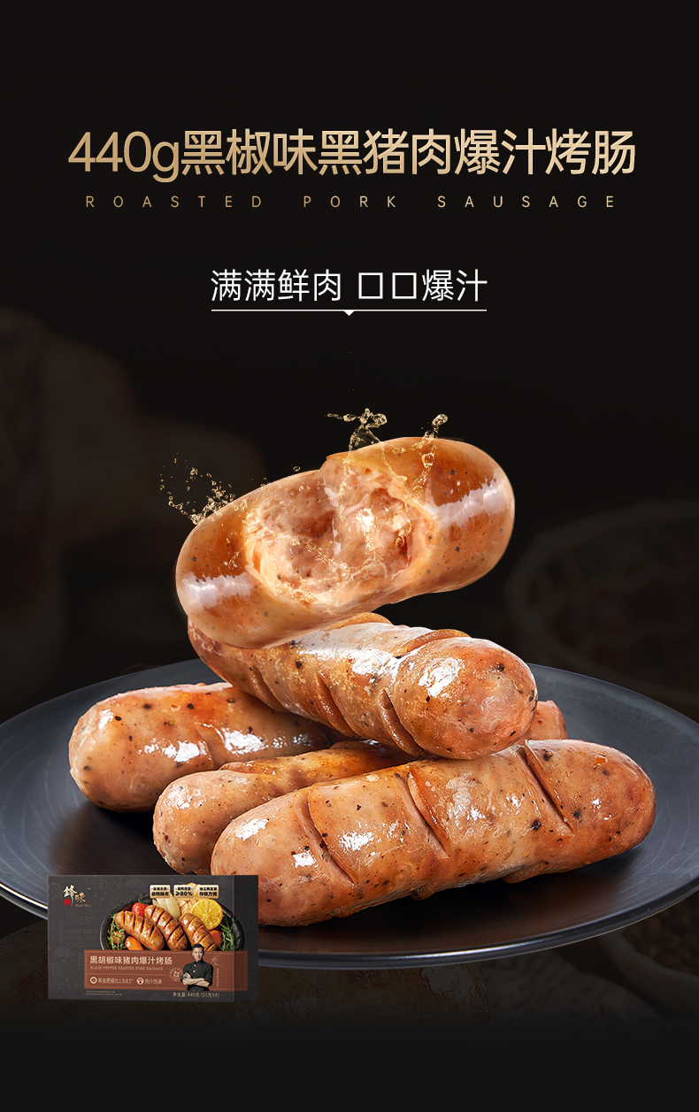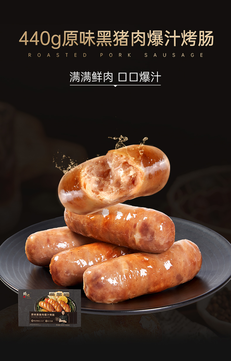 【自营】锋味派黑猪肉烤肠原味火山石香肠早餐火腿肉肠热狗空炸烧烤食材 440g/盒 黑胡椒猪肉烤肠