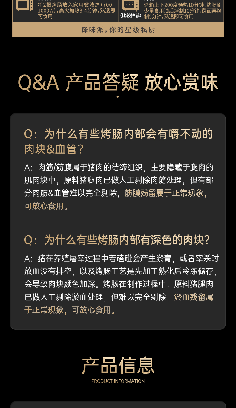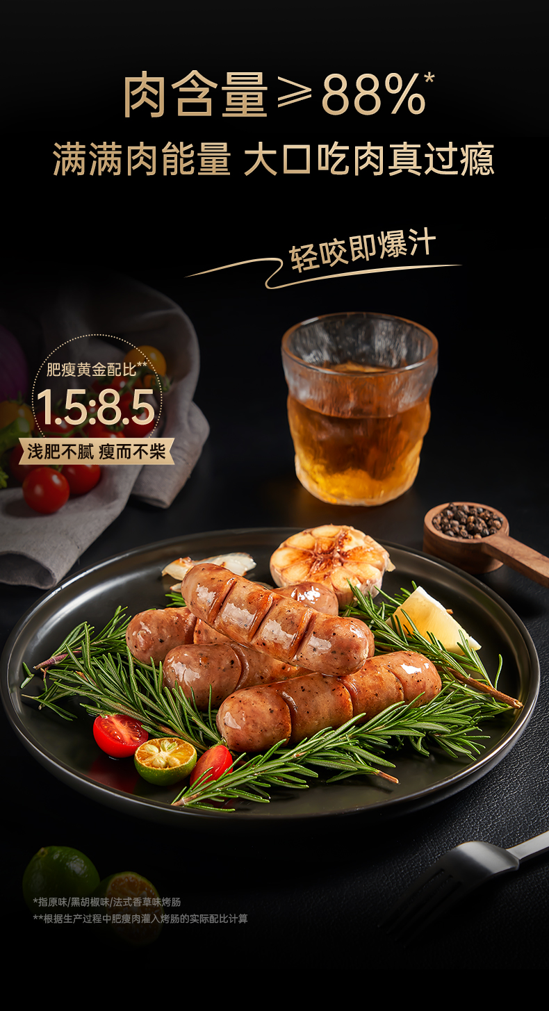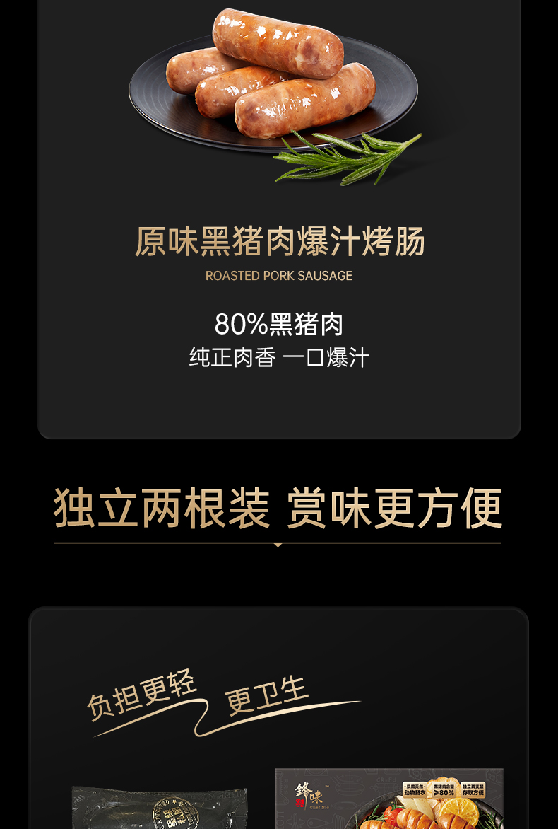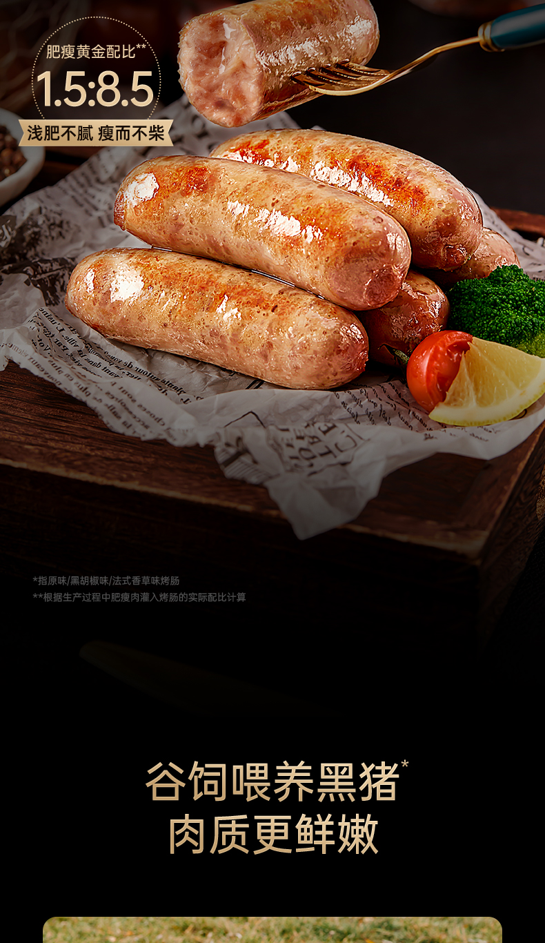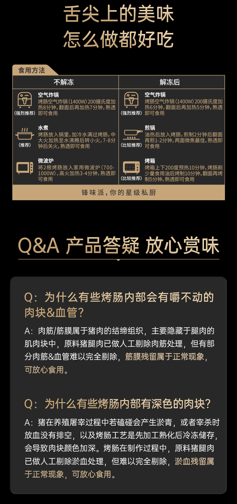 【自营】锋味派黑猪肉烤肠原味火山石香肠早餐火腿肉肠热狗空炸烧烤食材 440g/盒 黑胡椒猪肉烤肠