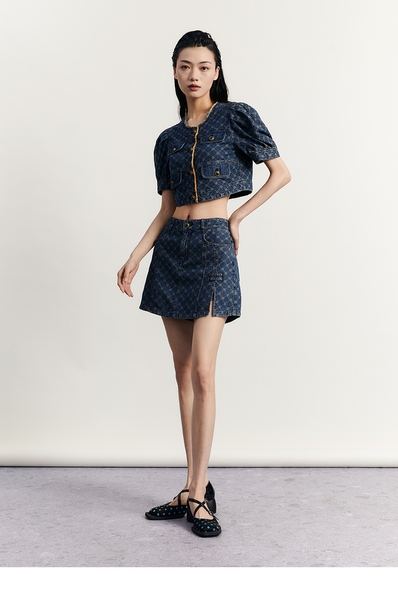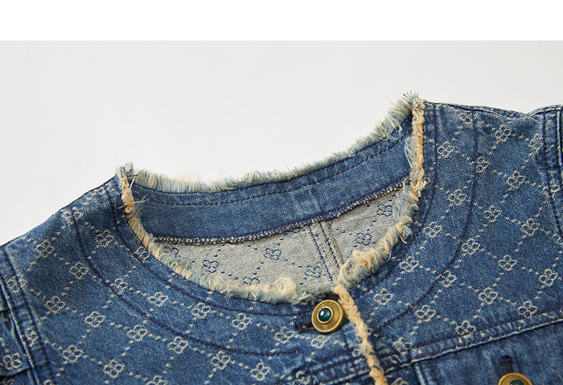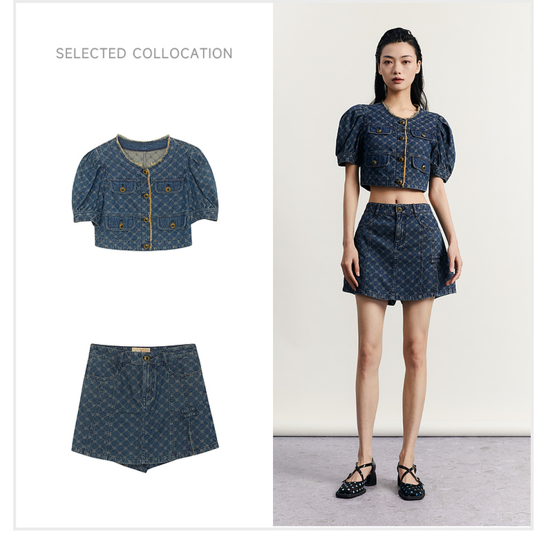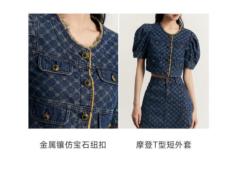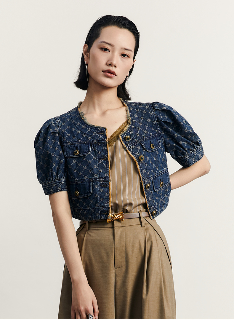 谜底复古牛仔提花外套短袖女2023秋季新款小香风短款233MW0963