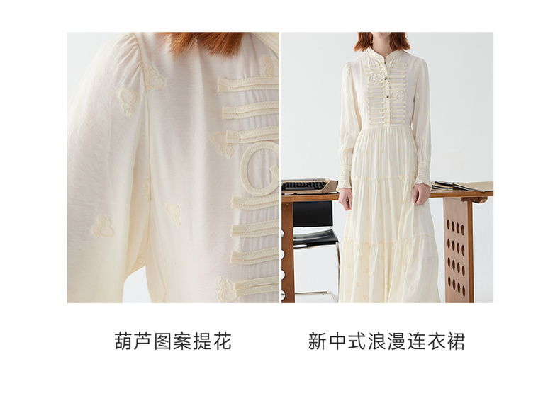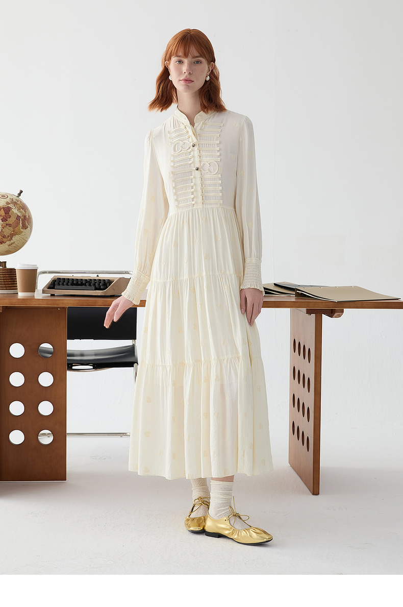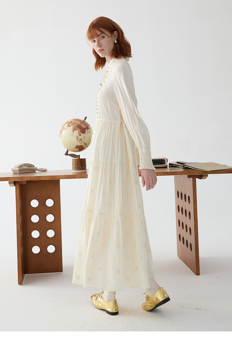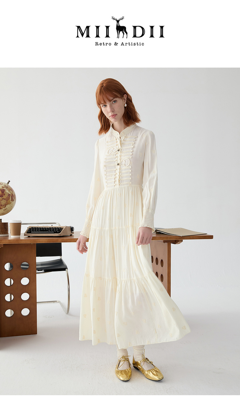 谜底提花连衣裙长袖2025春季新品复古风浪漫盘扣X型长裙251ML0099