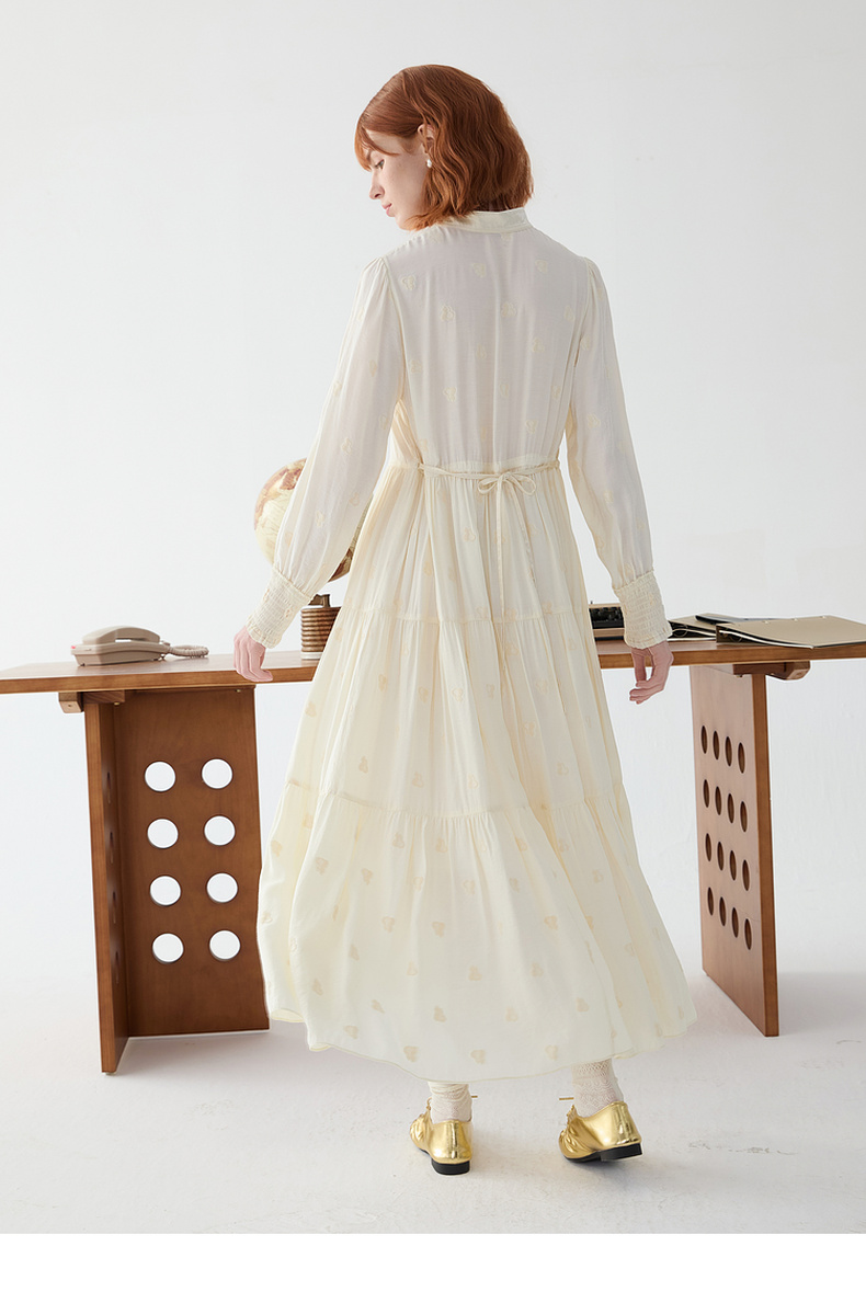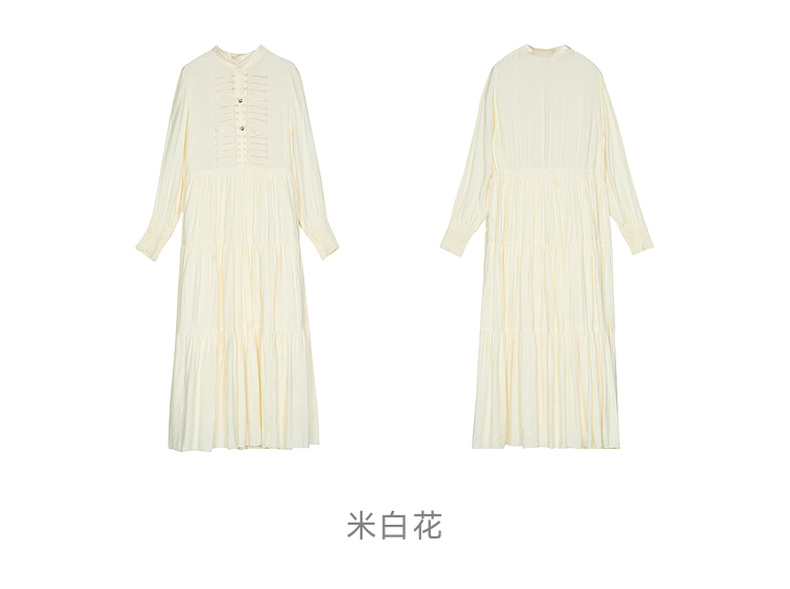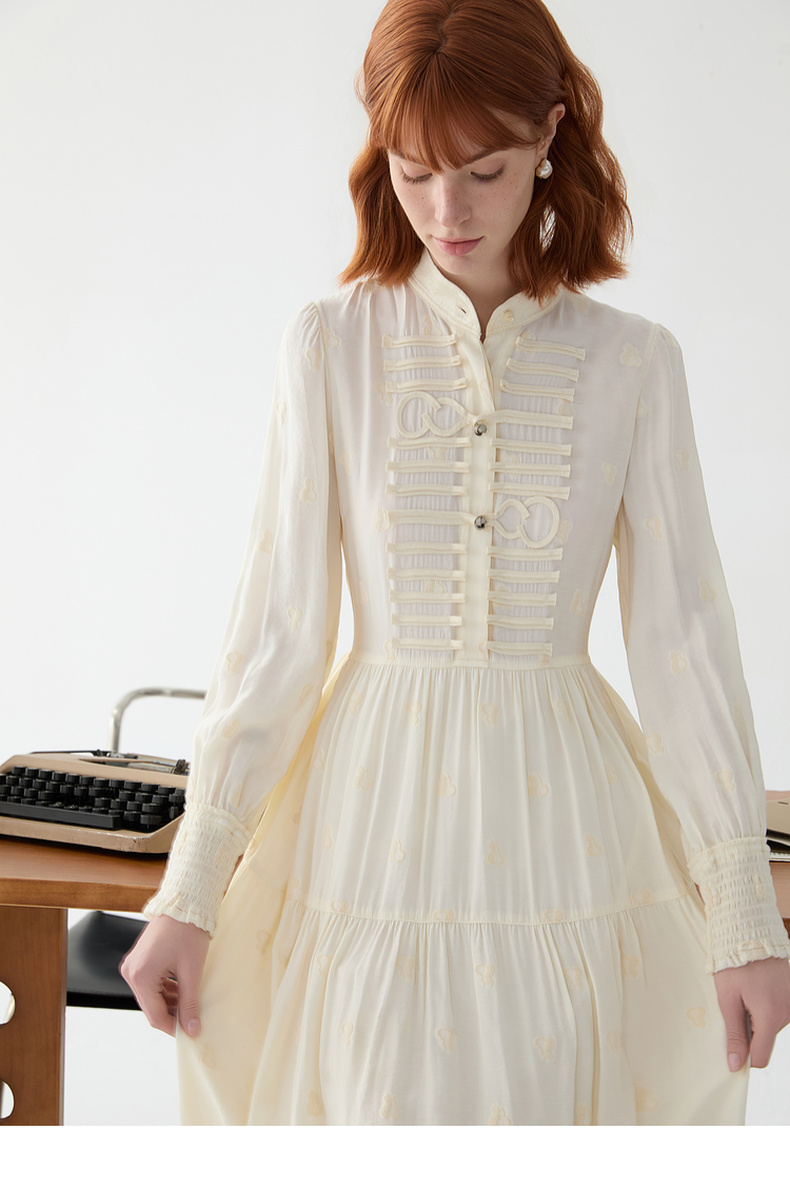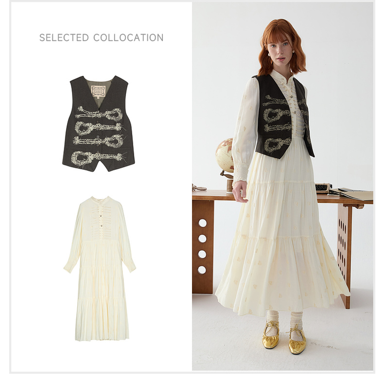谜底提花连衣裙长袖2025春季新品复古风浪漫盘扣X型长裙251ML0099