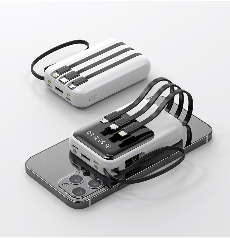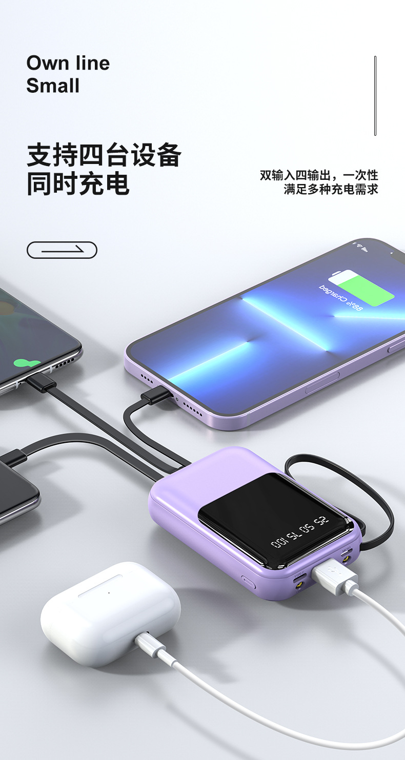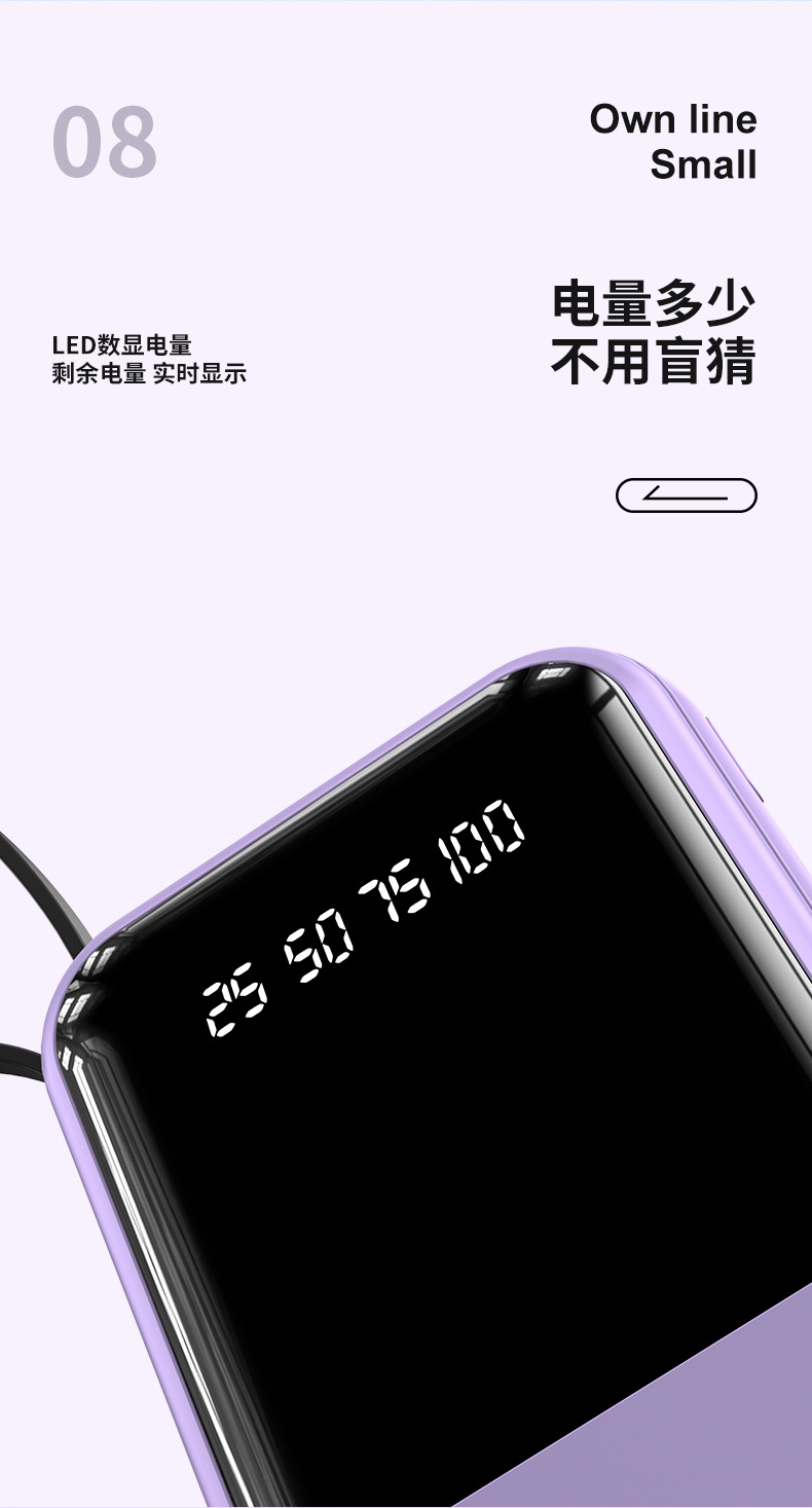 3C认证!可上飞机!【带线数显移动电源,口袋里的供电站!】20w超级快充 迷你20000毫安带线 充电宝可爱大容量 移动电源礼品定制logo 员工礼物-QB