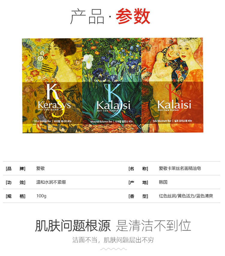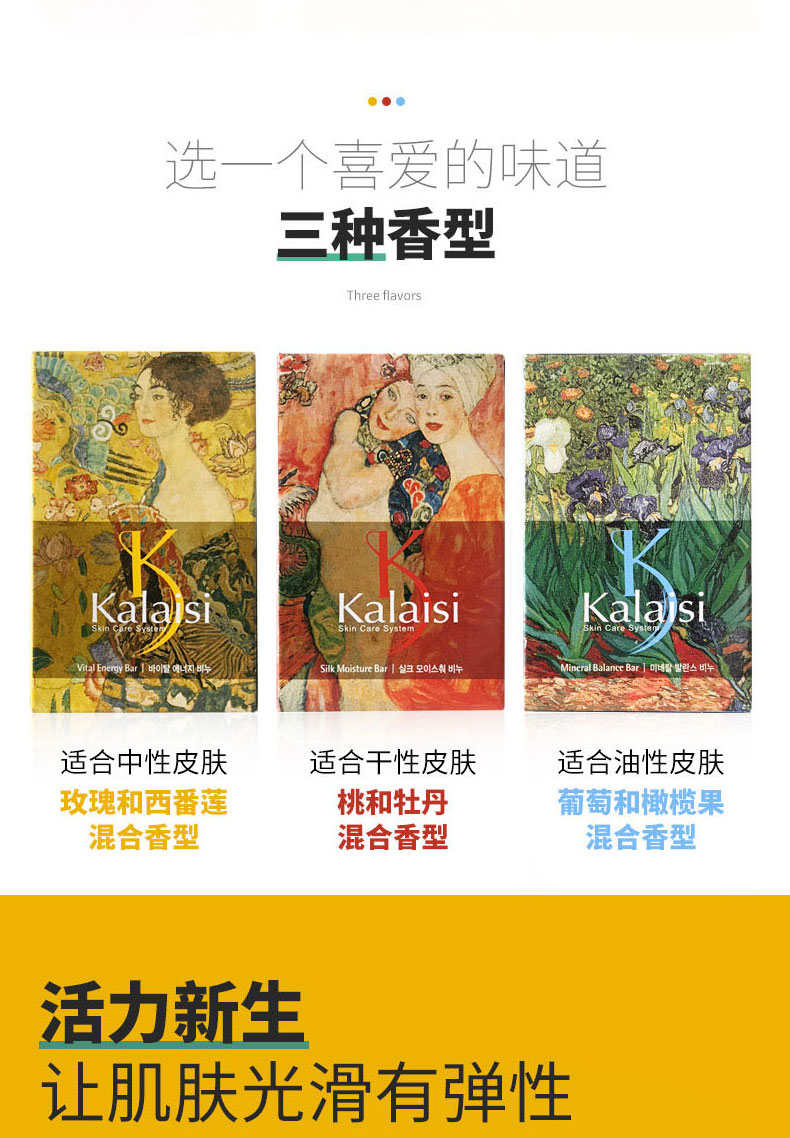 【中欧班列5块】韩国爱敬卡莱丝名画香皂 原装进口香味持久香型精油洗澡沐浴全身男女洗脸洁面皂 100g/块WHBX