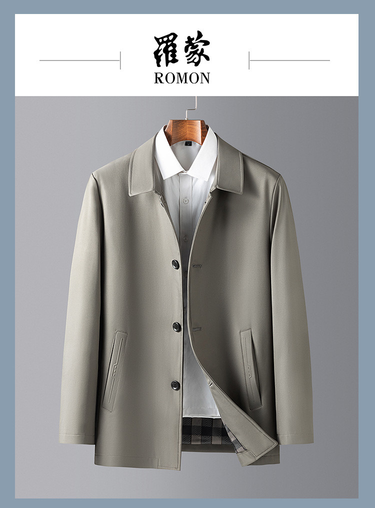 【经典中长款】罗蒙春秋装翻领老干部夹克外套男风衣男士外套夹克男