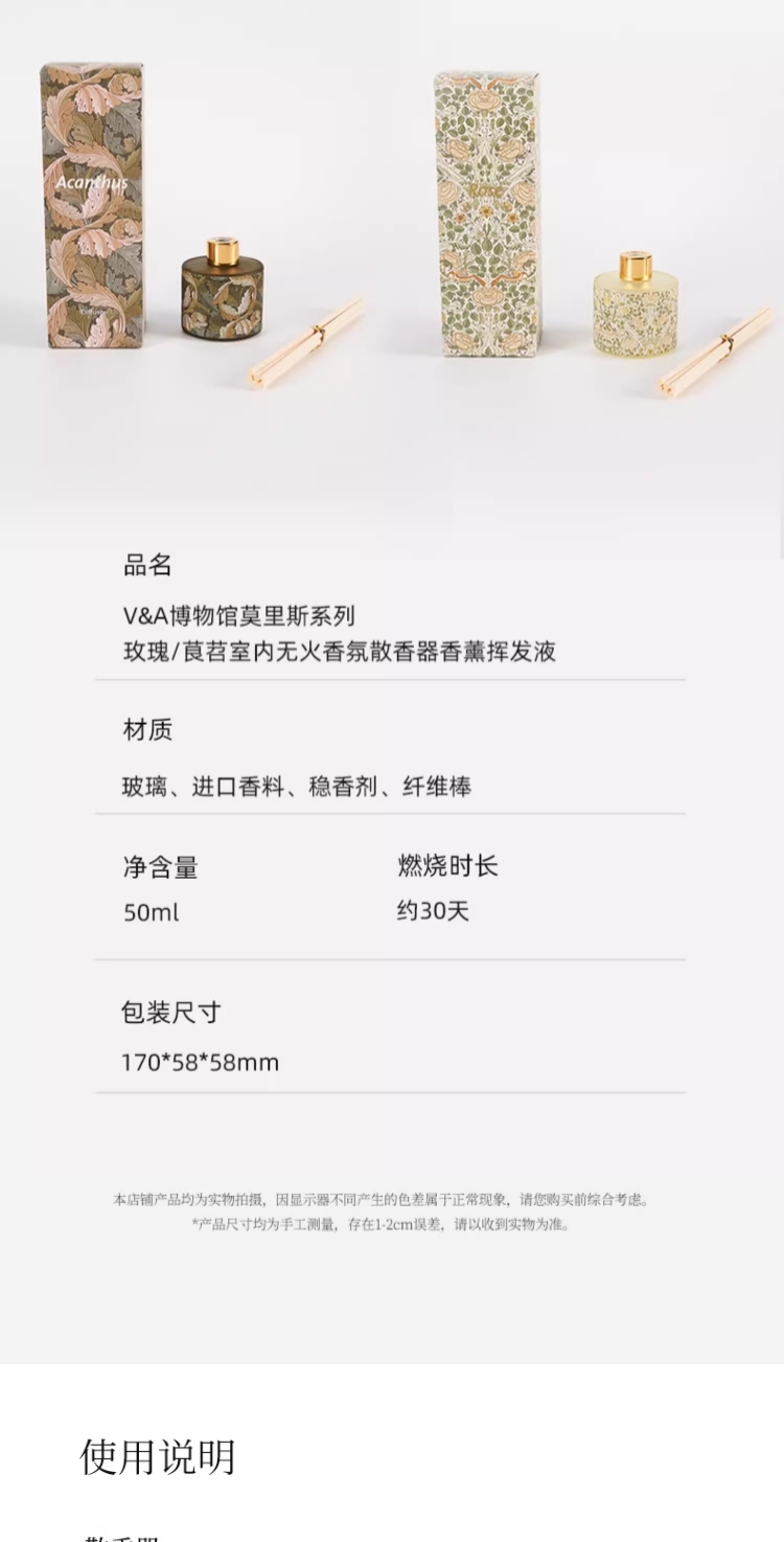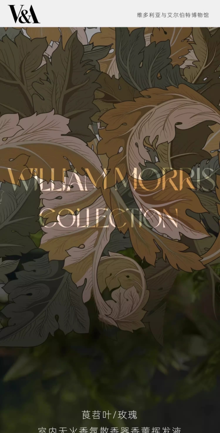 V&A博物馆威廉莫里斯系列 茛苕叶玫瑰室内无火香薰 香氛散香器50ml