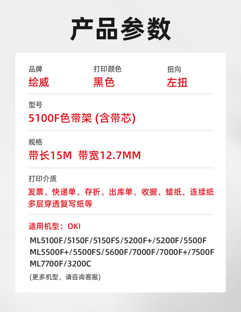 绘威OKI 5100F色带 适用OKI5200F 7000F 7700F 5150F 5500F 5800F 7500F 5200F OKI针打色带