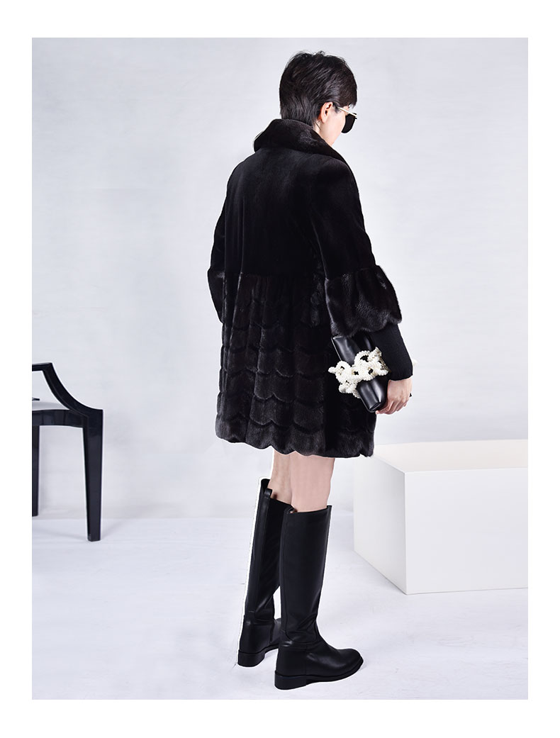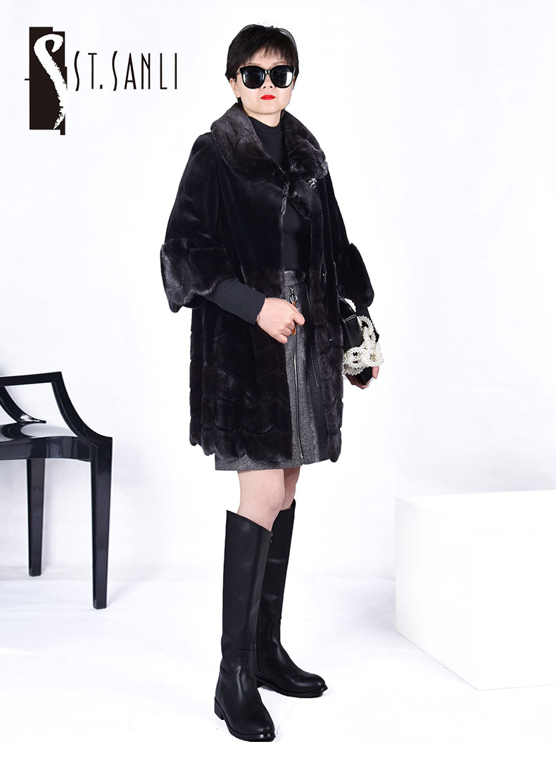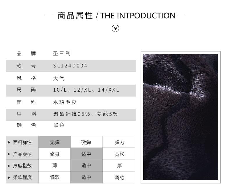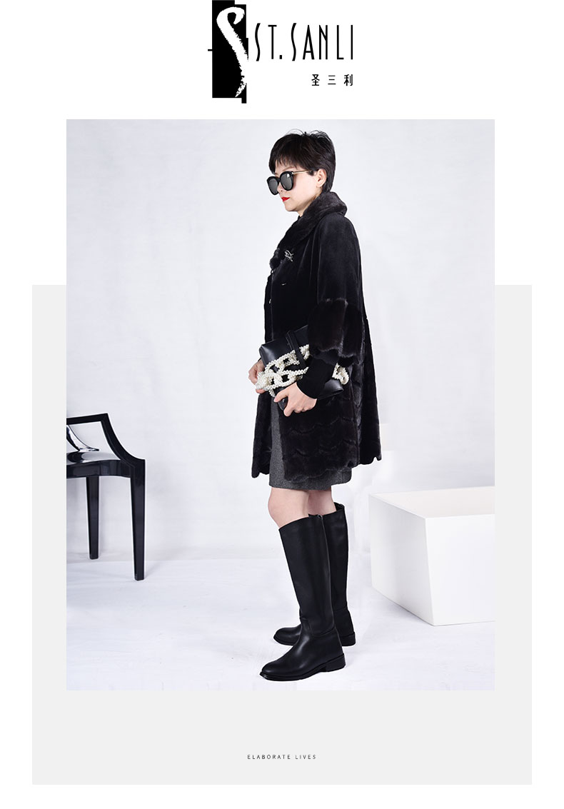 圣三利女装时尚黑色水貂毛皮草SL124D004
