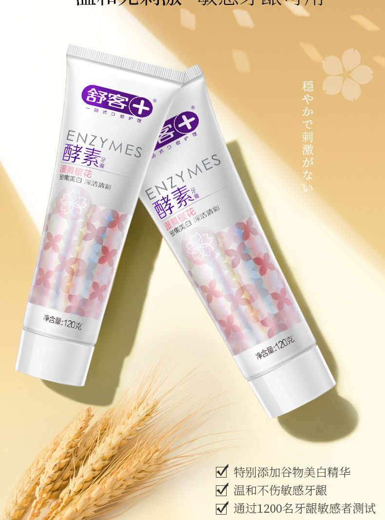 【自营】 舒客 酵素牙膏 谷物美白精华 温和不伤牙龈 樱花香型/青柠香型 120g*3