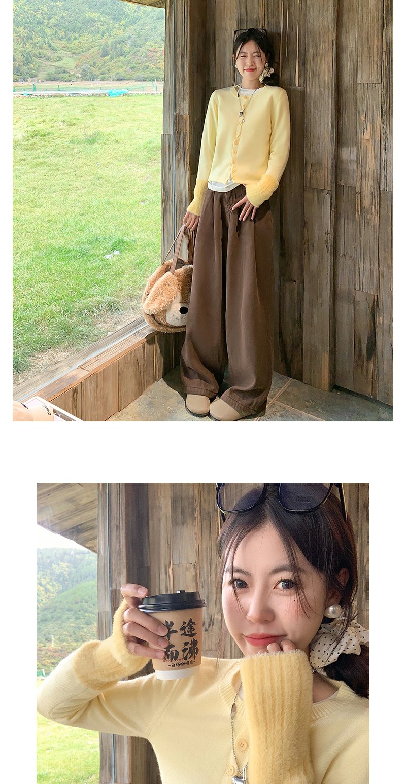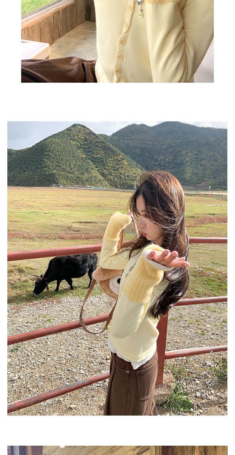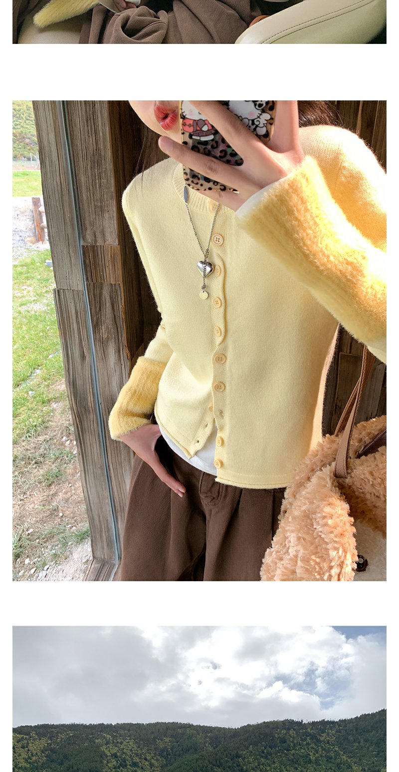 <曾小咸推荐>韩系小清新黄色袖口拼接系扣毛衣