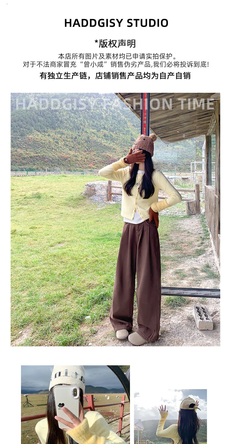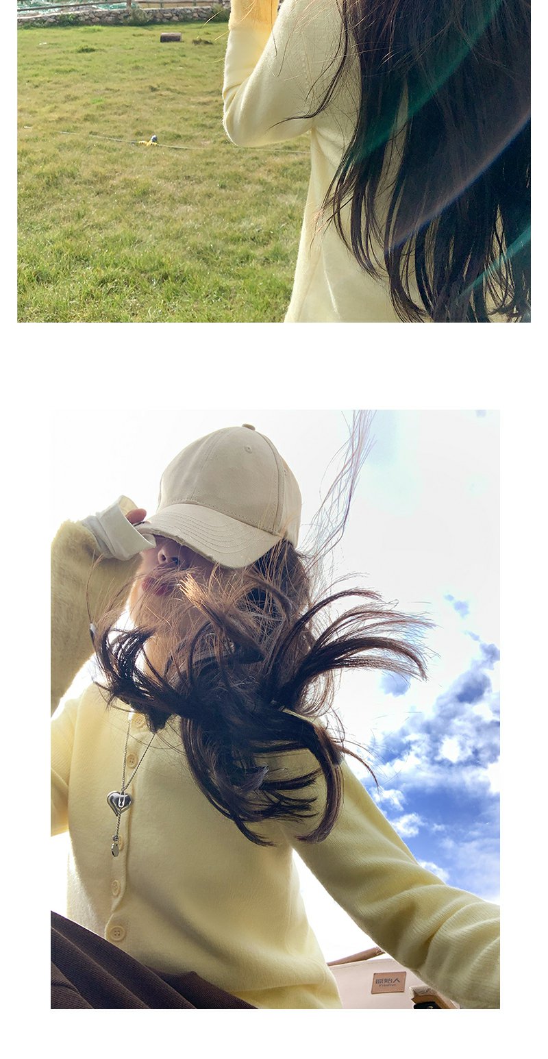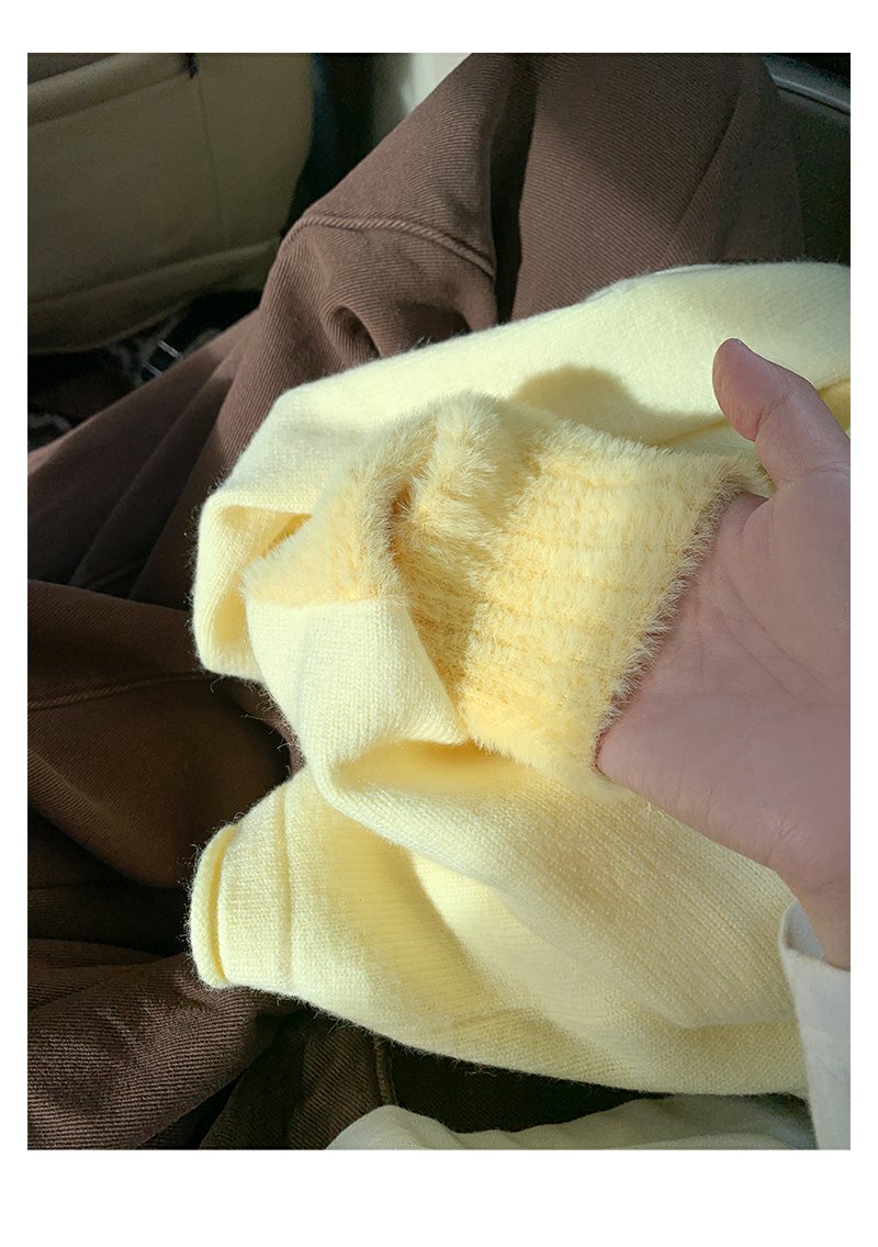 <曾小咸推荐>韩系小清新黄色袖口拼接系扣毛衣