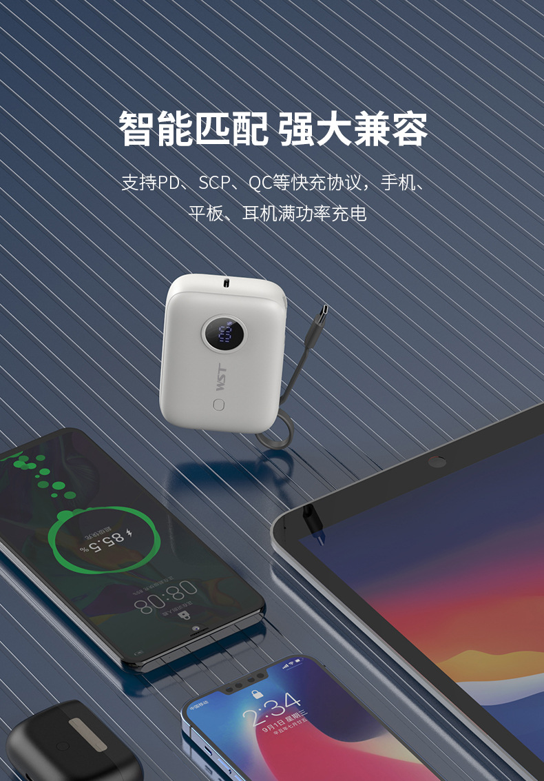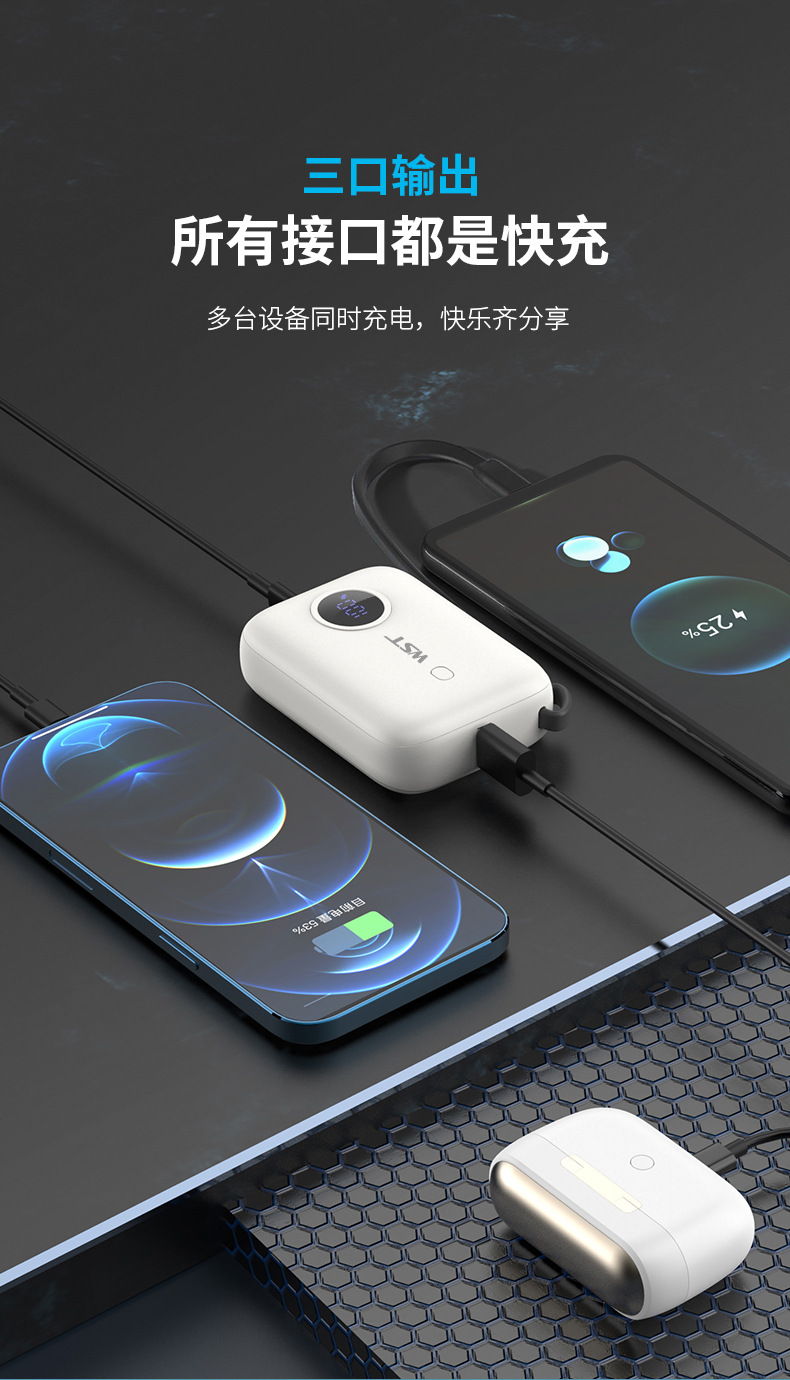 最方便的是自带线!安卓线都藏在里面,一拉就出来,再也不用翻包找线,还能同时充仨设备,跟朋友出门谁没电都能救个急。