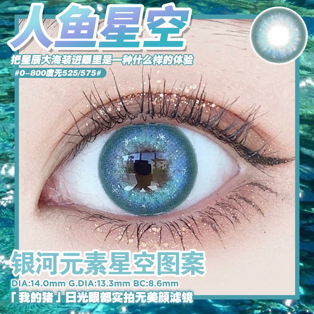 【年抛】人鱼星空 | 官方数据 小直径14.0 着色13.4 | 蓝色混血美瞳 | 实际佩戴效果有14.2mm