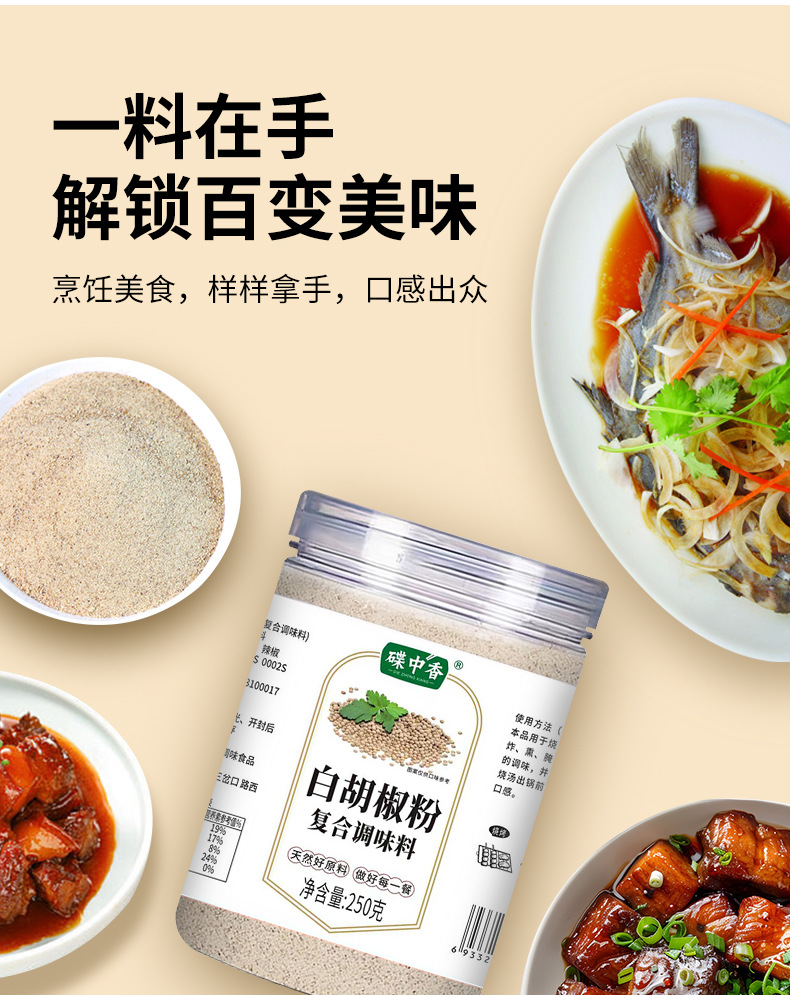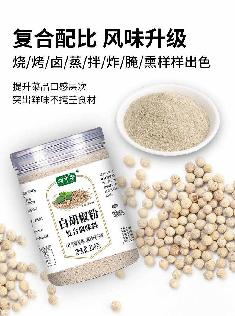 买一送一 白胡椒粉250g家庭炒菜煲汤提味去腥调料商用烹饪瓶装白胡椒粉现磨火锅蘸酱烤肉蘸酱故乡风味蘸酱料