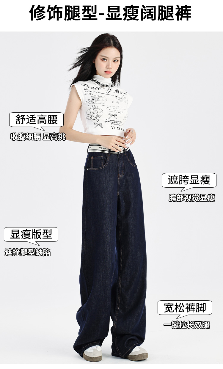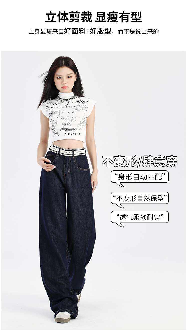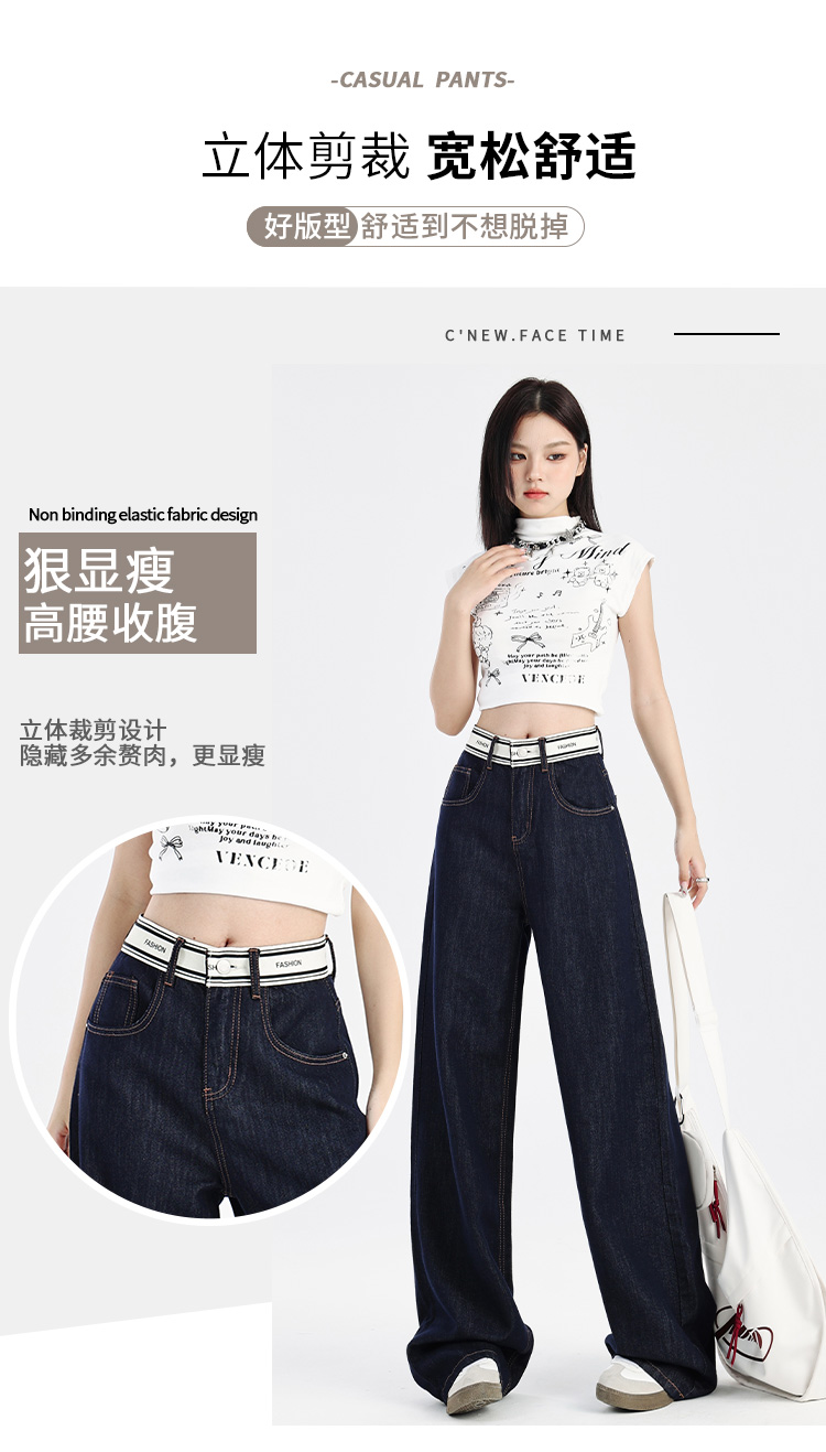 【莱赛尔棉】罗蒙春夏牛仔裤女士宽松休闲百搭直筒显瘦阔腿裤女长裤子