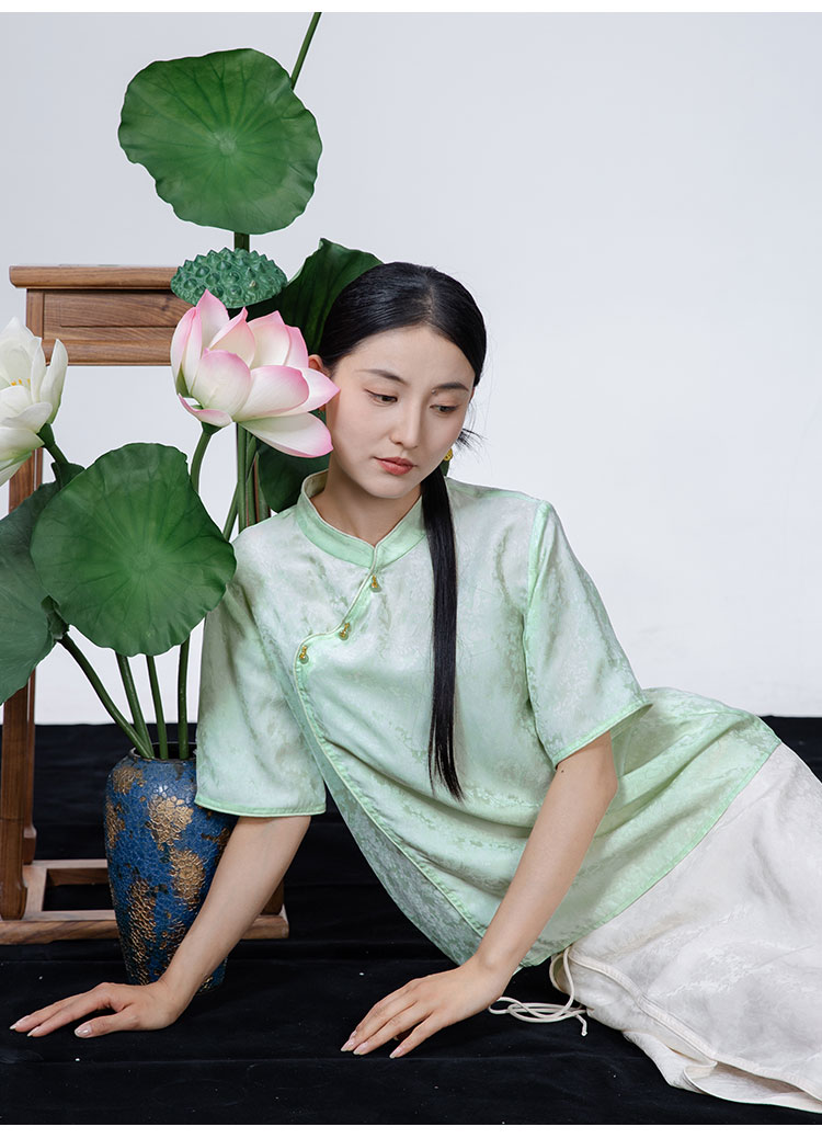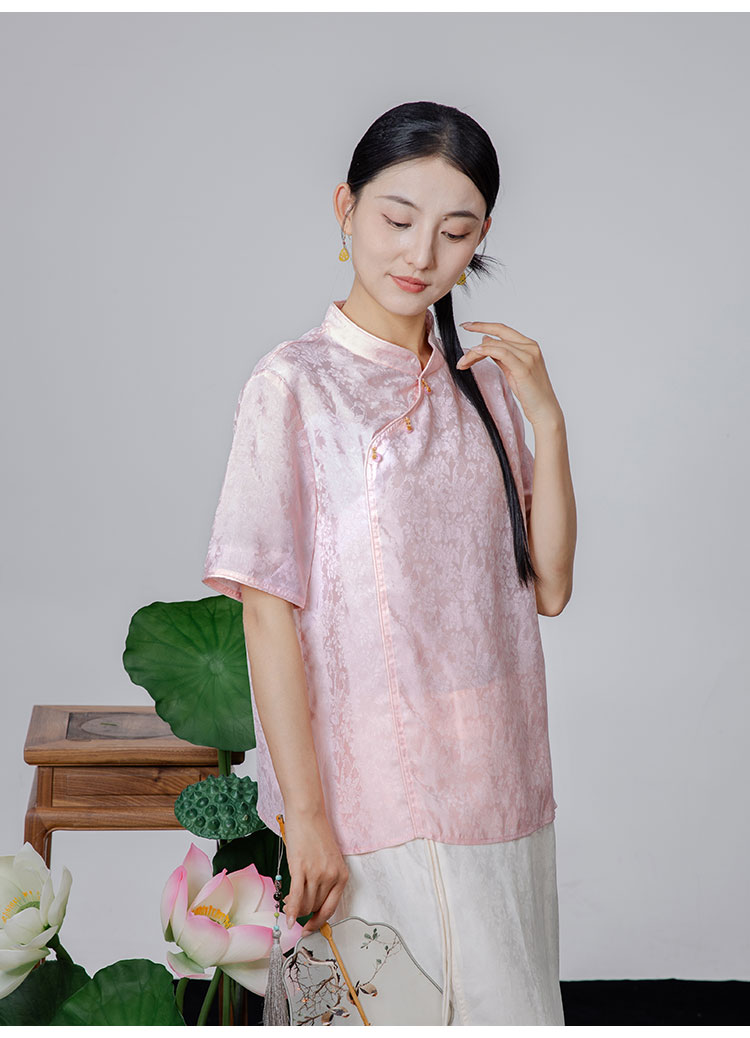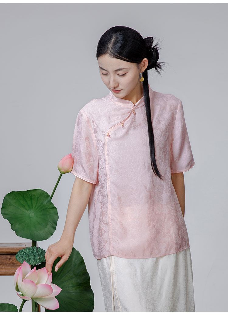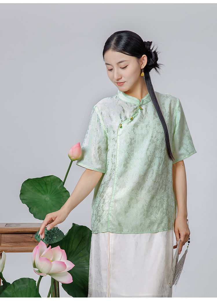 2024夏季新款新中式国风斜襟立领短袖小衫WX24-20301