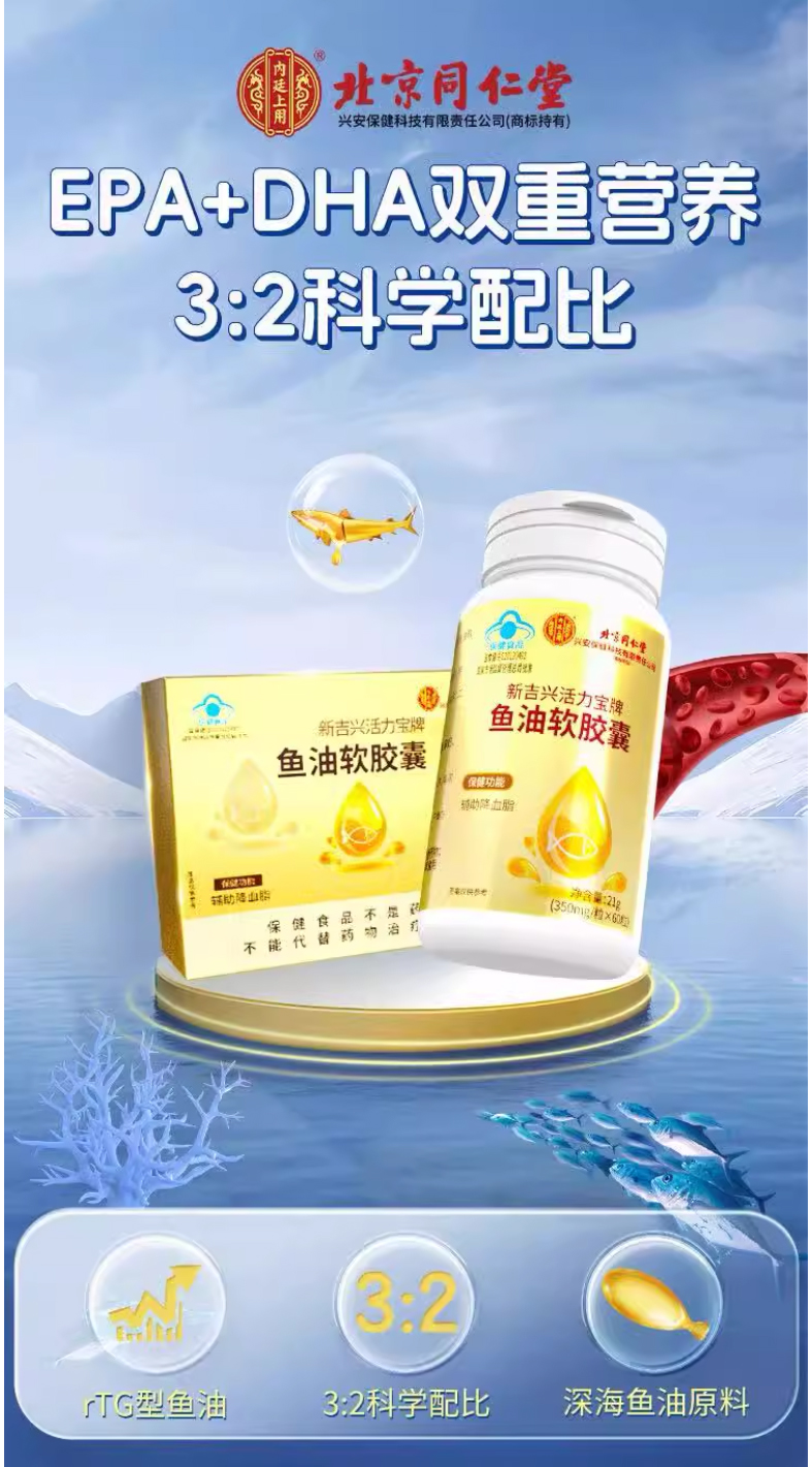 【品名】北京同仁堂鱼油软胶囊60粒+大豆磷脂胶囊60粒/盒
