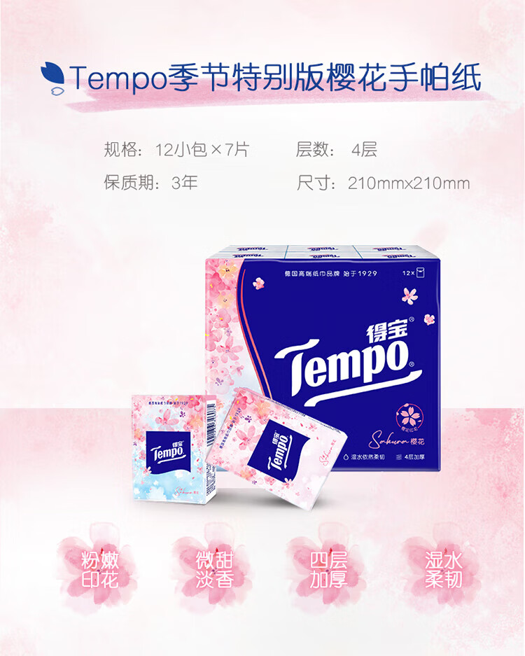 得宝樱花手帕纸12包