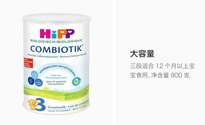 HiPP喜宝荷兰版有机益生菌奶粉3段800克/罐12个月以上(新旧随机发货)